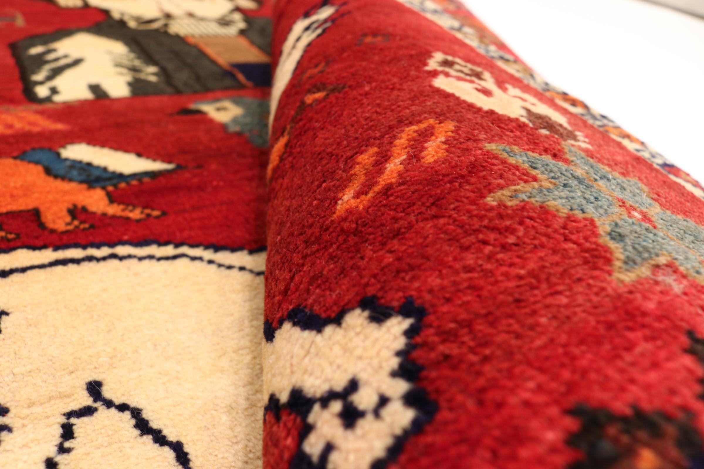 Nº do Tapete: 55222006106208 Tamanho: 200x105 cm Espessura: aproximadamente 12 mm Nós: 160 000 - 200 000 / m² Processamento: Atado à mão Veludo: Lã tecida à mão Urdidura: Algodão Origem: Pérsia / Iran Idade: Novo Peso: aproximadamente 7 kg Também conhecido como Qashqai, Gaschgai, Gashghai, Kashgai Em armazém: Único - Apenas 1 em stock