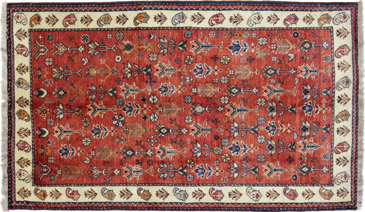 Este tapete pertence a tapetes de aldeia e nómadas do Irão, antiga Pérsia. Este tipo de tapete é atado à mão em cidades mais pequenas e aldeias da velha tradição. Mesmo os nómadas ainda atam tapetes persas ao ar livre. Os tapetes são atados sem padrão e completamente a partir da cabeça. Caracterizam-se por ornamentos clássicos, dispostos em padrões rectos e geométricos. Graças à sua origem cultural-tradicional, estes tapetes têm um carácter único que encarna a antiga Pérsia.