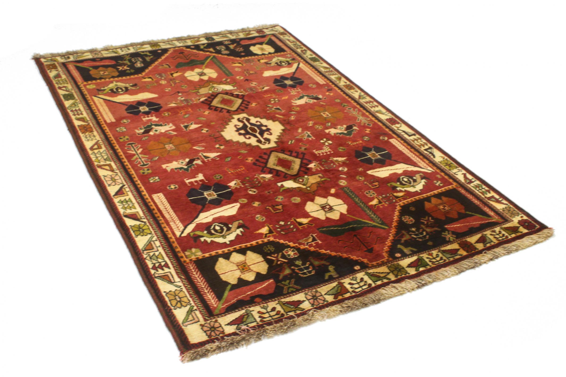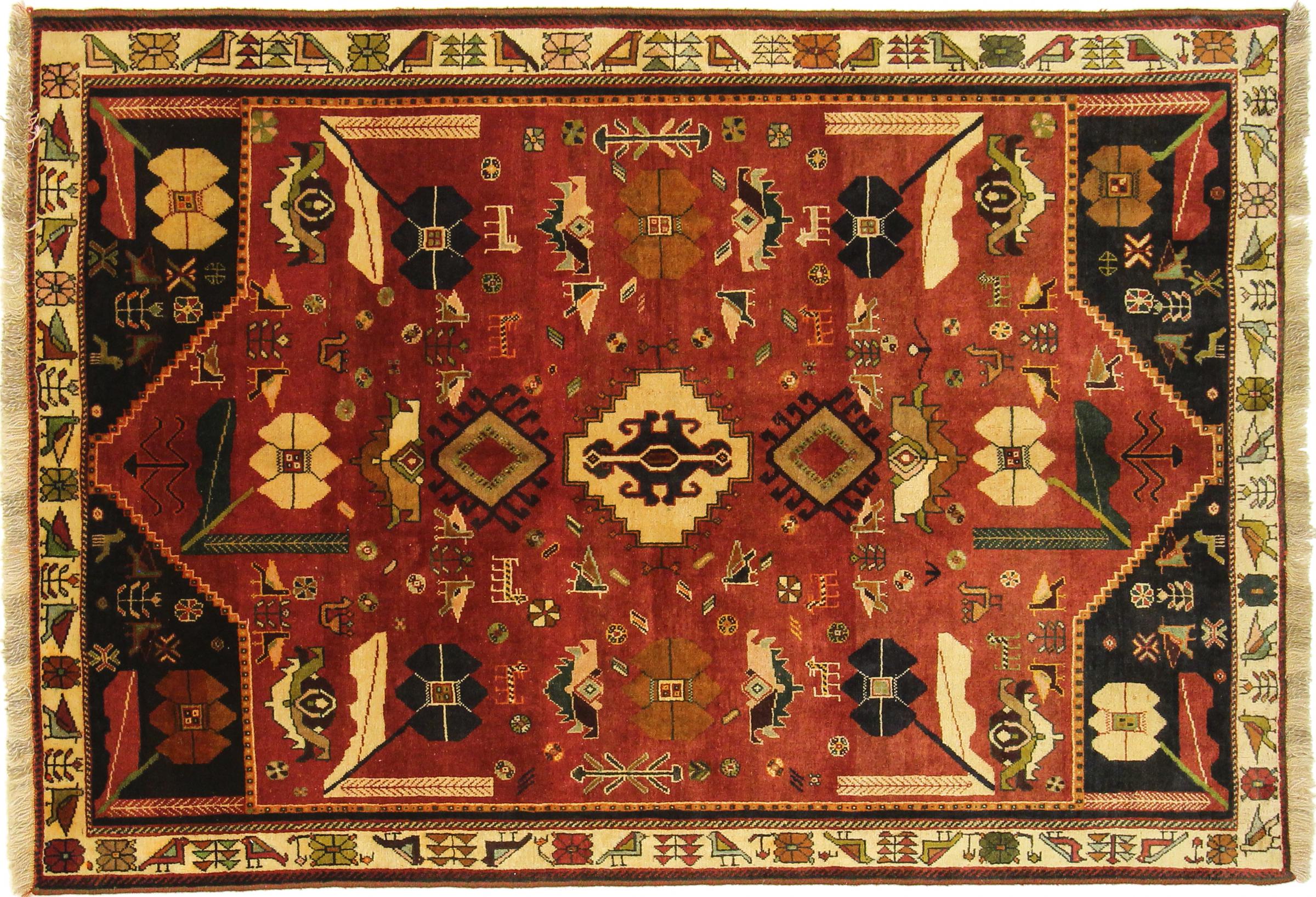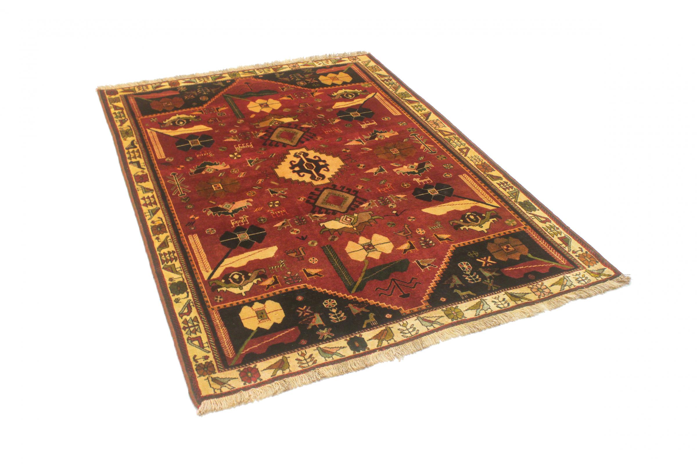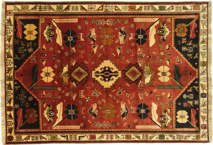Este tapete pertence a tapetes de aldeia e nómadas do Irão, antiga Pérsia. Este tipo de tapete é atado à mão em cidades mais pequenas e aldeias da velha tradição. Mesmo os nómadas ainda atam tapetes persas ao ar livre. Os tapetes são atados sem padrão e completamente a partir da cabeça. Caracterizam-se por ornamentos clássicos, dispostos em padrões rectos e geométricos. Graças à sua origem cultural-tradicional, estes tapetes têm um carácter único que encarna a antiga Pérsia.