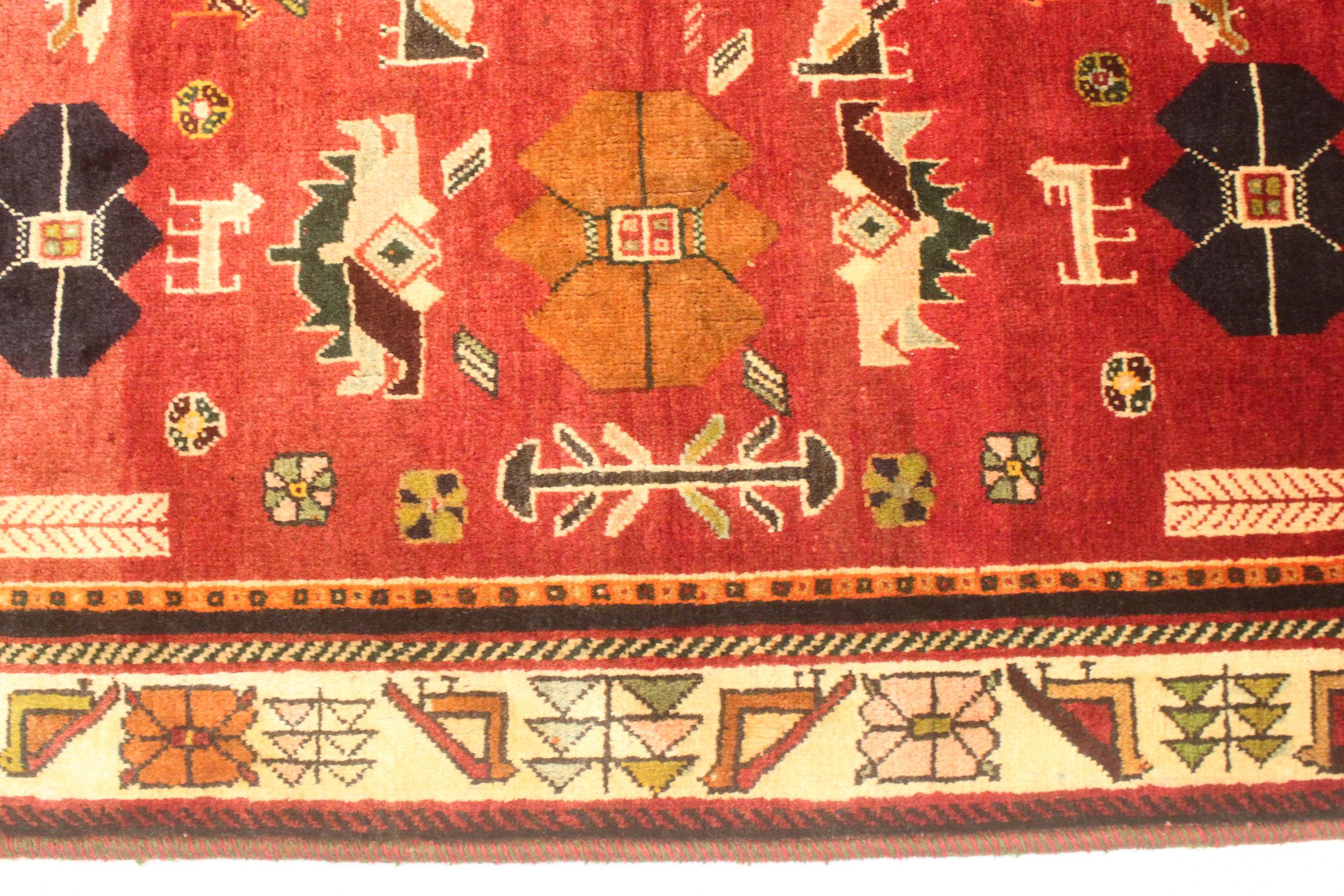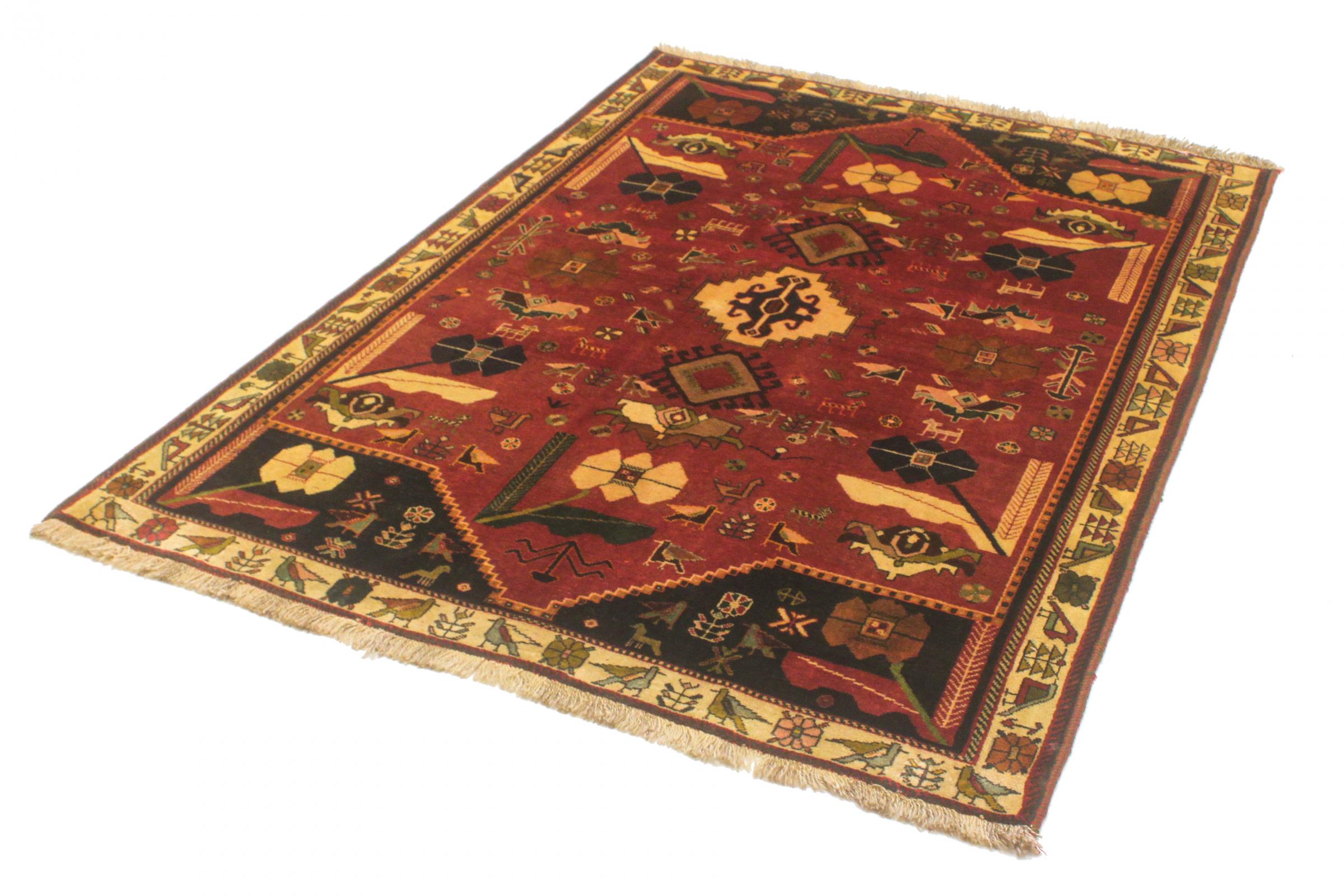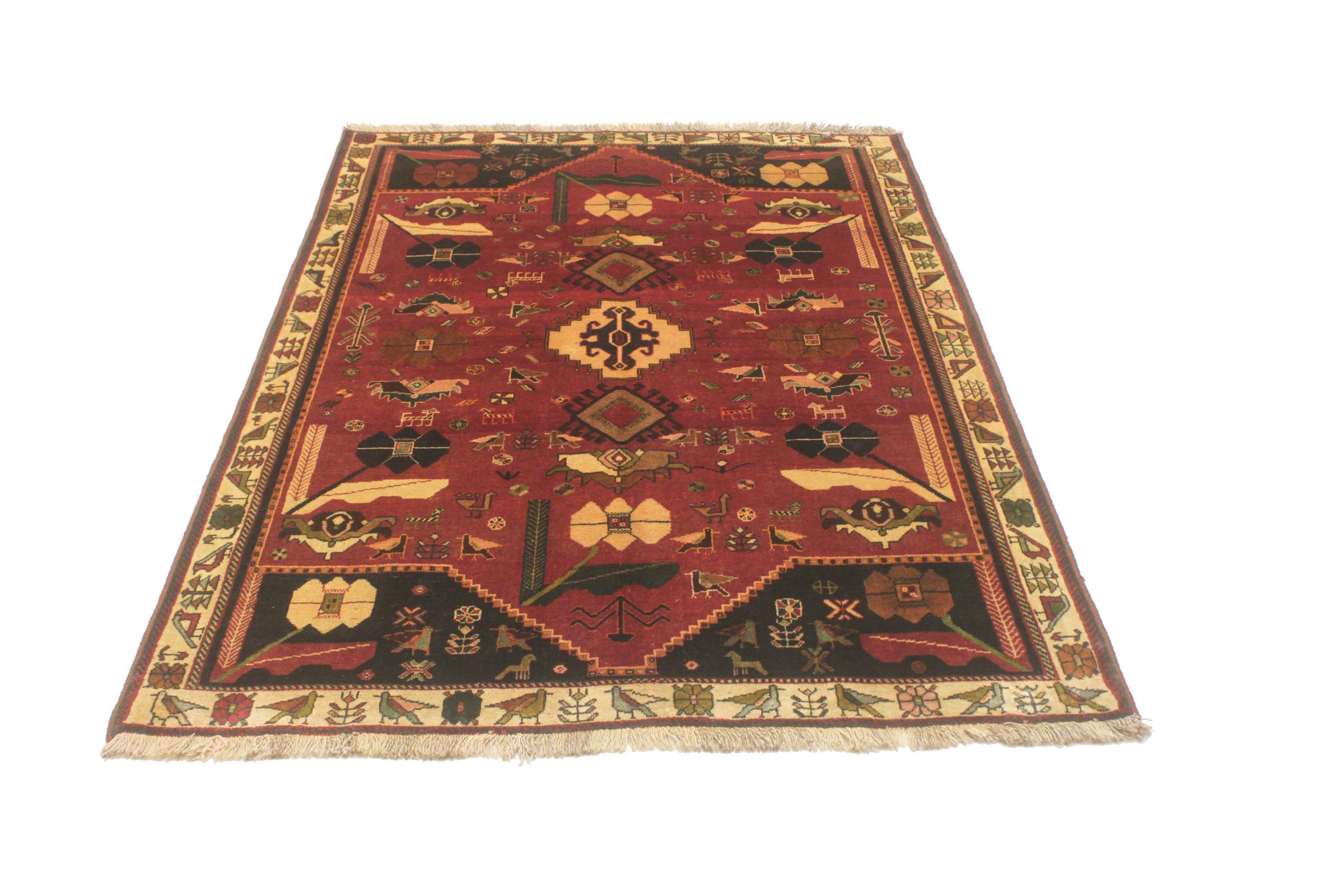 Este tapete pertence a tapetes de aldeia e nómadas do Irão, antiga Pérsia. Este tipo de tapete é atado à mão em cidades mais pequenas e aldeias da velha tradição. Mesmo os nómadas ainda atam tapetes persas ao ar livre. Os tapetes são atados sem padrão e completamente a partir da cabeça. Caracterizam-se por ornamentos clássicos, dispostos em padrões rectos e geométricos. Graças à sua origem cultural-tradicional, estes tapetes têm um carácter único que encarna a antiga Pérsia.