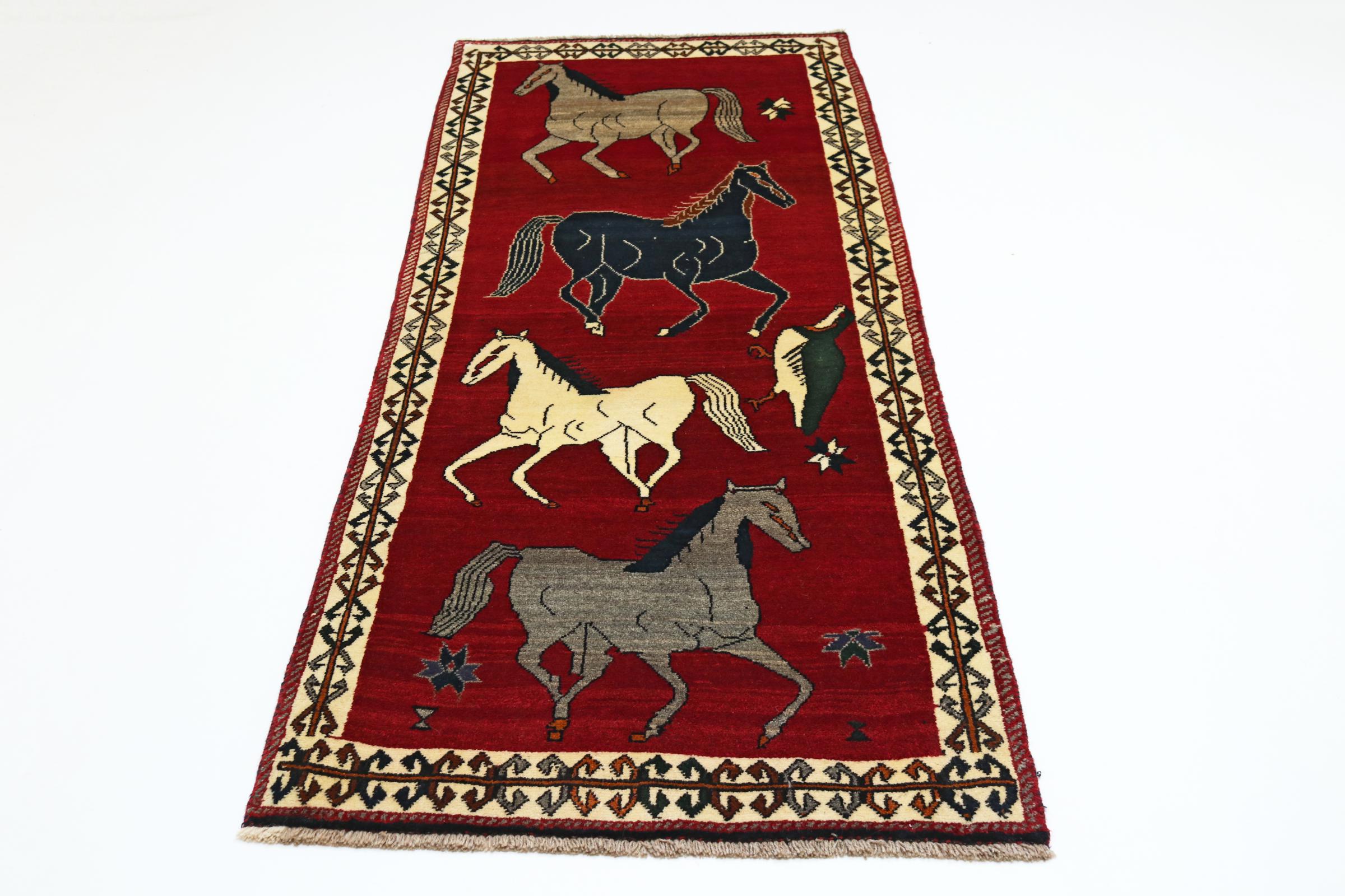 Nº do Tapete: 55237002592993 Tamanho: 7'0"x2'11" ft Espessura: aproximadamente 0.47 in Nós: 103 - 129 / Polegada quadrada Processamento: Atado à mão Veludo: Lã tecida à mão Urdidura: Algodão Origem: Pérsia / Iran Idade: Novo Peso: aproximadamente 15 lb Também conhecido como Qashqai, Gaschgai, Gashghai, Kashgai Em armazém: Único