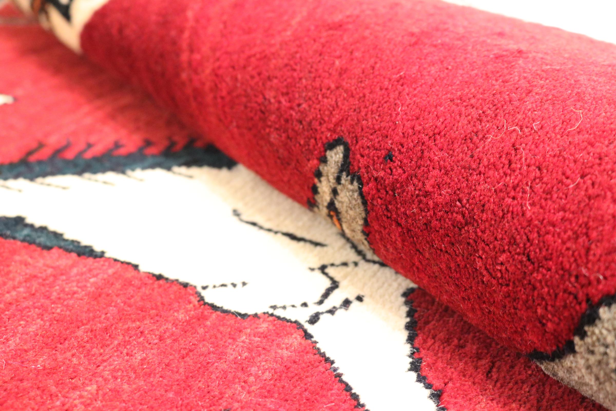 Este tapete é feito de lã de ovelha fiada à mão, da mais alta qualidade. Especialmente no Irão (antiga Pérsia), Afeganistão e Paquistão, a lã ainda é fiada à mão antes do início do nó do tapete. A lã tem provado ser um material natural e extremamente resistente ao longo dos séculos. Entre outras coisas, tem propriedades repelentes de impurezas e isolantes térmicos. Ao mesmo tempo, a lã é incomparavelmente macia e tem um brilho natural.