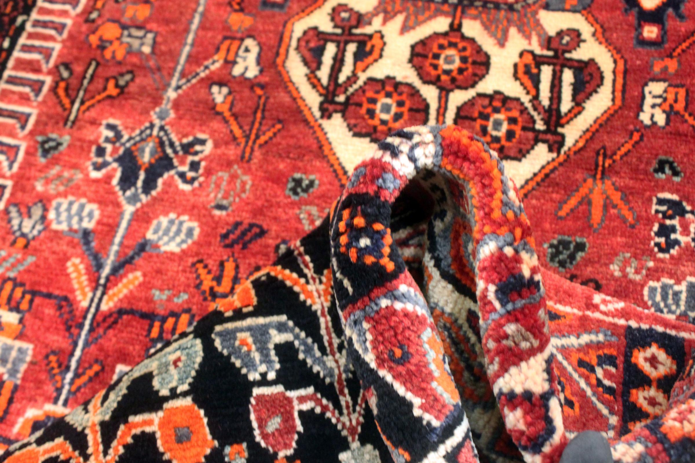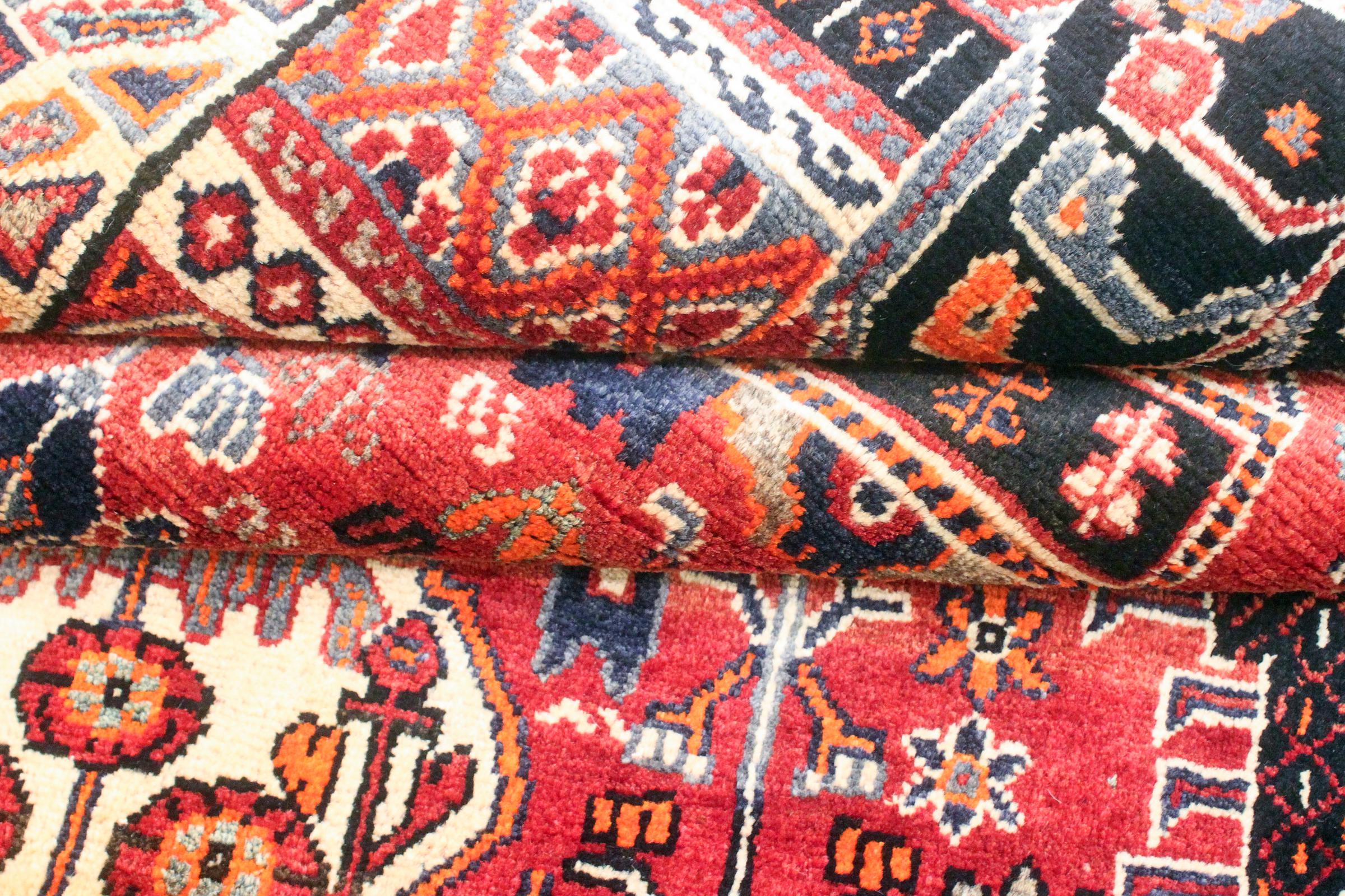 Este ghashghai é um verdadeiro destaque. As suas cores e padrões reflectem a vida dos nómadas ghashghai do Irão. Estas tribos nómadas vivem principalmente nos arredores da cidade de Shiraz. Deixe um pedaço da antiga cultura persa entrar nas suas próprias quatro paredes.