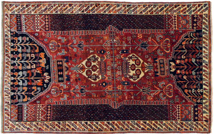 Este tapete pertence a tapetes de aldeia e nómadas do Irão, antiga Pérsia. Este tipo de tapete é atado à mão em cidades mais pequenas e aldeias da velha tradição. Mesmo os nómadas ainda atam tapetes persas ao ar livre. Os tapetes são atados sem padrão e completamente a partir da cabeça. Caracterizam-se por ornamentos clássicos, dispostos em padrões rectos e geométricos. Graças à sua origem cultural-tradicional, estes tapetes têm um carácter único que encarna a antiga Pérsia.