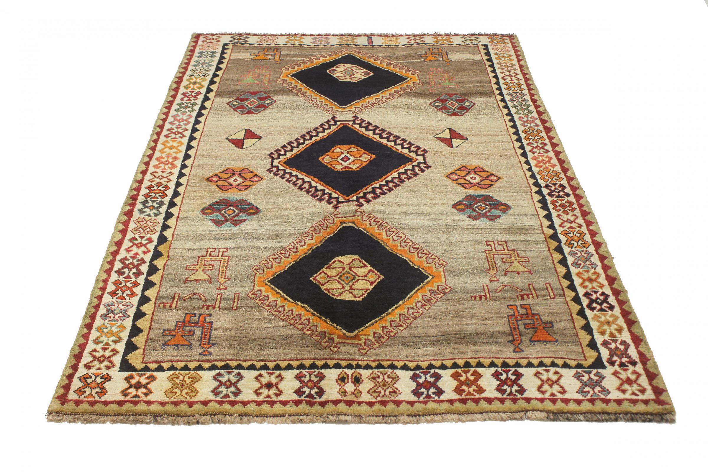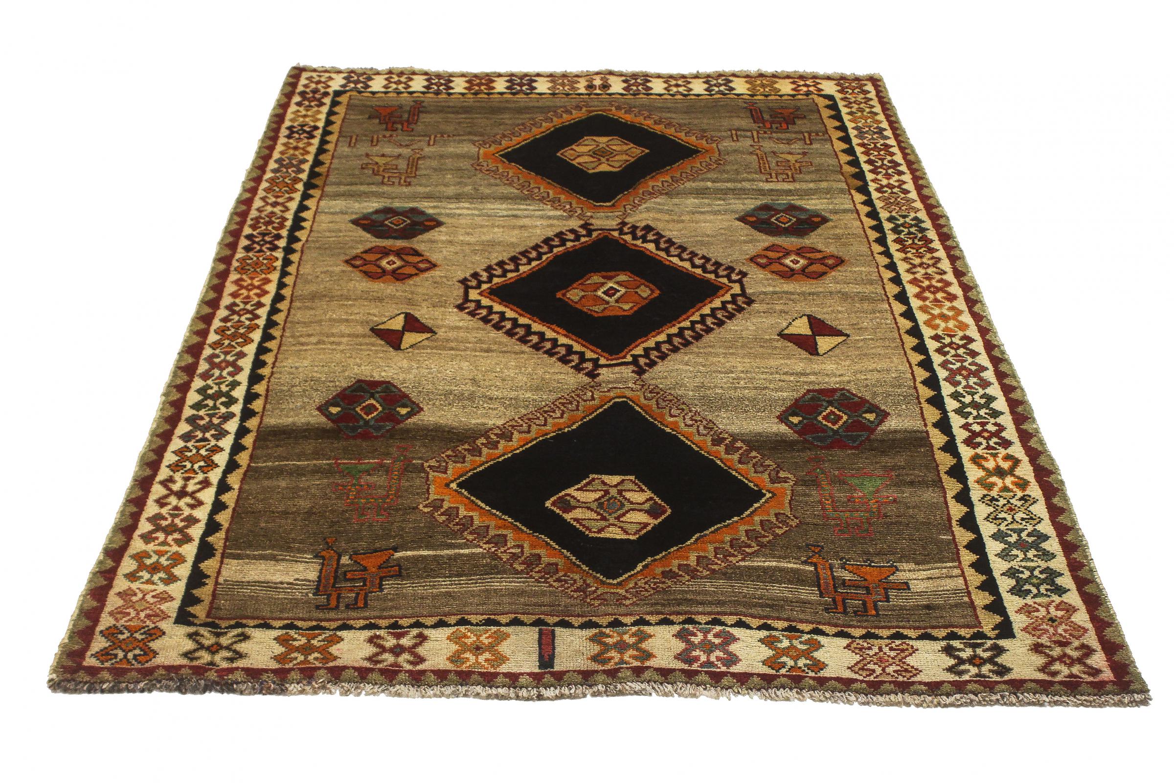 Este tapete pertence a tapetes de aldeia e nómadas do Irão, antiga Pérsia. Este tipo de tapete é atado à mão em cidades mais pequenas e aldeias da velha tradição. Mesmo os nómadas ainda atam tapetes persas ao ar livre. Os tapetes são atados sem padrão e completamente a partir da cabeça. Caracterizam-se por ornamentos clássicos, dispostos em padrões rectos e geométricos. Graças à sua origem cultural-tradicional, estes tapetes têm um carácter único que encarna a antiga Pérsia.
