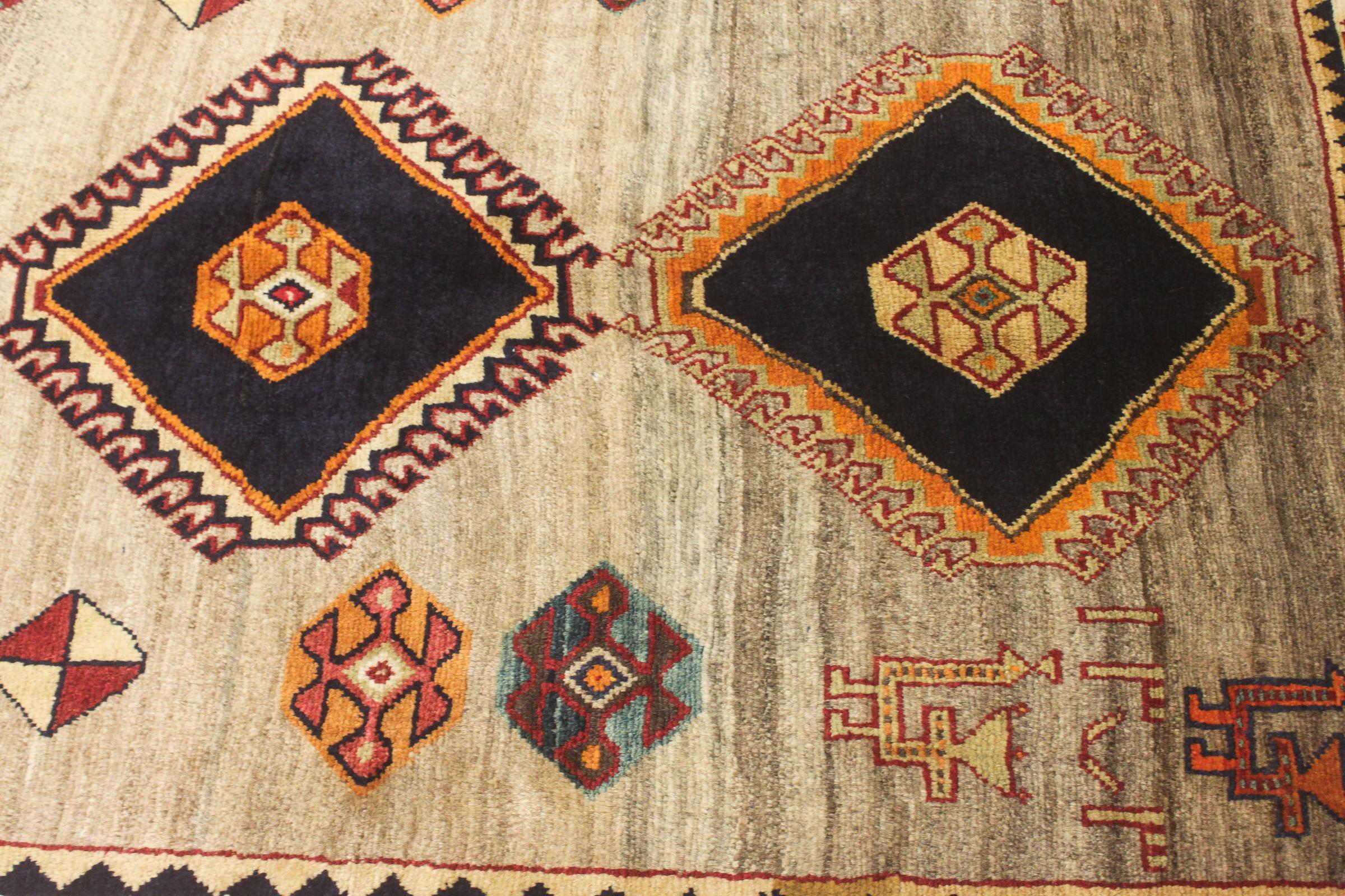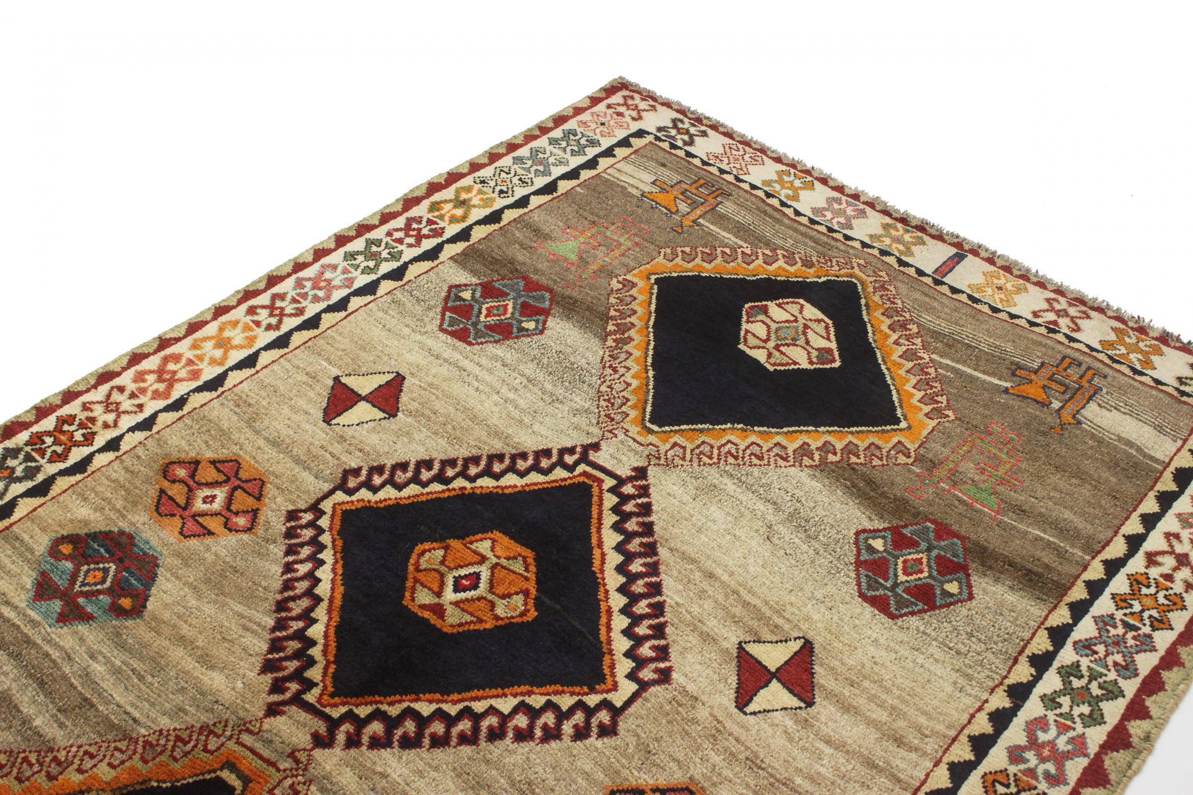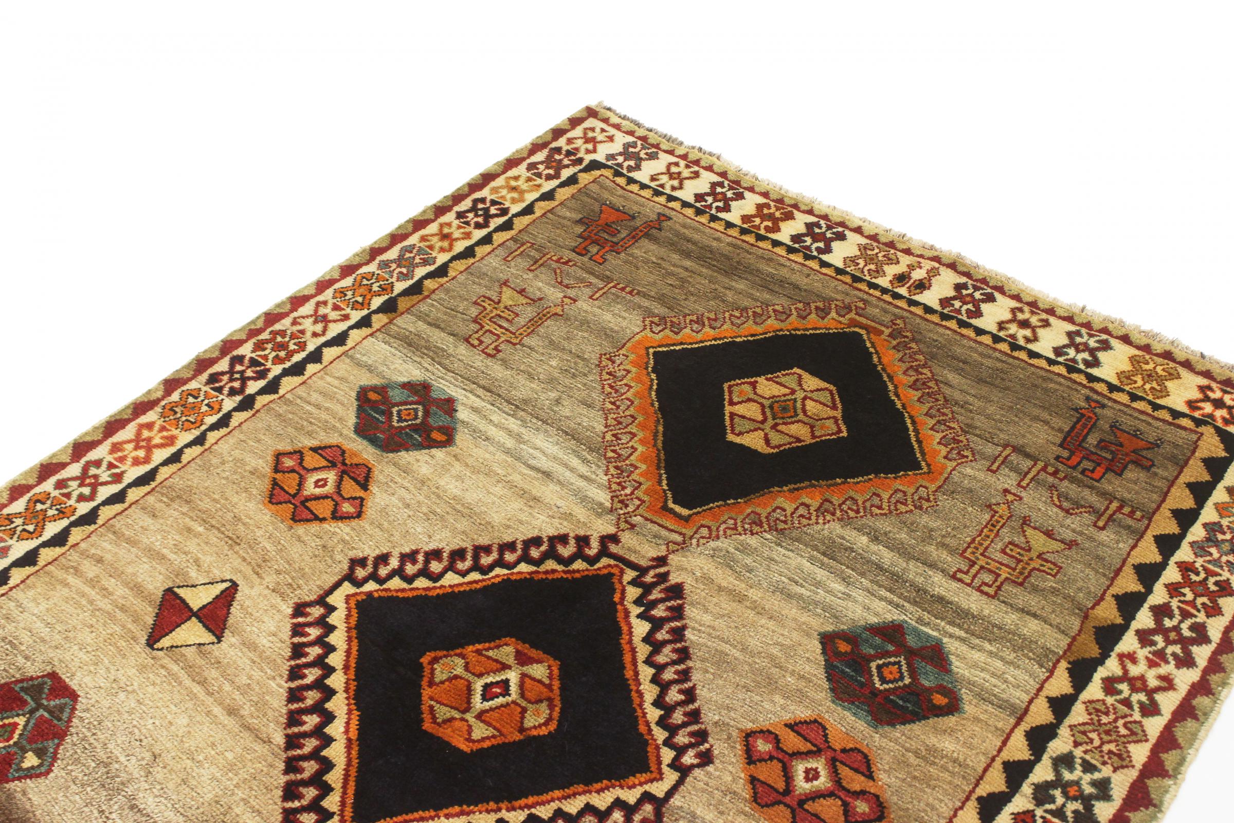 Este ghashghai é um verdadeiro destaque. As suas cores e padrões reflectem a vida dos nómadas ghashghai do Irão. Estas tribos nómadas vivem principalmente nos arredores da cidade de Shiraz. Deixe um pedaço da antiga cultura persa entrar nas suas próprias quatro paredes.