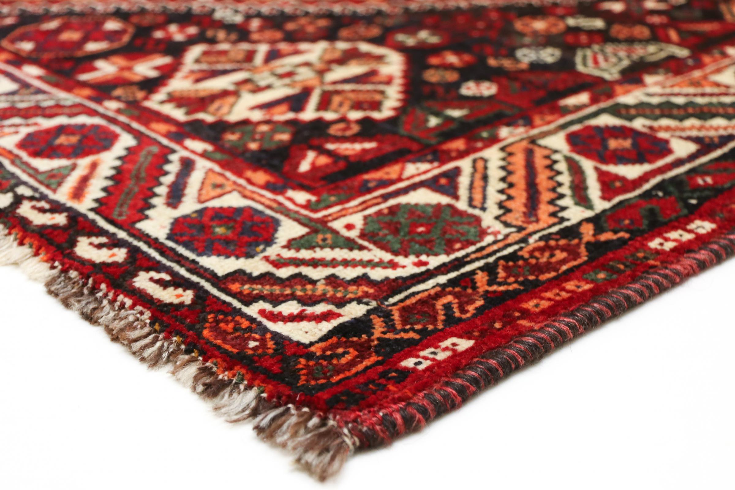 Este tapete pertence a tapetes de aldeia e nómadas do Irão, antiga Pérsia. Este tipo de tapete é atado à mão em cidades mais pequenas e aldeias da velha tradição. Mesmo os nómadas ainda atam tapetes persas ao ar livre. Os tapetes são atados sem padrão e completamente a partir da cabeça. Caracterizam-se por ornamentos clássicos, dispostos em padrões rectos e geométricos. Graças à sua origem cultural-tradicional, estes tapetes têm um carácter único que encarna a antiga Pérsia.