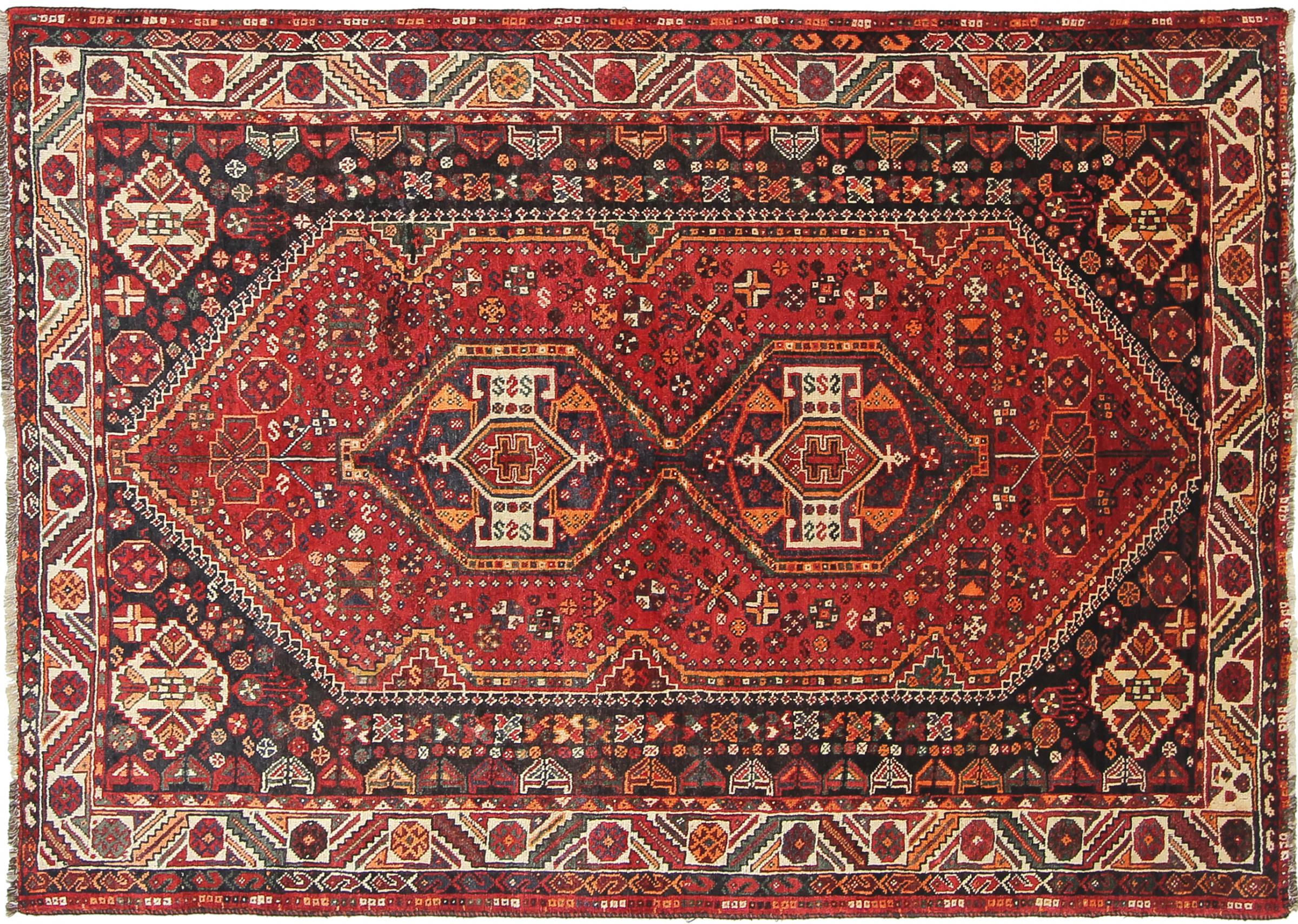 Este ghashghai é um verdadeiro destaque. As suas cores e padrões reflectem a vida dos nómadas ghashghai do Irão. Estas tribos nómadas vivem principalmente nos arredores da cidade de Shiraz. Deixe um pedaço da antiga cultura persa entrar nas suas próprias quatro paredes.