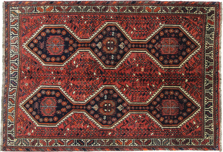 Este tapete pertence a tapetes de aldeia e nómadas do Irão, antiga Pérsia. Este tipo de tapete é atado à mão em cidades mais pequenas e aldeias da velha tradição. Mesmo os nómadas ainda atam tapetes persas ao ar livre. Os tapetes são atados sem padrão e completamente a partir da cabeça. Caracterizam-se por ornamentos clássicos, dispostos em padrões rectos e geométricos. Graças à sua origem cultural-tradicional, estes tapetes têm um carácter único que encarna a antiga Pérsia.