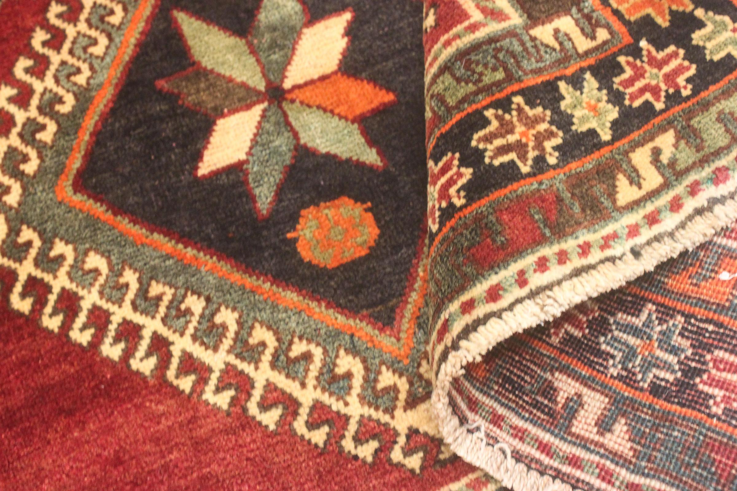 Este ghashghai é um verdadeiro destaque. As suas cores e padrões reflectem a vida dos nómadas ghashghai do Irão. Estas tribos nómadas vivem principalmente nos arredores da cidade de Shiraz. Deixe um pedaço da antiga cultura persa entrar nas suas próprias quatro paredes.