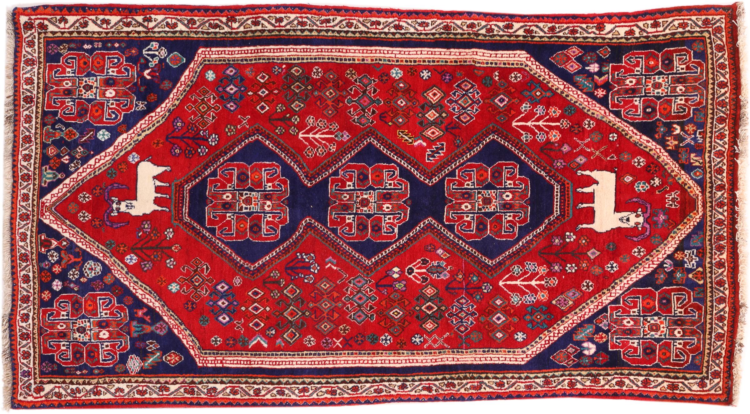 Nº do Tapete: 212773009315828 Tamanho: 241x129 cm Espessura: aproximadamente 12 mm Nós: 128 000 - 160 000 / m² Processamento: Atado à mão Veludo: Lã tecida à mão Urdidura: Lã Natural Origem: Pérsia / Iran Idade: Novo Peso: aproximadamente 11 kg Também conhecido como Qashqai, Gaschgai, Gashghai, Kashgai Em armazém: Único - Apenas 1 em stock