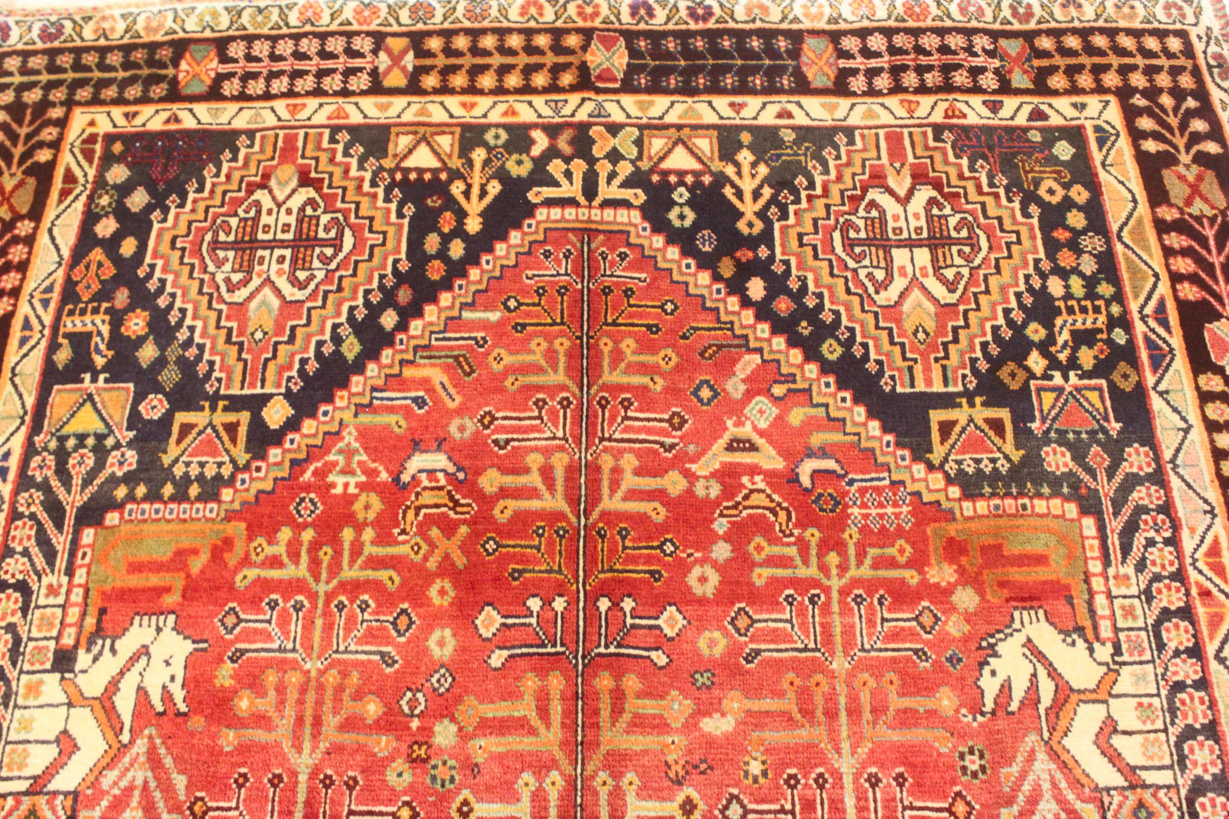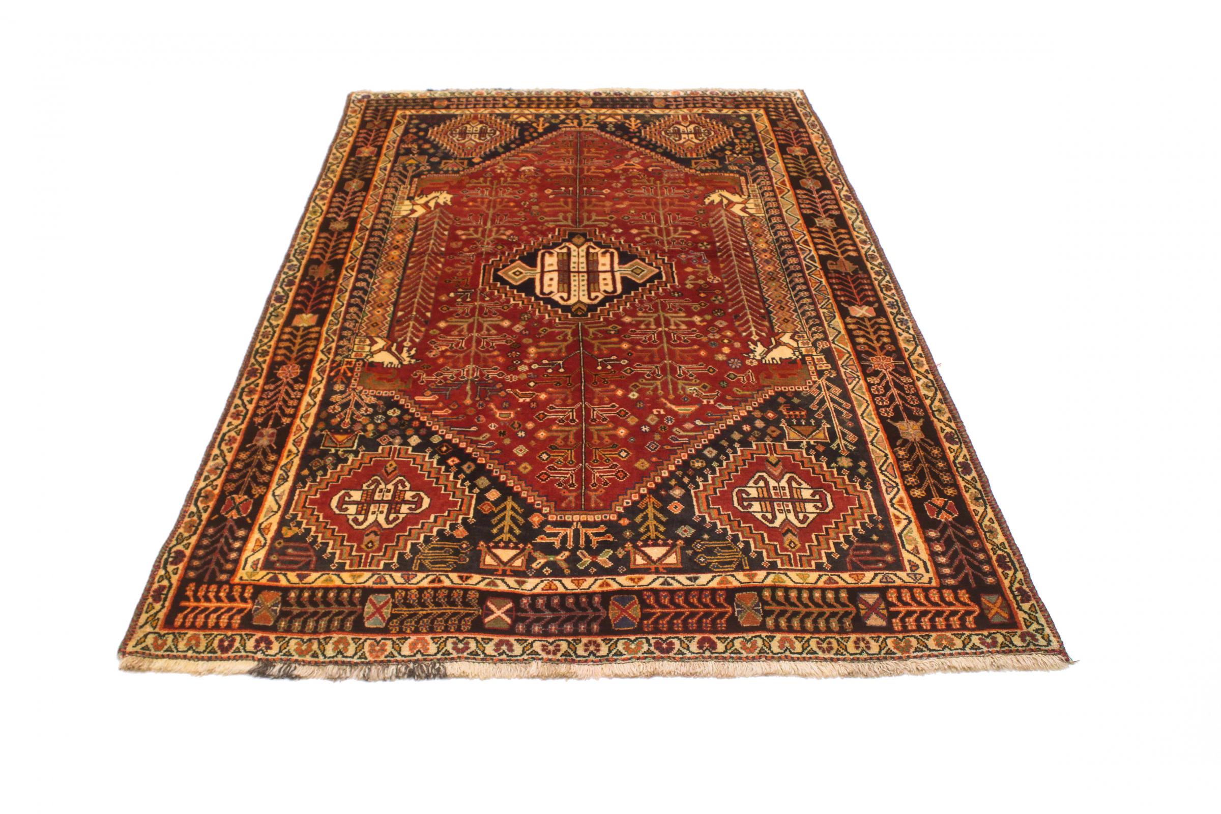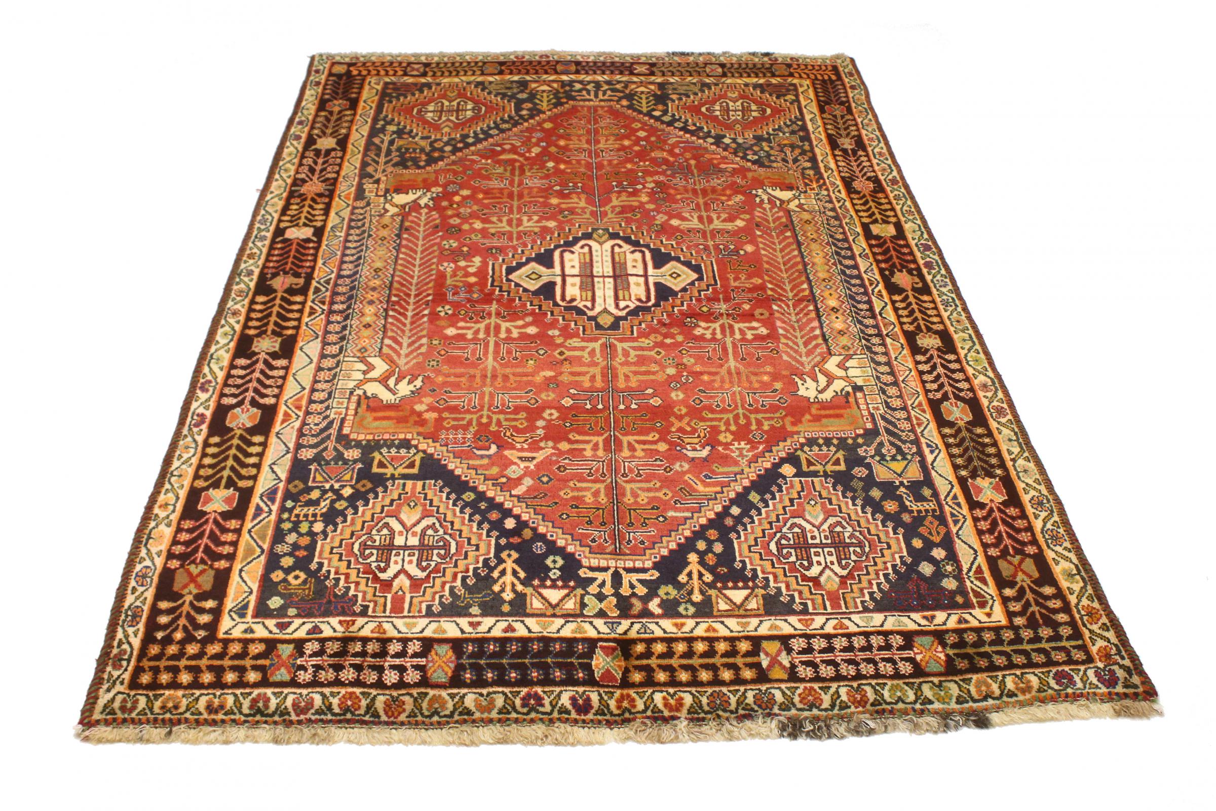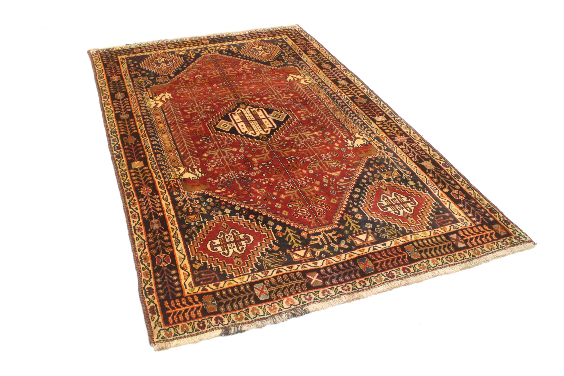 Este ghashghai é um verdadeiro destaque. As suas cores e padrões reflectem a vida dos nómadas ghashghai do Irão. Estas tribos nómadas vivem principalmente nos arredores da cidade de Shiraz. Deixe um pedaço da antiga cultura persa entrar nas suas próprias quatro paredes.