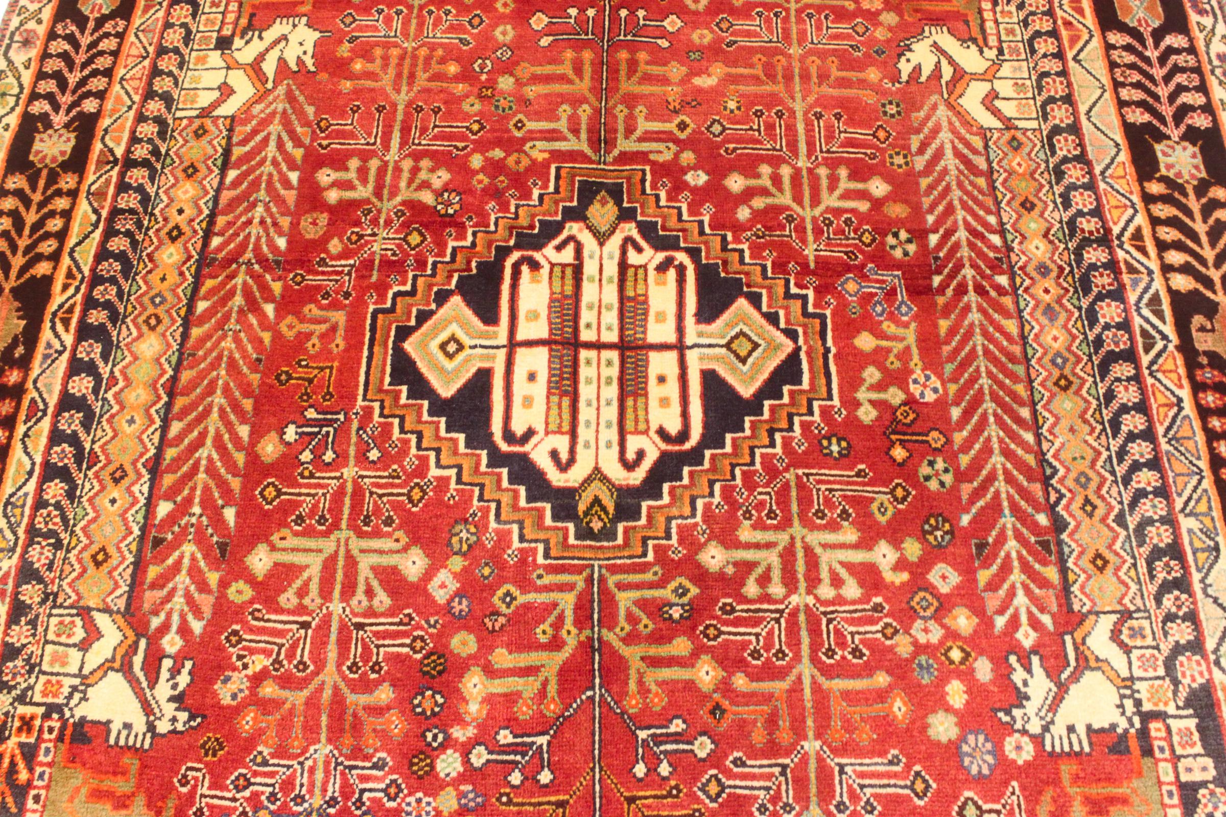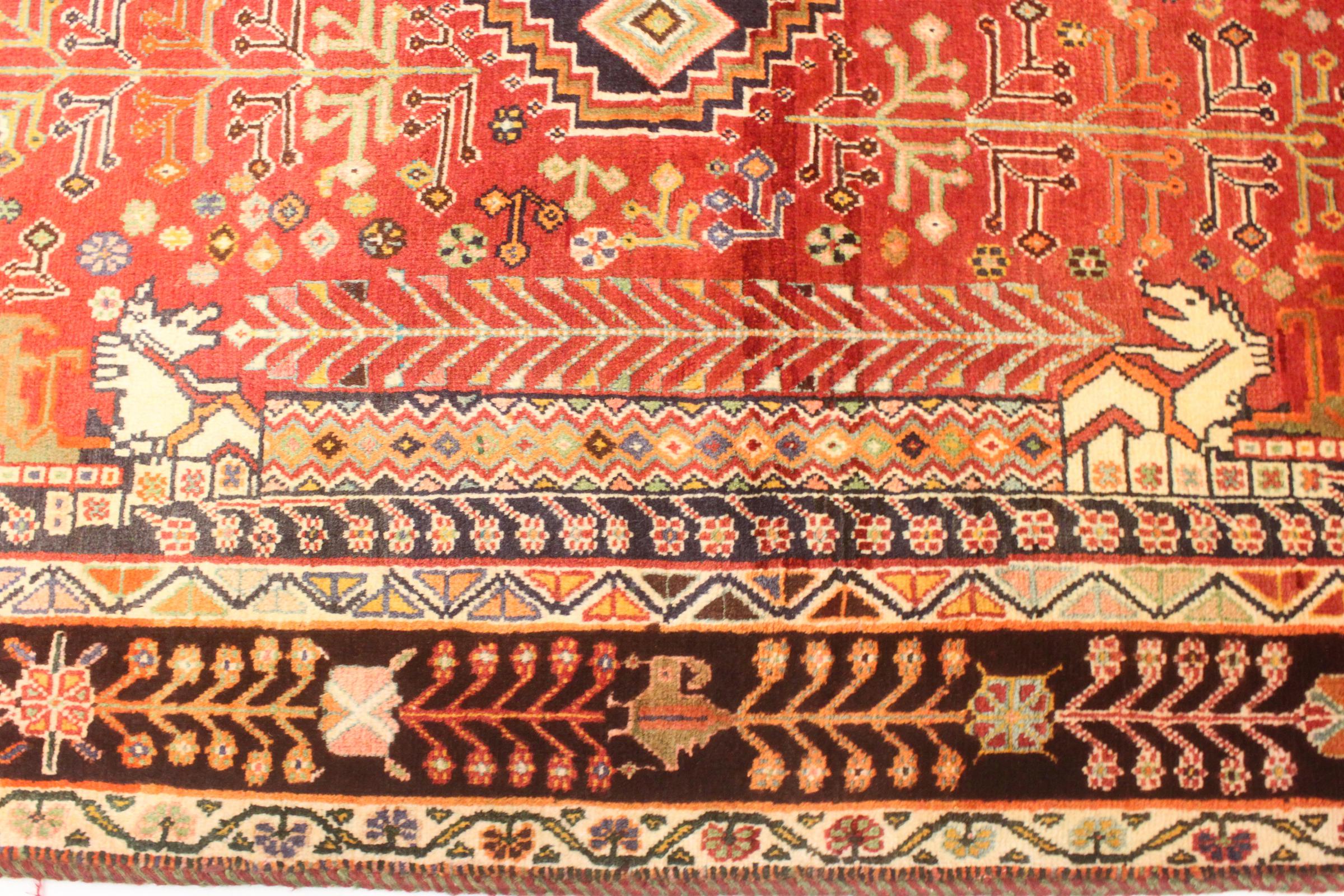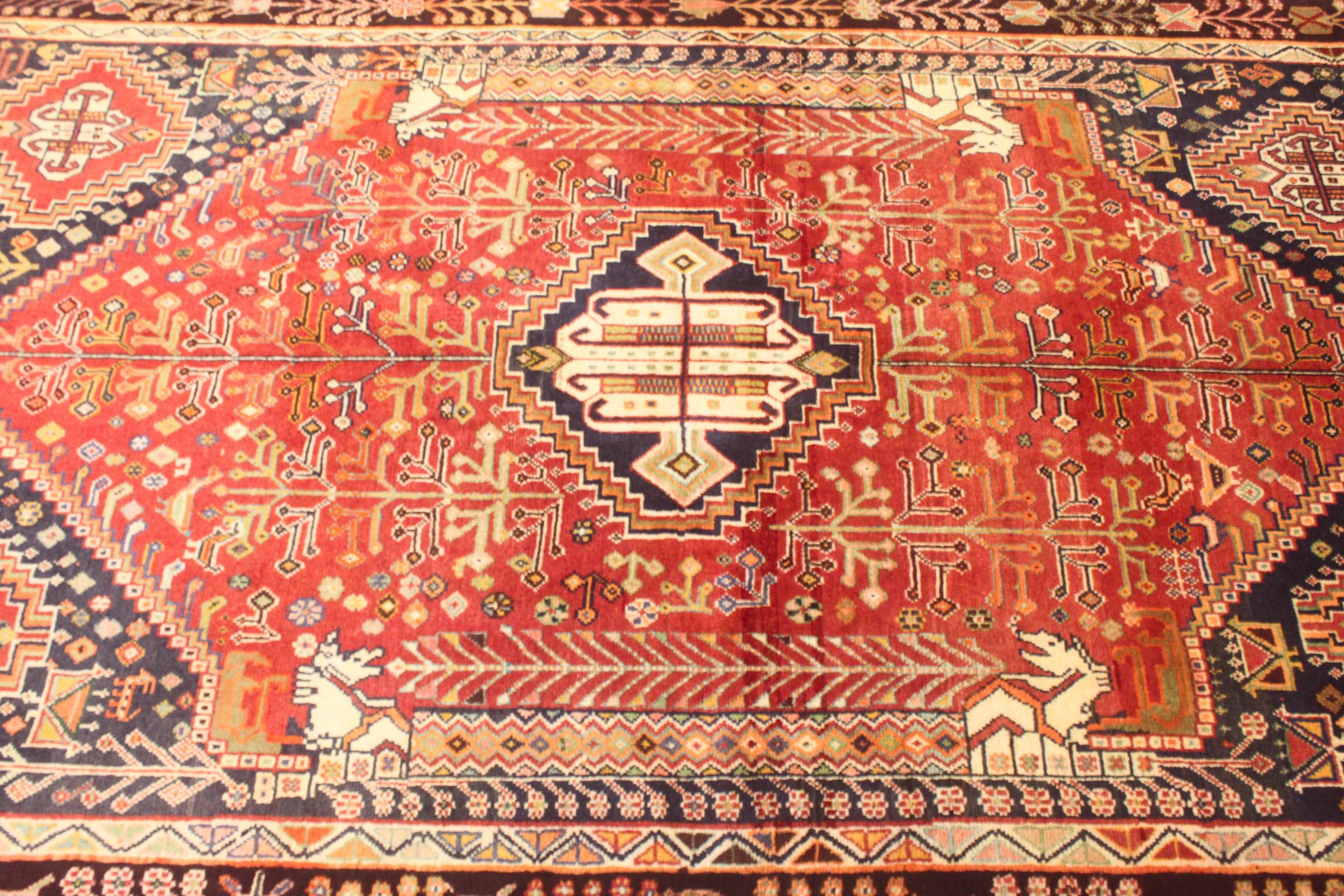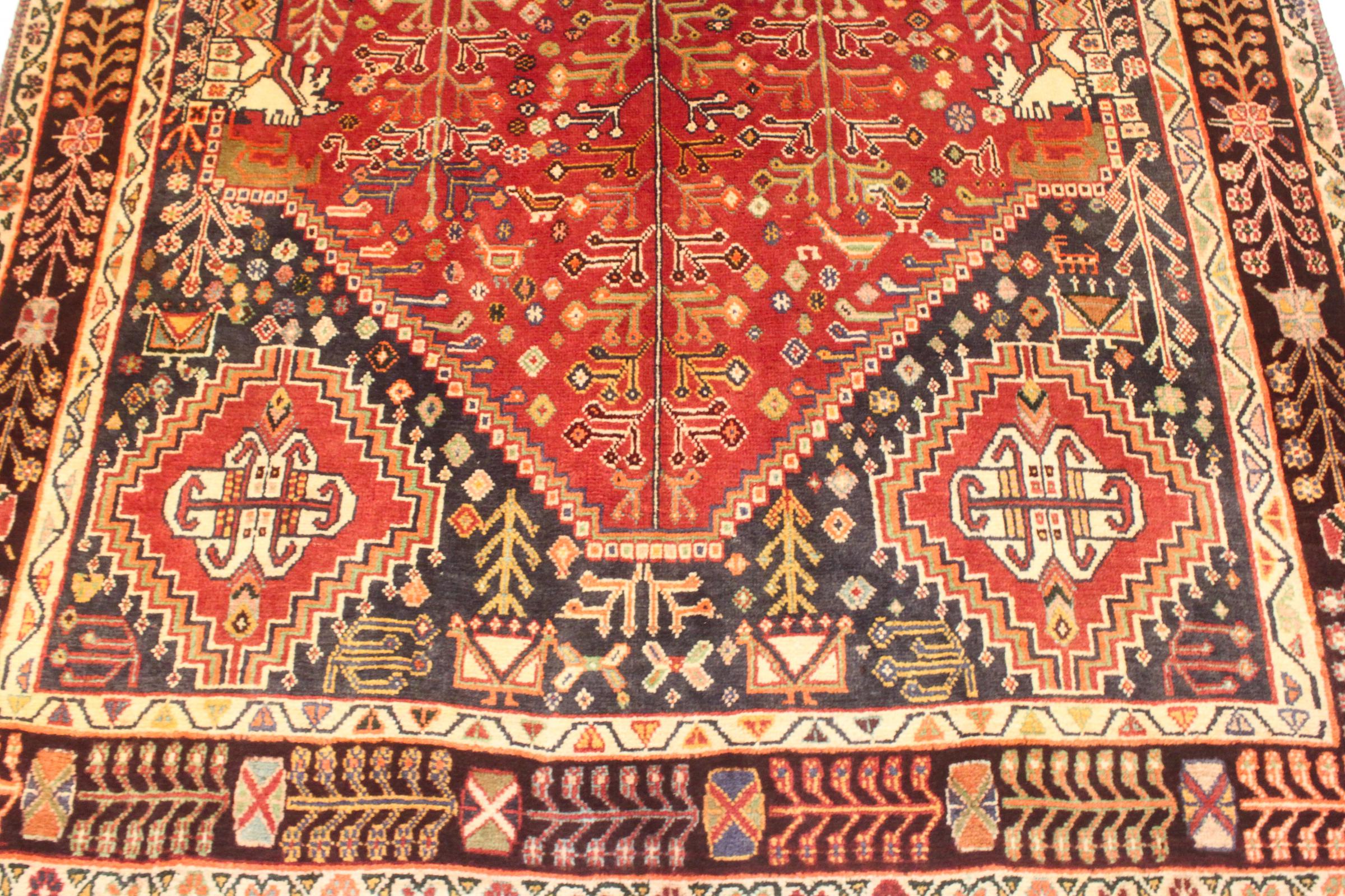 Este ghashghai é um verdadeiro destaque. As suas cores e padrões reflectem a vida dos nómadas ghashghai do Irão. Estas tribos nómadas vivem principalmente nos arredores da cidade de Shiraz. Deixe um pedaço da antiga cultura persa entrar nas suas próprias quatro paredes.