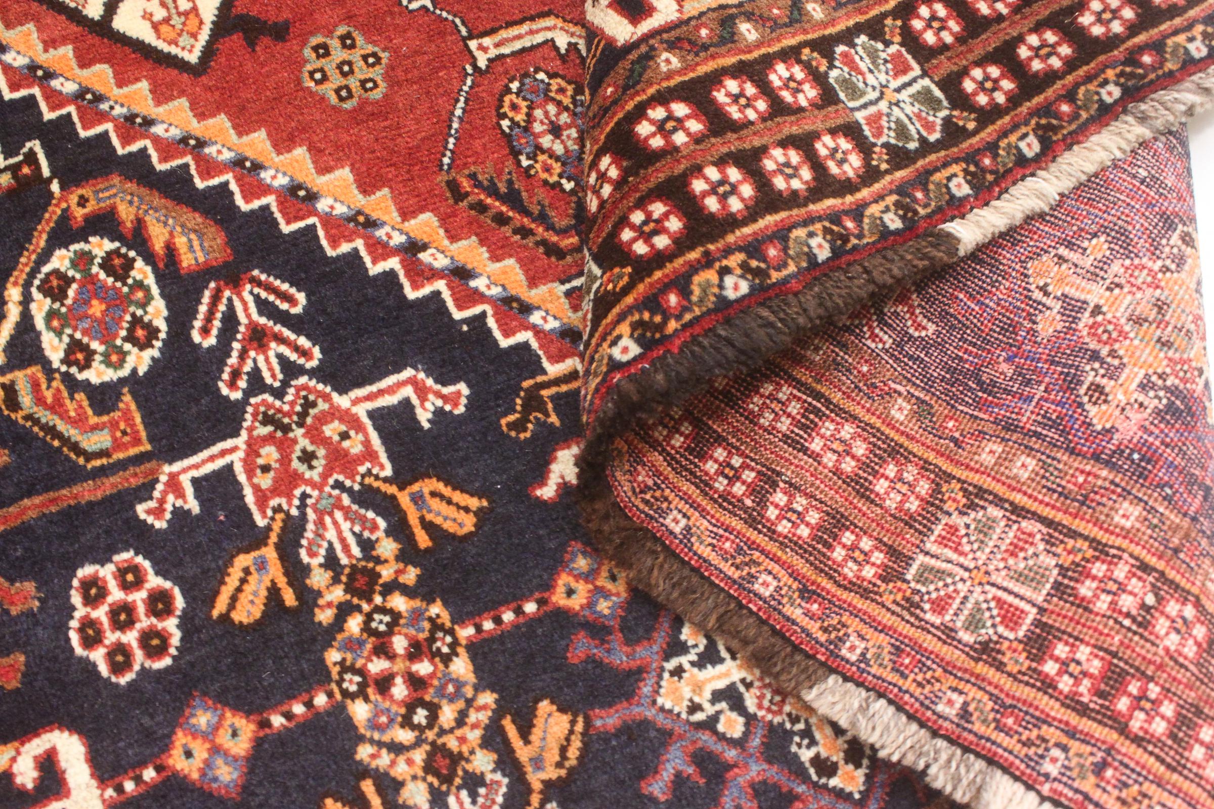 Nº do Tapete: 7492800149812 Tamanho: 246x150 cm Espessura: aproximadamente 12 mm Nós: 72 000 - 90 000 / m² Processamento: Atado à mão Veludo: Lã tecida à mão Urdidura: Lã Natural Origem: Pérsia / Iran Idade: Novo Peso: aproximadamente 13 kg Também conhecido como Qashqai, Gaschgai, Gashghai, Kashgai Em armazém: Único - Apenas 1 em stock