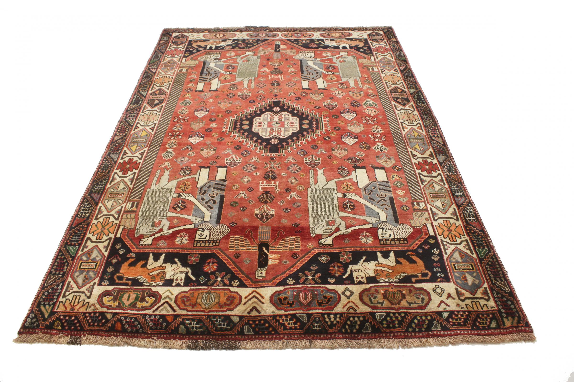 Este ghashghai é um verdadeiro destaque. As suas cores e padrões reflectem a vida dos nómadas ghashghai do Irão. Estas tribos nómadas vivem principalmente nos arredores da cidade de Shiraz. Deixe um pedaço da antiga cultura persa entrar nas suas próprias quatro paredes.