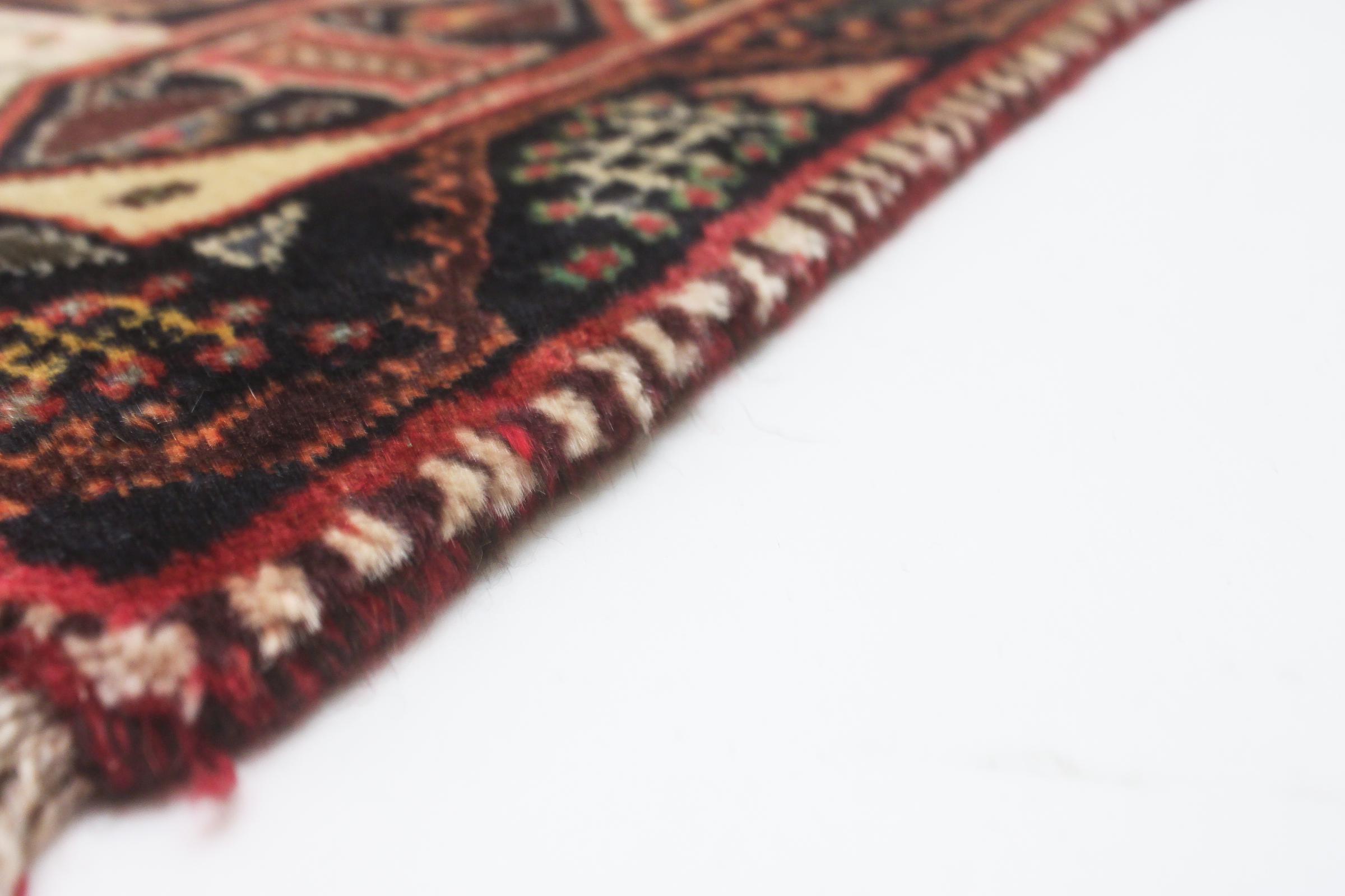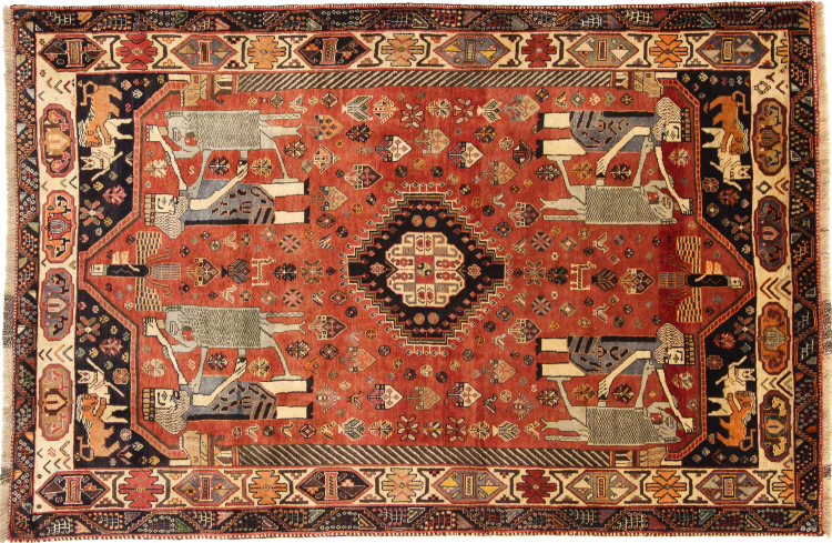 Este tapete pertence a tapetes de aldeia e nómadas do Irão, antiga Pérsia. Este tipo de tapete é atado à mão em cidades mais pequenas e aldeias da velha tradição. Mesmo os nómadas ainda atam tapetes persas ao ar livre. Os tapetes são atados sem padrão e completamente a partir da cabeça. Caracterizam-se por ornamentos clássicos, dispostos em padrões rectos e geométricos. Graças à sua origem cultural-tradicional, estes tapetes têm um carácter único que encarna a antiga Pérsia.