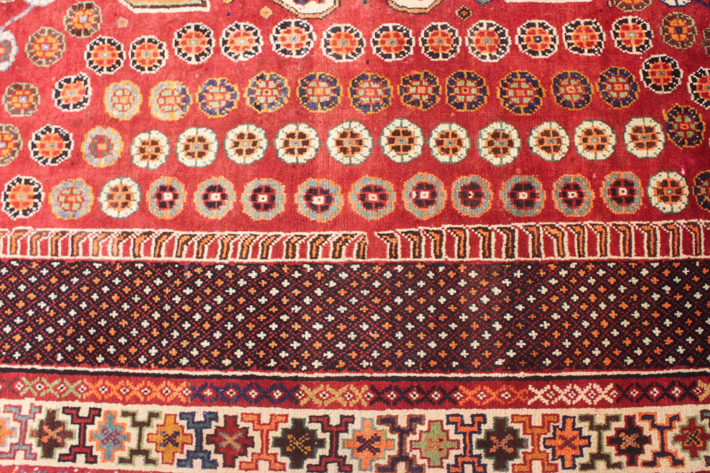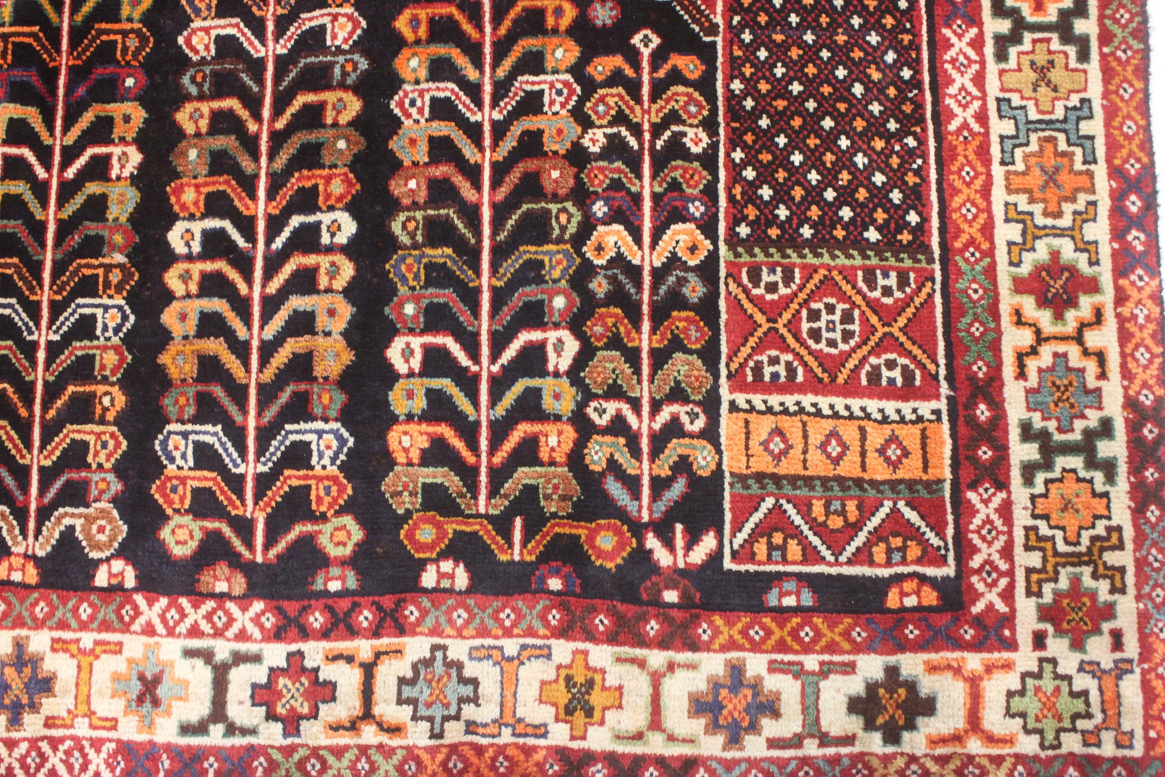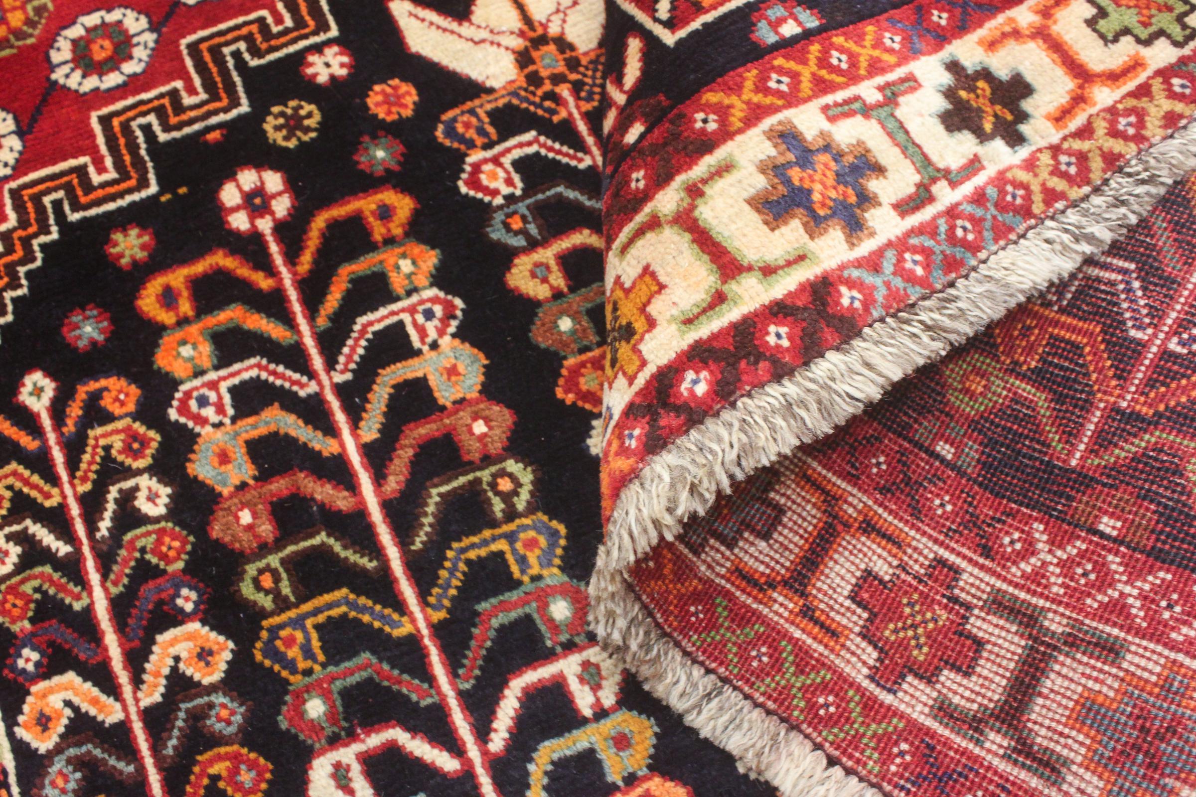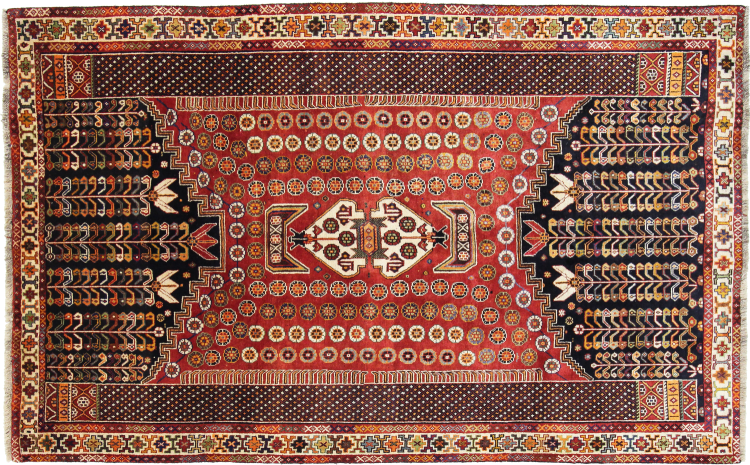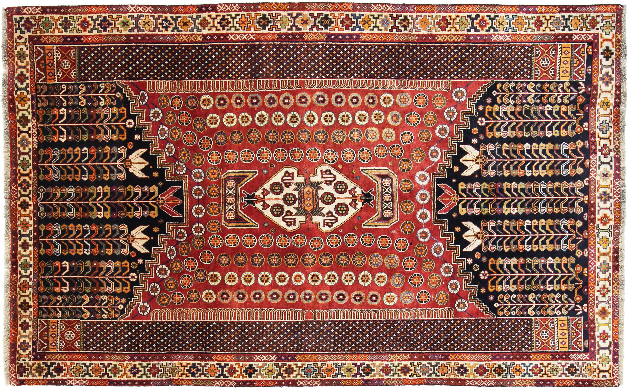 Este tapete pertence a tapetes de aldeia e nómadas do Irão, antiga Pérsia. Este tipo de tapete é atado à mão em cidades mais pequenas e aldeias da velha tradição. Mesmo os nómadas ainda atam tapetes persas ao ar livre. Os tapetes são atados sem padrão e completamente a partir da cabeça. Caracterizam-se por ornamentos clássicos, dispostos em padrões rectos e geométricos. Graças à sua origem cultural-tradicional, estes tapetes têm um carácter único que encarna a antiga Pérsia.