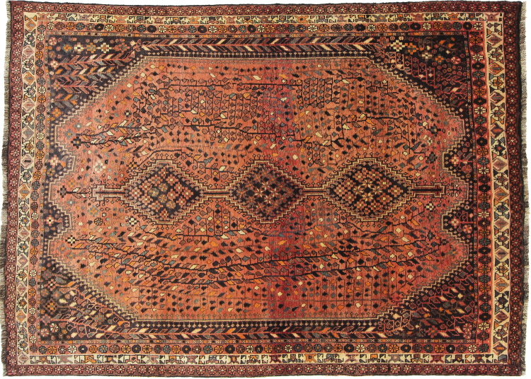 Este tapete pertence a tapetes de aldeia e nómadas do Irão, antiga Pérsia. Este tipo de tapete é atado à mão em cidades mais pequenas e aldeias da velha tradição. Mesmo os nómadas ainda atam tapetes persas ao ar livre. Os tapetes são atados sem padrão e completamente a partir da cabeça. Caracterizam-se por ornamentos clássicos, dispostos em padrões rectos e geométricos. Graças à sua origem cultural-tradicional, estes tapetes têm um carácter único que encarna a antiga Pérsia.
