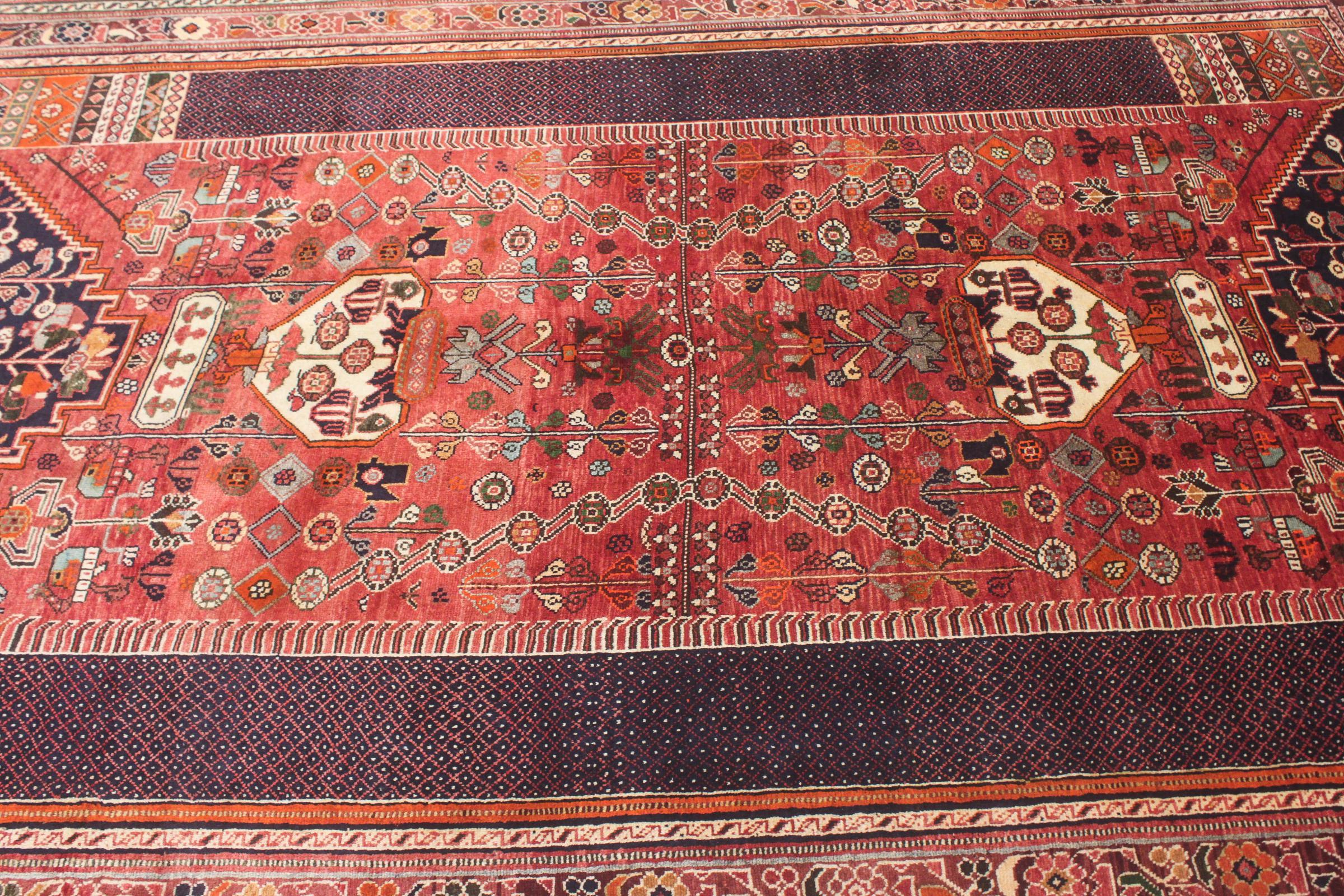 Nº do Tapete: 7489800870408 Tamanho: 278x183 cm Espessura: aproximadamente 12 mm Nós: 72 000 - 90 000 / m² Processamento: Atado à mão Veludo: Lã tecida à mão Urdidura: Lã Natural Origem: Pérsia / Iran Idade: Novo Peso: aproximadamente 18 kg Também conhecido como Qashqai, Gaschgai, Gashghai, Kashgai Em armazém: Único - Apenas 1 em stock