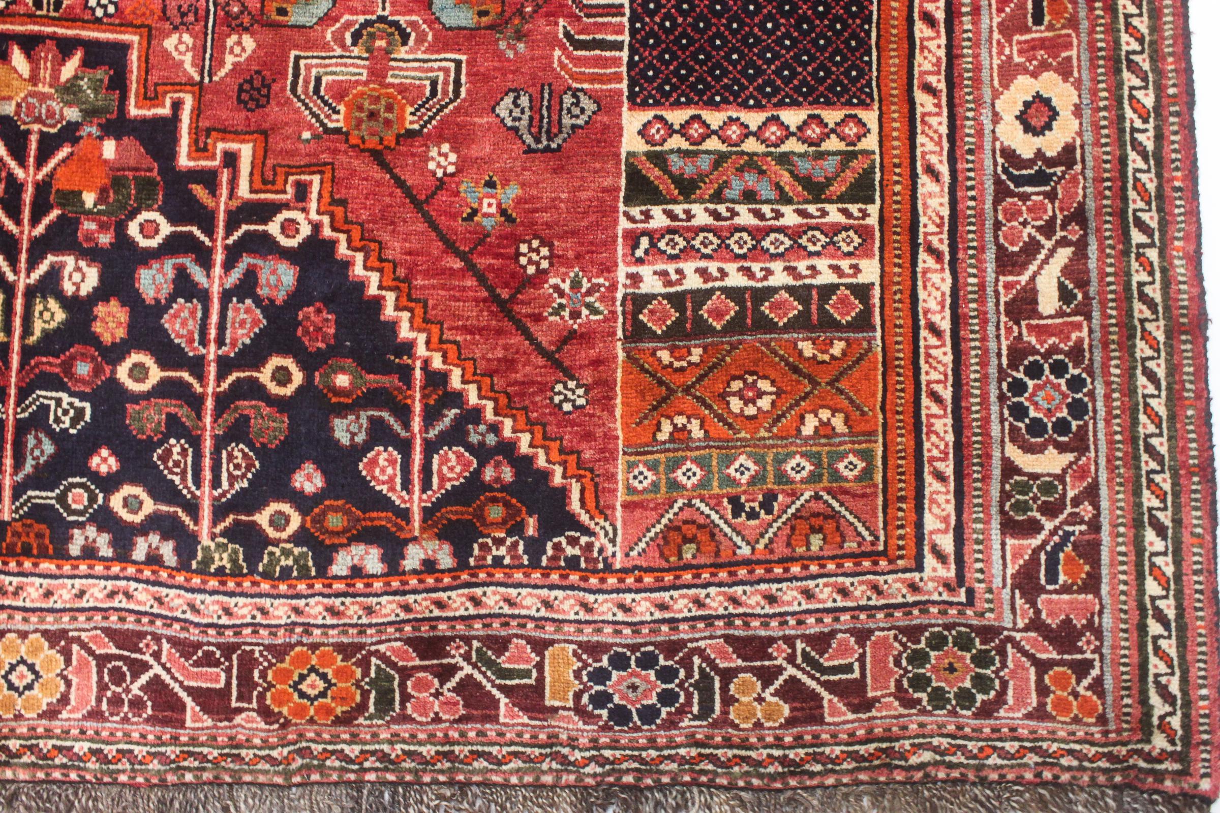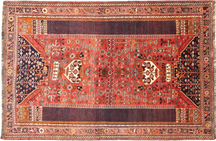 Este tapete pertence a tapetes de aldeia e nómadas do Irão, antiga Pérsia. Este tipo de tapete é atado à mão em cidades mais pequenas e aldeias da velha tradição. Mesmo os nómadas ainda atam tapetes persas ao ar livre. Os tapetes são atados sem padrão e completamente a partir da cabeça. Caracterizam-se por ornamentos clássicos, dispostos em padrões rectos e geométricos. Graças à sua origem cultural-tradicional, estes tapetes têm um carácter único que encarna a antiga Pérsia.