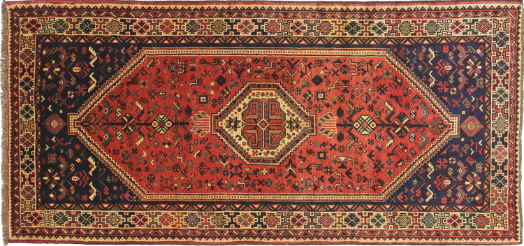 Este tapete pertence a tapetes de aldeia e nómadas do Irão, antiga Pérsia. Este tipo de tapete é atado à mão em cidades mais pequenas e aldeias da velha tradição. Mesmo os nómadas ainda atam tapetes persas ao ar livre. Os tapetes são atados sem padrão e completamente a partir da cabeça. Caracterizam-se por ornamentos clássicos, dispostos em padrões rectos e geométricos. Graças à sua origem cultural-tradicional, estes tapetes têm um carácter único que encarna a antiga Pérsia.
