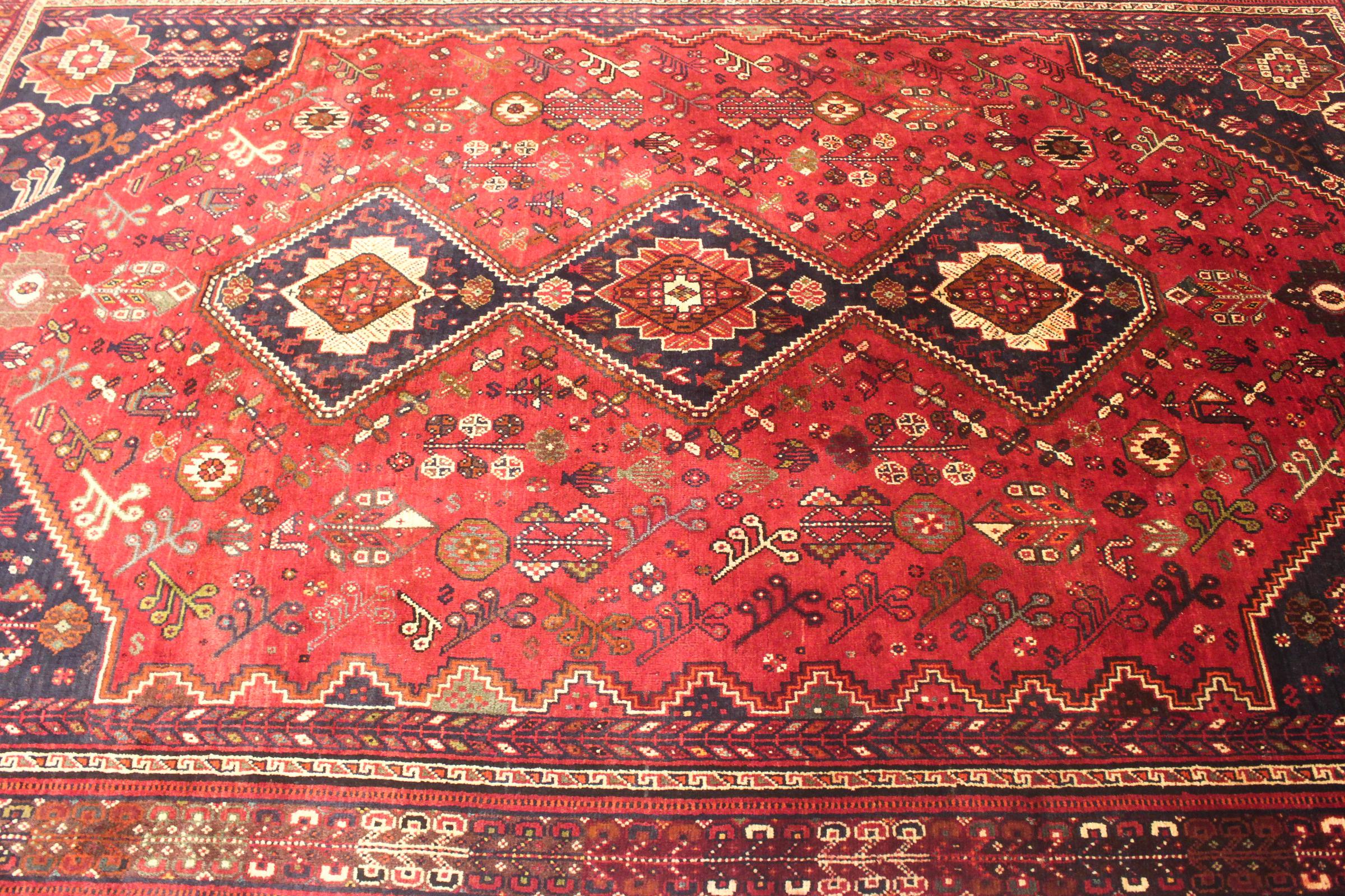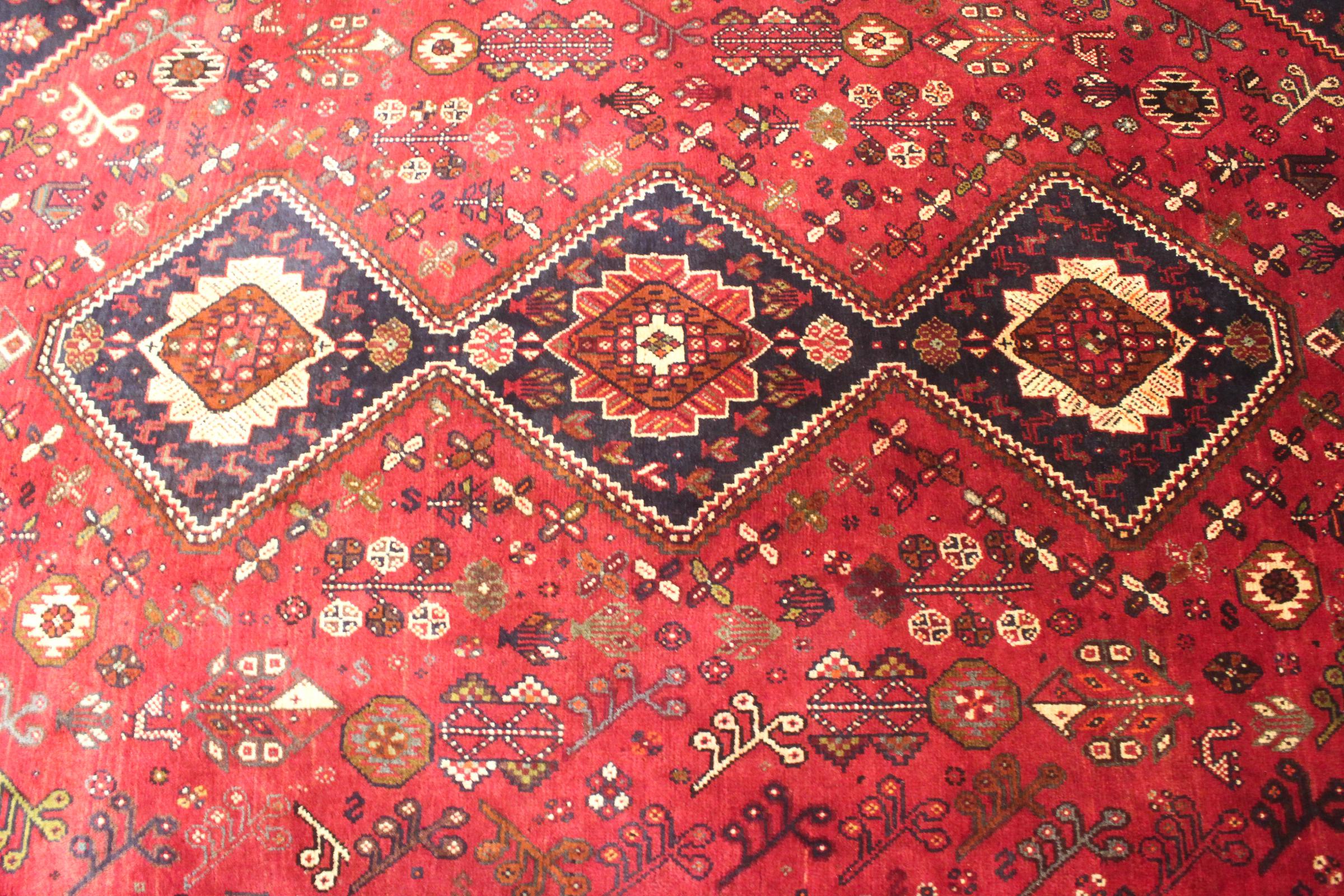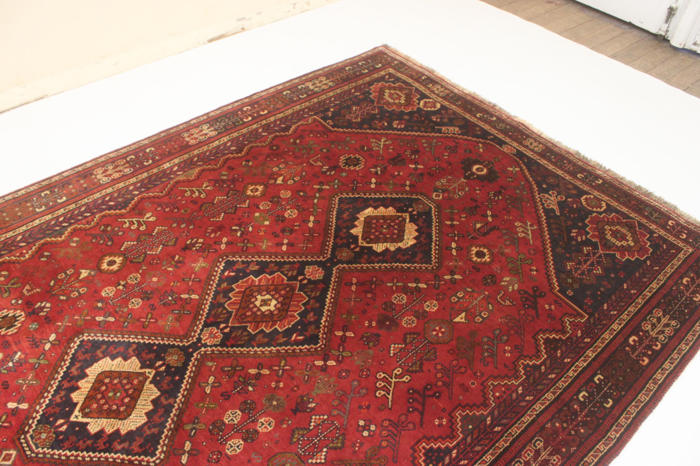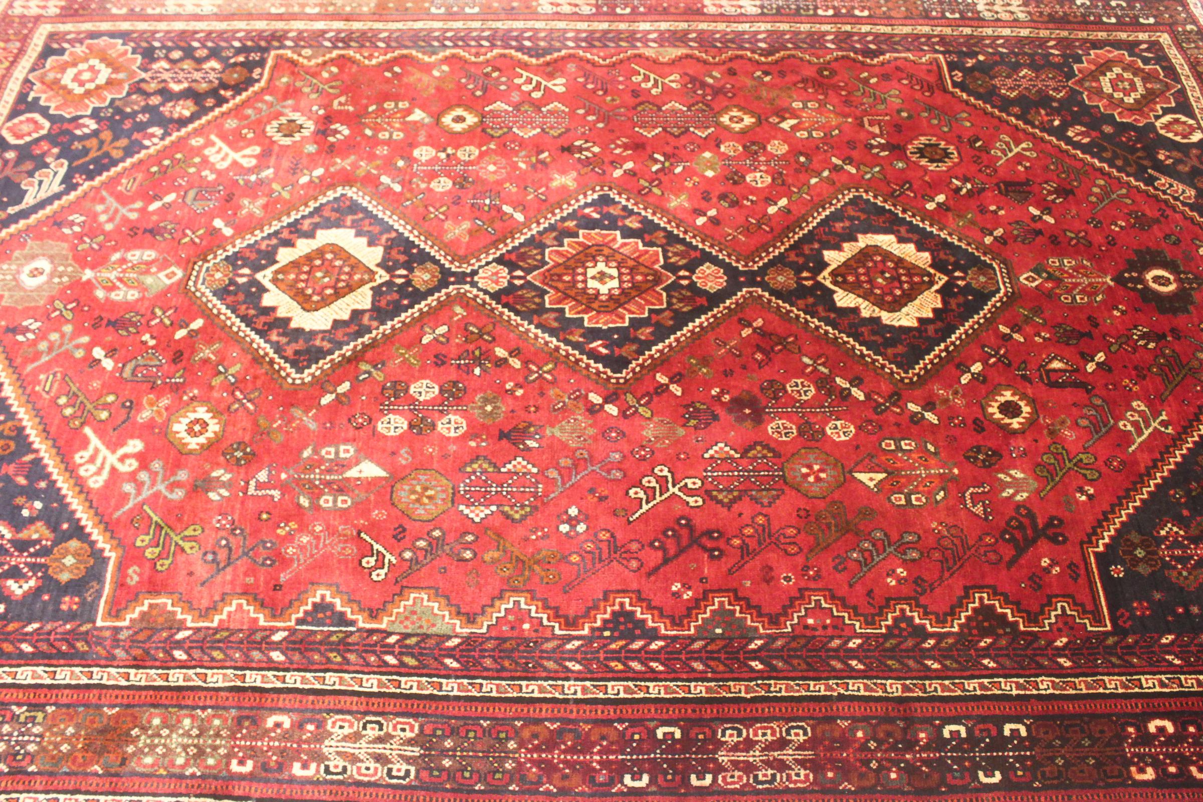 Nº do Tapete: 74886006091340 Tamanho: 280x194 cm Espessura: aproximadamente 12 mm Nós: 72 000 - 90 000 / m² Processamento: Atado à mão Veludo: Lã tecida à mão Urdidura: Lã Natural Origem: Pérsia / Iran Idade: Novo Peso: aproximadamente 19 kg Também conhecido como Qashqai, Gaschgai, Gashghai, Kashgai Em armazém: Único - Apenas 1 em stock