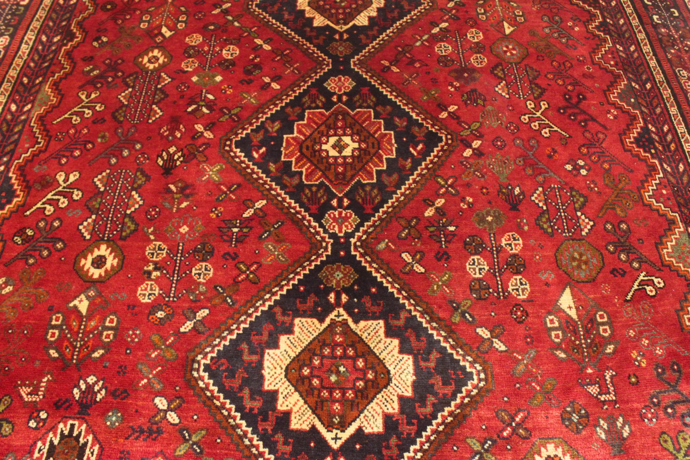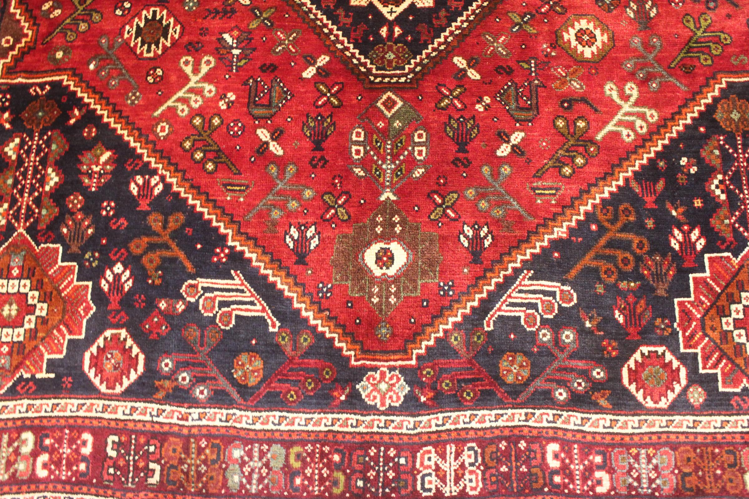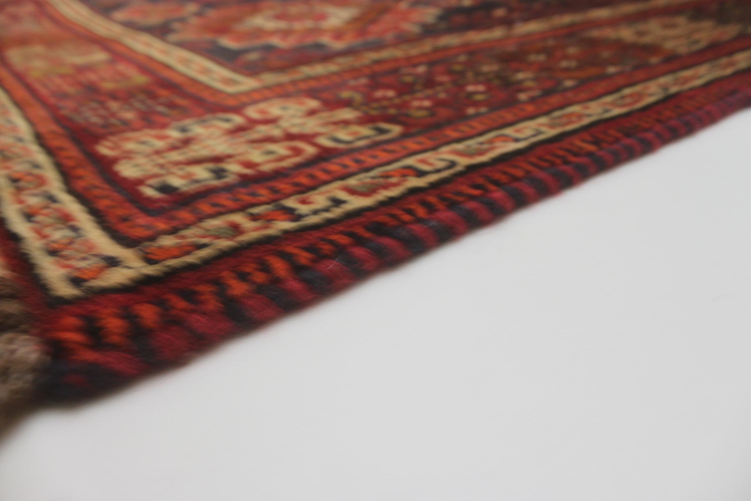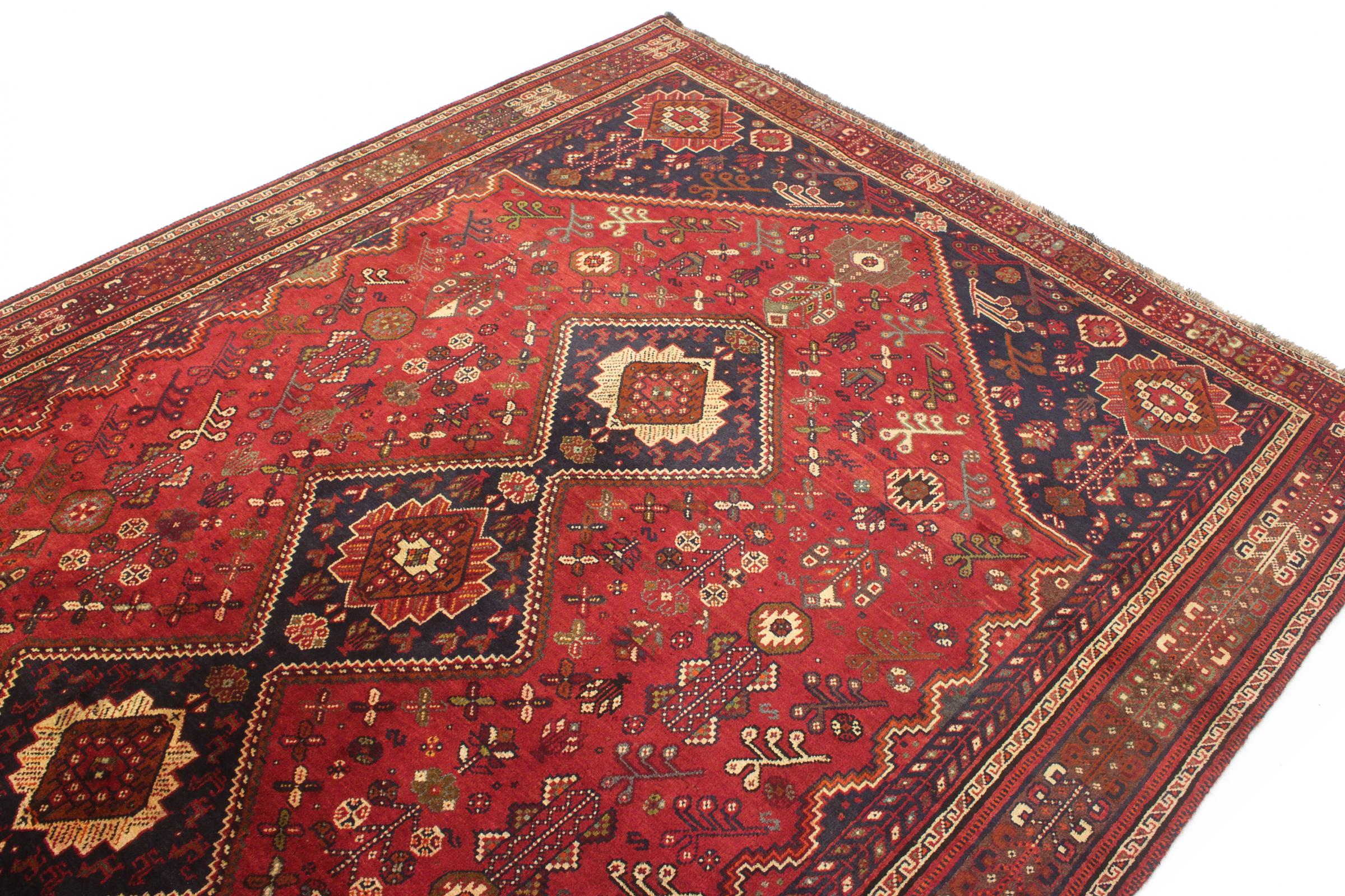 Este ghashghai é um verdadeiro destaque. As suas cores e padrões reflectem a vida dos nómadas ghashghai do Irão. Estas tribos nómadas vivem principalmente nos arredores da cidade de Shiraz. Deixe um pedaço da antiga cultura persa entrar nas suas próprias quatro paredes.