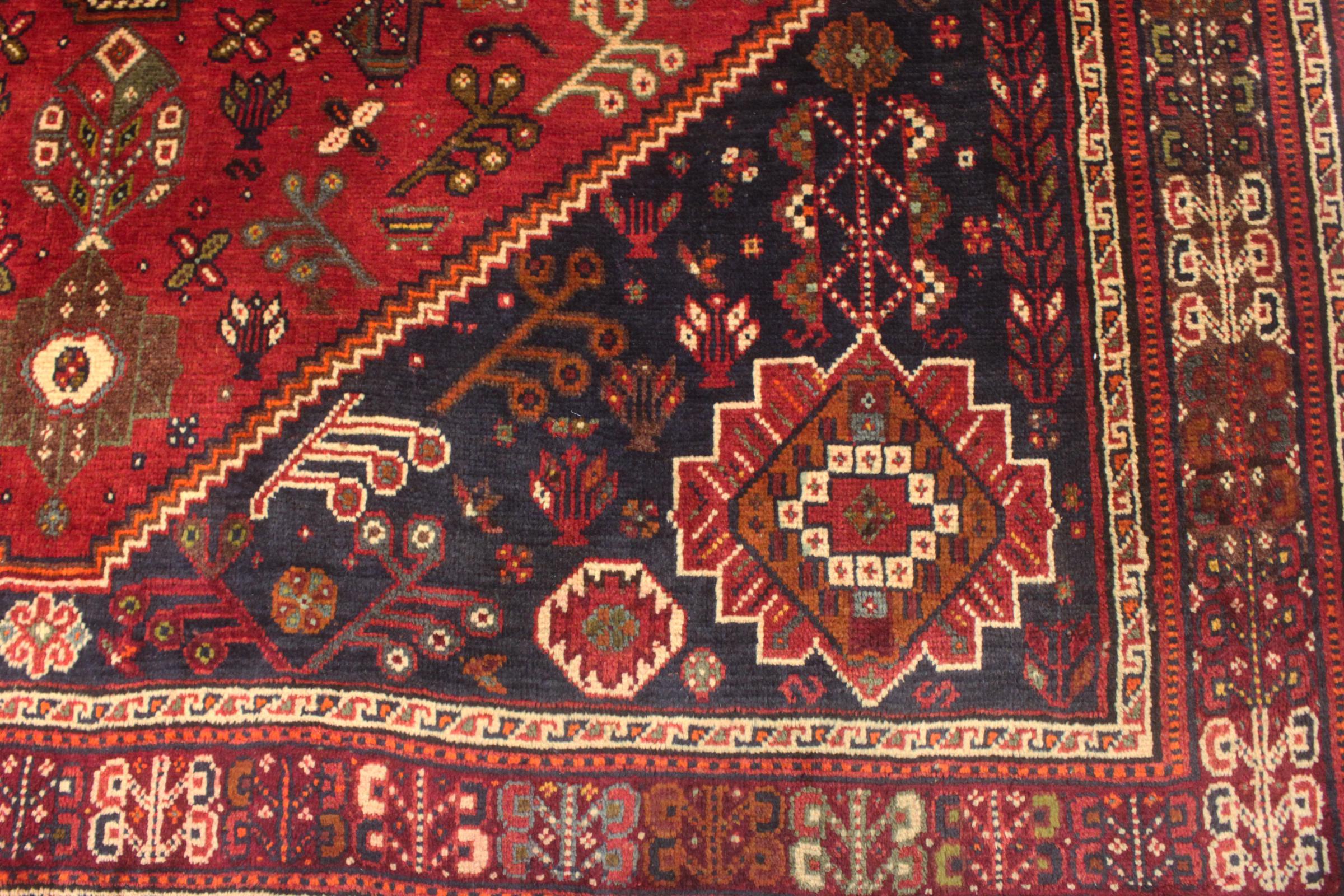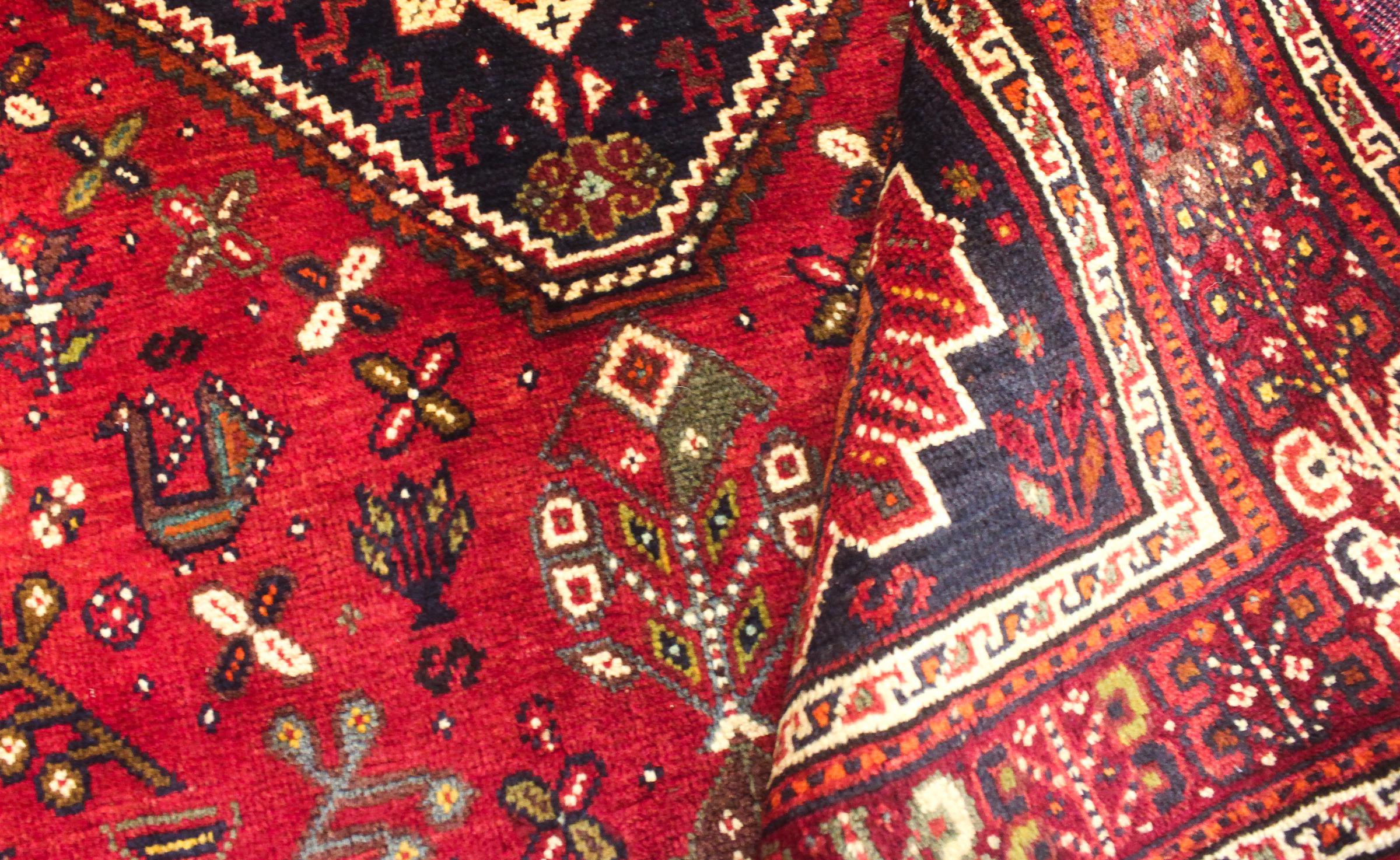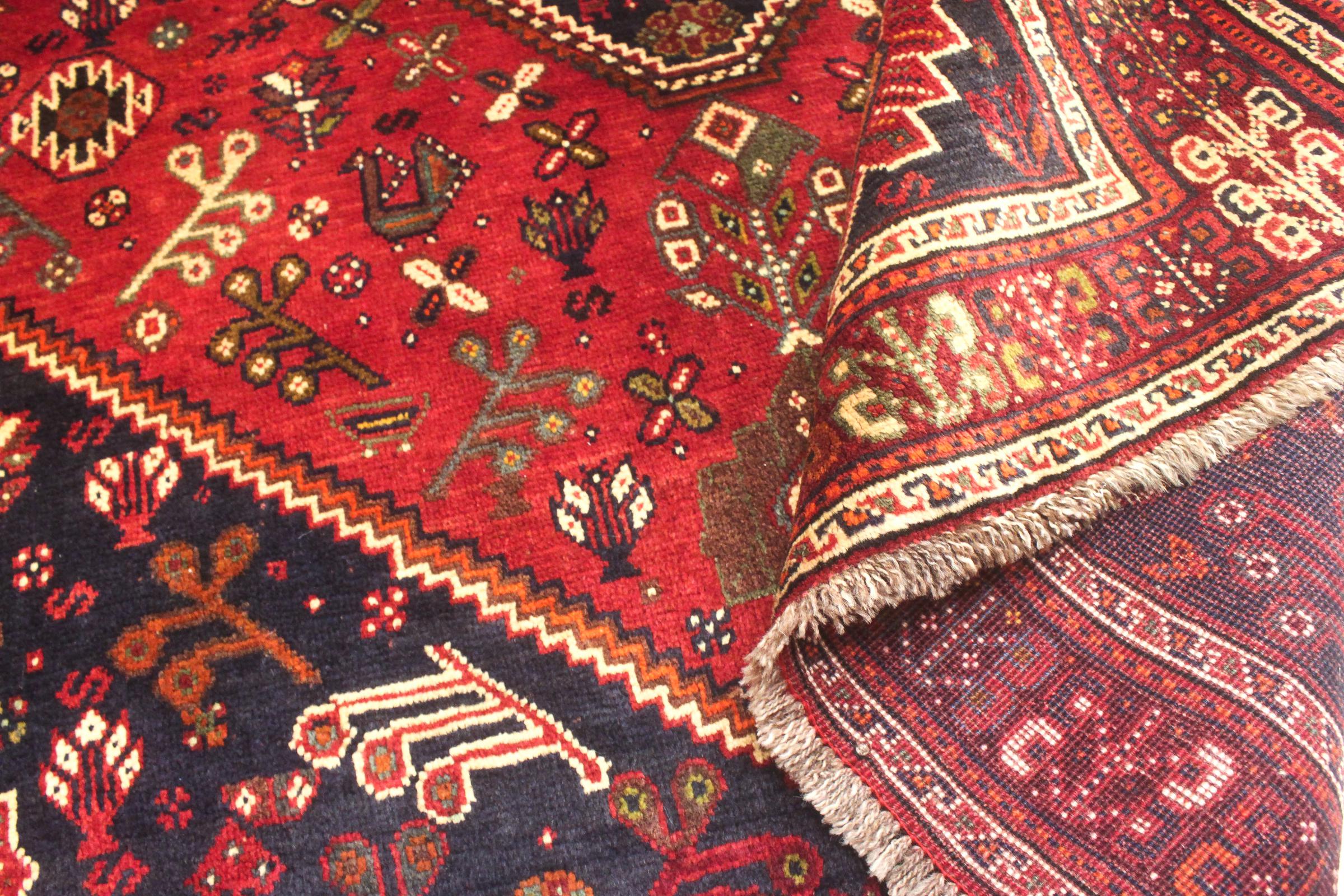 Este tapete pertence a tapetes de aldeia e nómadas do Irão, antiga Pérsia. Este tipo de tapete é atado à mão em cidades mais pequenas e aldeias da velha tradição. Mesmo os nómadas ainda atam tapetes persas ao ar livre. Os tapetes são atados sem padrão e completamente a partir da cabeça. Caracterizam-se por ornamentos clássicos, dispostos em padrões rectos e geométricos. Graças à sua origem cultural-tradicional, estes tapetes têm um carácter único que encarna a antiga Pérsia.
