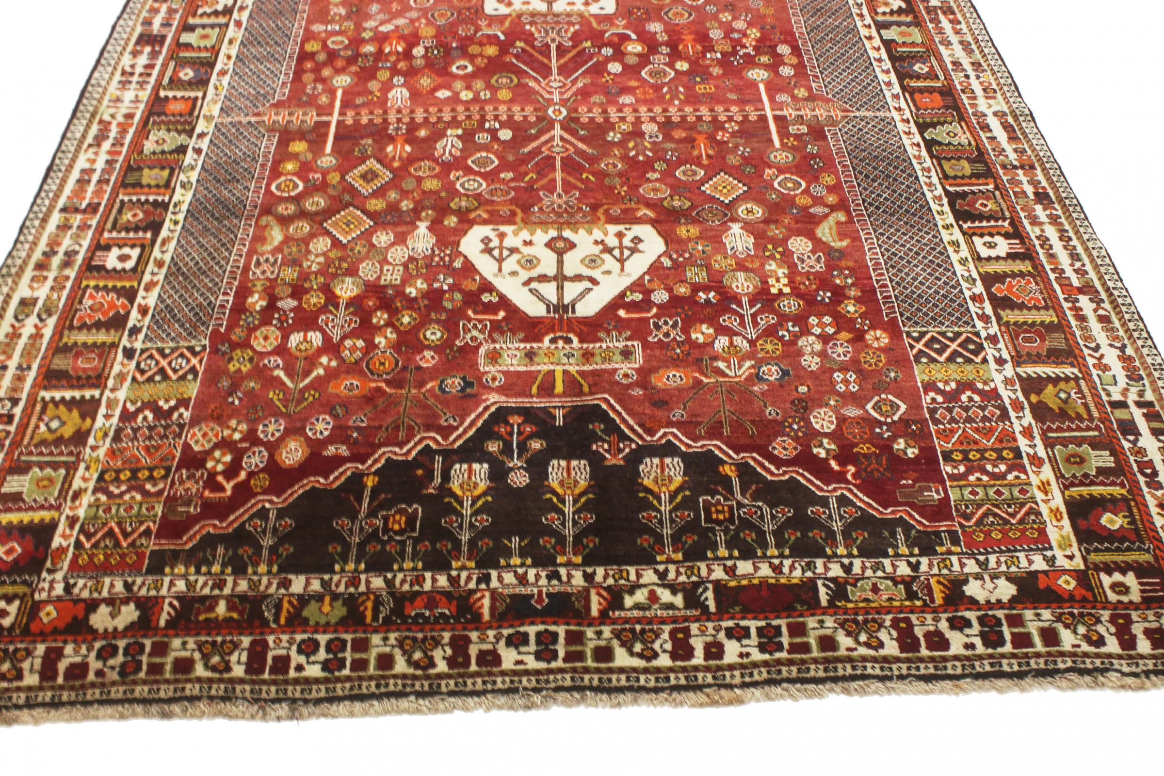 Este ghashghai é um verdadeiro destaque. As suas cores e padrões reflectem a vida dos nómadas ghashghai do Irão. Estas tribos nómadas vivem principalmente nos arredores da cidade de Shiraz. Deixe um pedaço da antiga cultura persa entrar nas suas próprias quatro paredes.