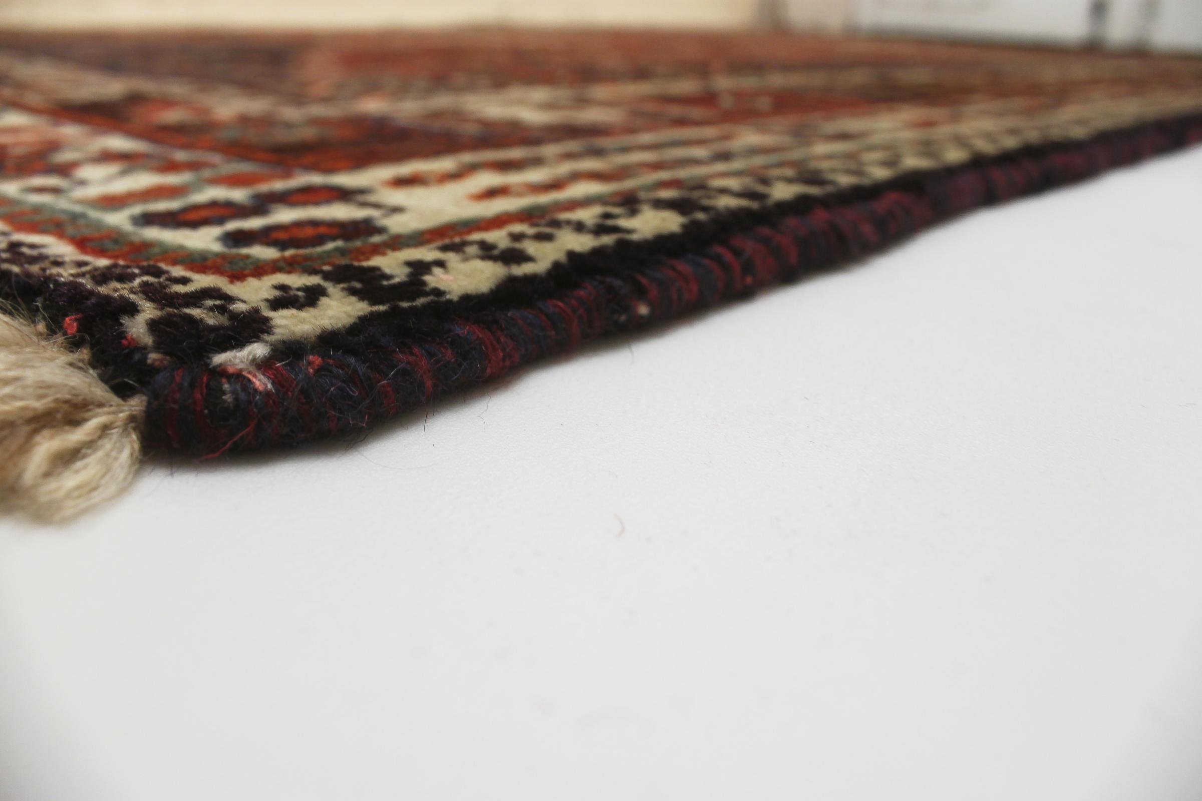 Este tapete pertence a tapetes de aldeia e nómadas do Irão, antiga Pérsia. Este tipo de tapete é atado à mão em cidades mais pequenas e aldeias da velha tradição. Mesmo os nómadas ainda atam tapetes persas ao ar livre. Os tapetes são atados sem padrão e completamente a partir da cabeça. Caracterizam-se por ornamentos clássicos, dispostos em padrões rectos e geométricos. Graças à sua origem cultural-tradicional, estes tapetes têm um carácter único que encarna a antiga Pérsia.
