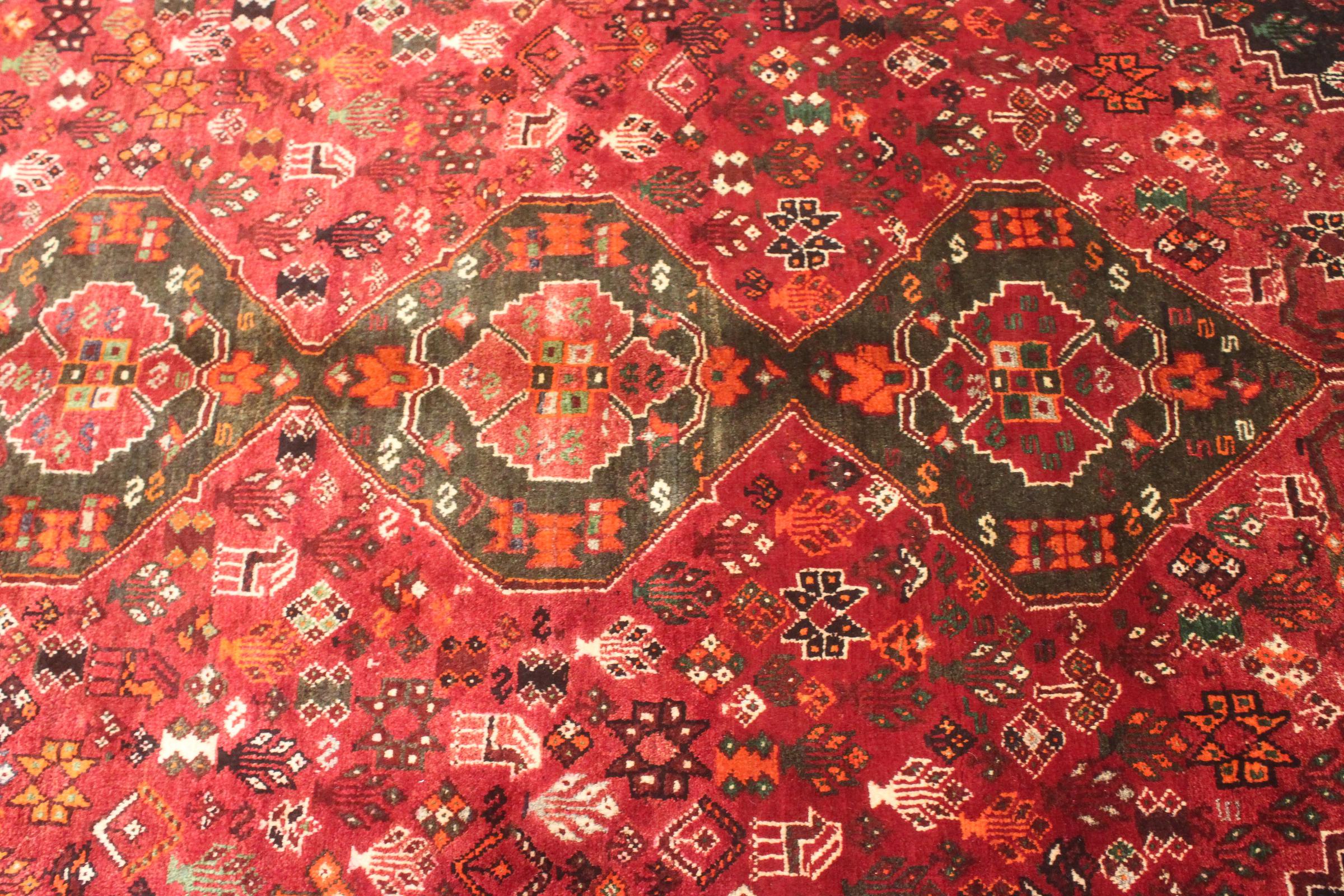 Nº do Tapete: 74953009836206 Tamanho: 286x191 cm Espessura: aproximadamente 12 mm Nós: 72 000 - 90 000 / m² Processamento: Atado à mão Veludo: Lã tecida à mão Urdidura: Lã Natural Origem: Pérsia / Iran Idade: Novo Peso: aproximadamente 19 kg Também conhecido como Qashqai, Gaschgai, Gashghai, Kashgai Em armazém: Único - Apenas 1 em stock