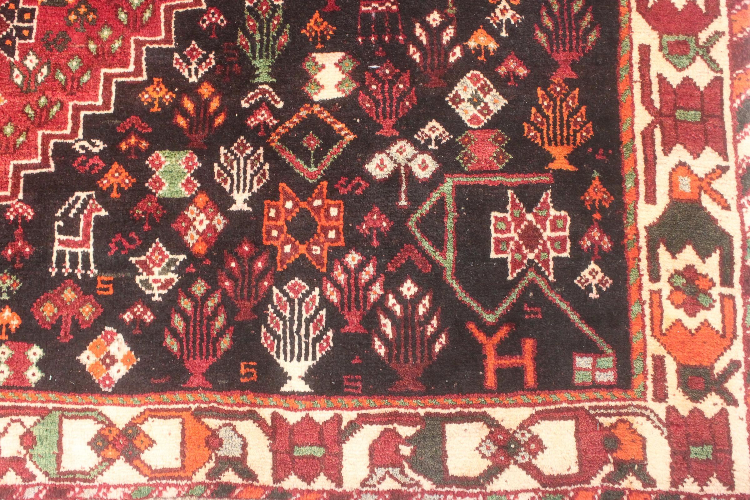 Este tapete pertence a tapetes de aldeia e nómadas do Irão, antiga Pérsia. Este tipo de tapete é atado à mão em cidades mais pequenas e aldeias da velha tradição. Mesmo os nómadas ainda atam tapetes persas ao ar livre. Os tapetes são atados sem padrão e completamente a partir da cabeça. Caracterizam-se por ornamentos clássicos, dispostos em padrões rectos e geométricos. Graças à sua origem cultural-tradicional, estes tapetes têm um carácter único que encarna a antiga Pérsia.