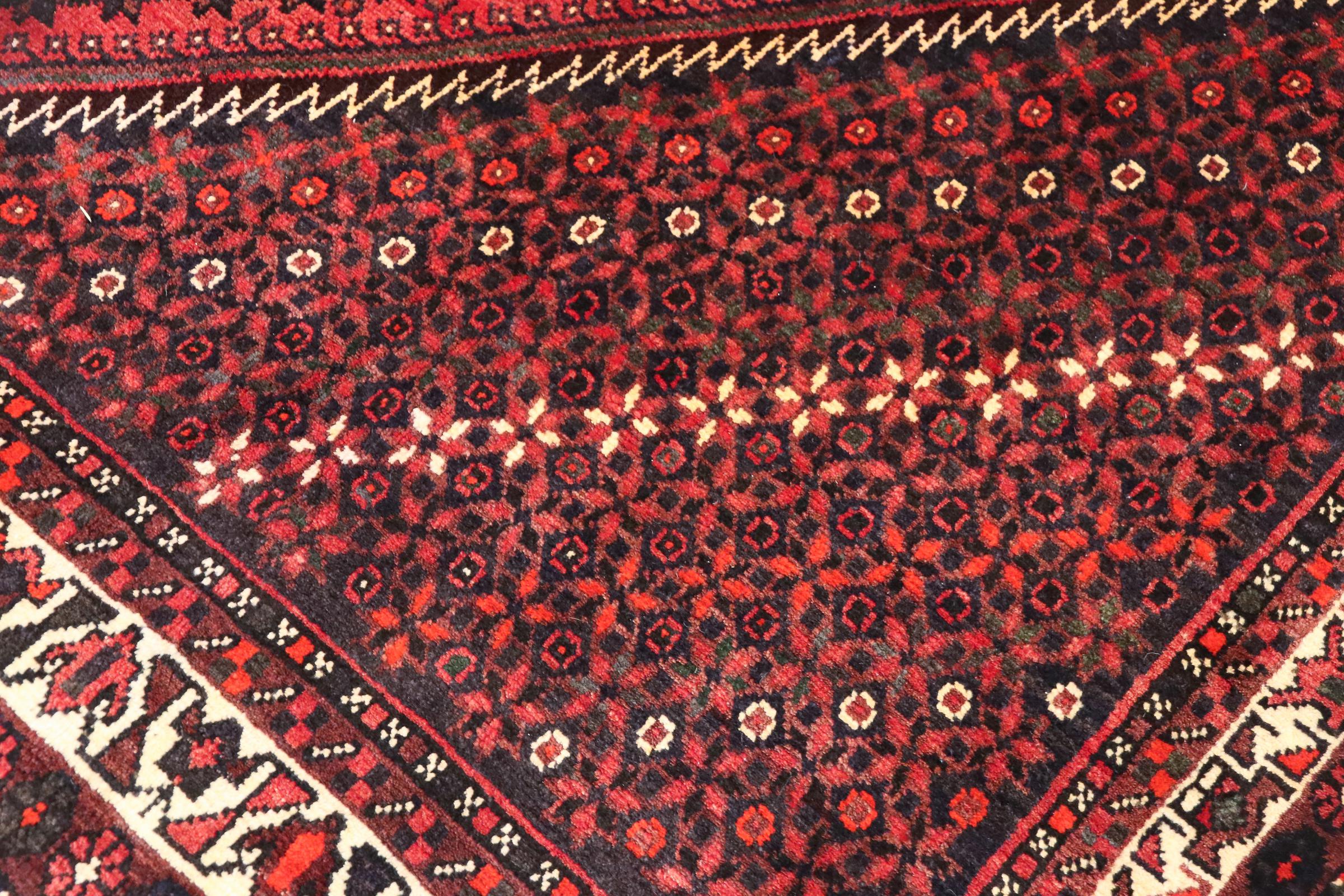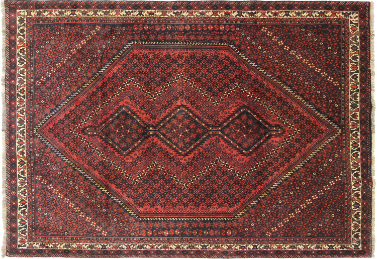 Este tapete pertence a tapetes de aldeia e nómadas do Irão, antiga Pérsia. Este tipo de tapete é atado à mão em cidades mais pequenas e aldeias da velha tradição. Mesmo os nómadas ainda atam tapetes persas ao ar livre. Os tapetes são atados sem padrão e completamente a partir da cabeça. Caracterizam-se por ornamentos clássicos, dispostos em padrões rectos e geométricos. Graças à sua origem cultural-tradicional, estes tapetes têm um carácter único que encarna a antiga Pérsia.