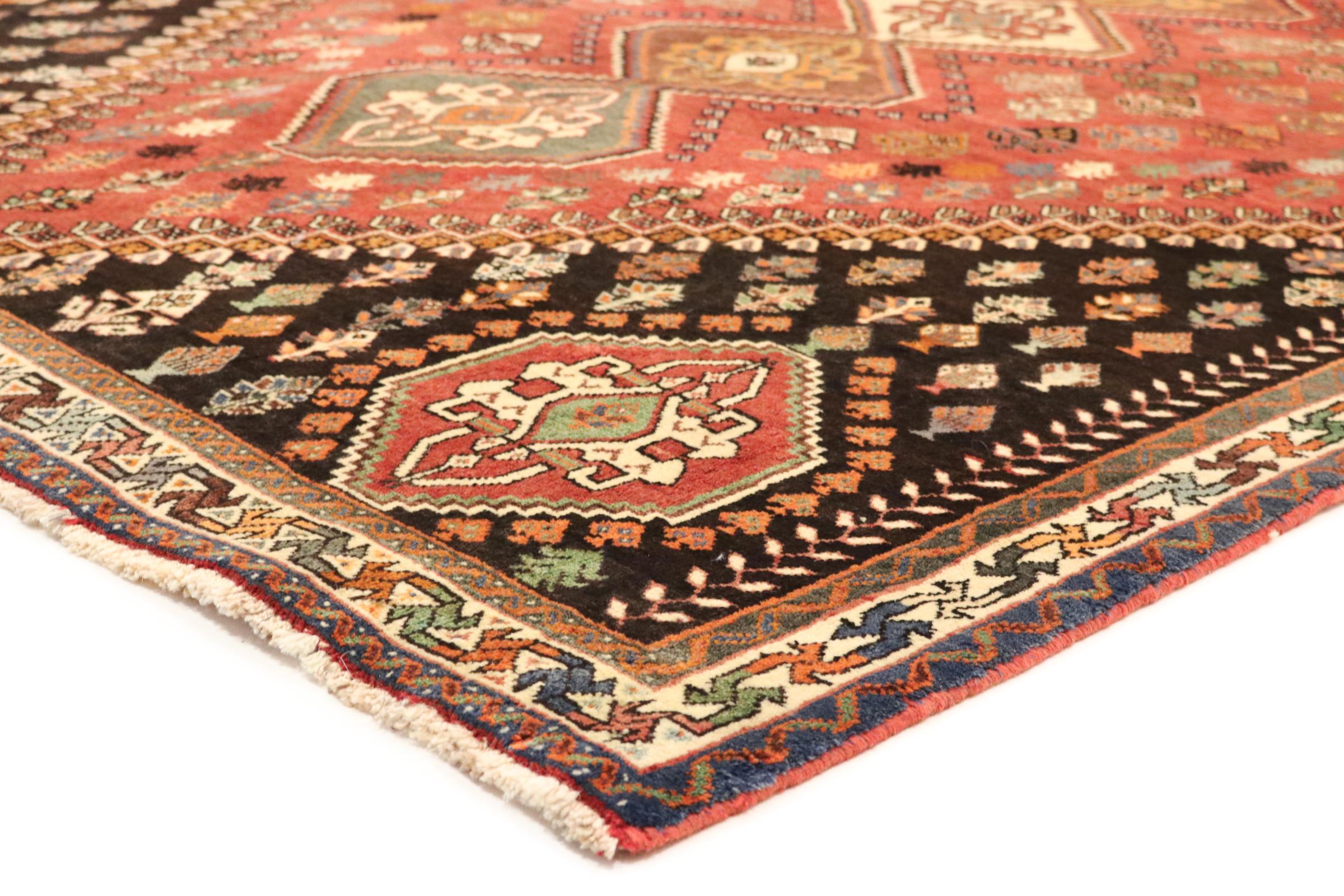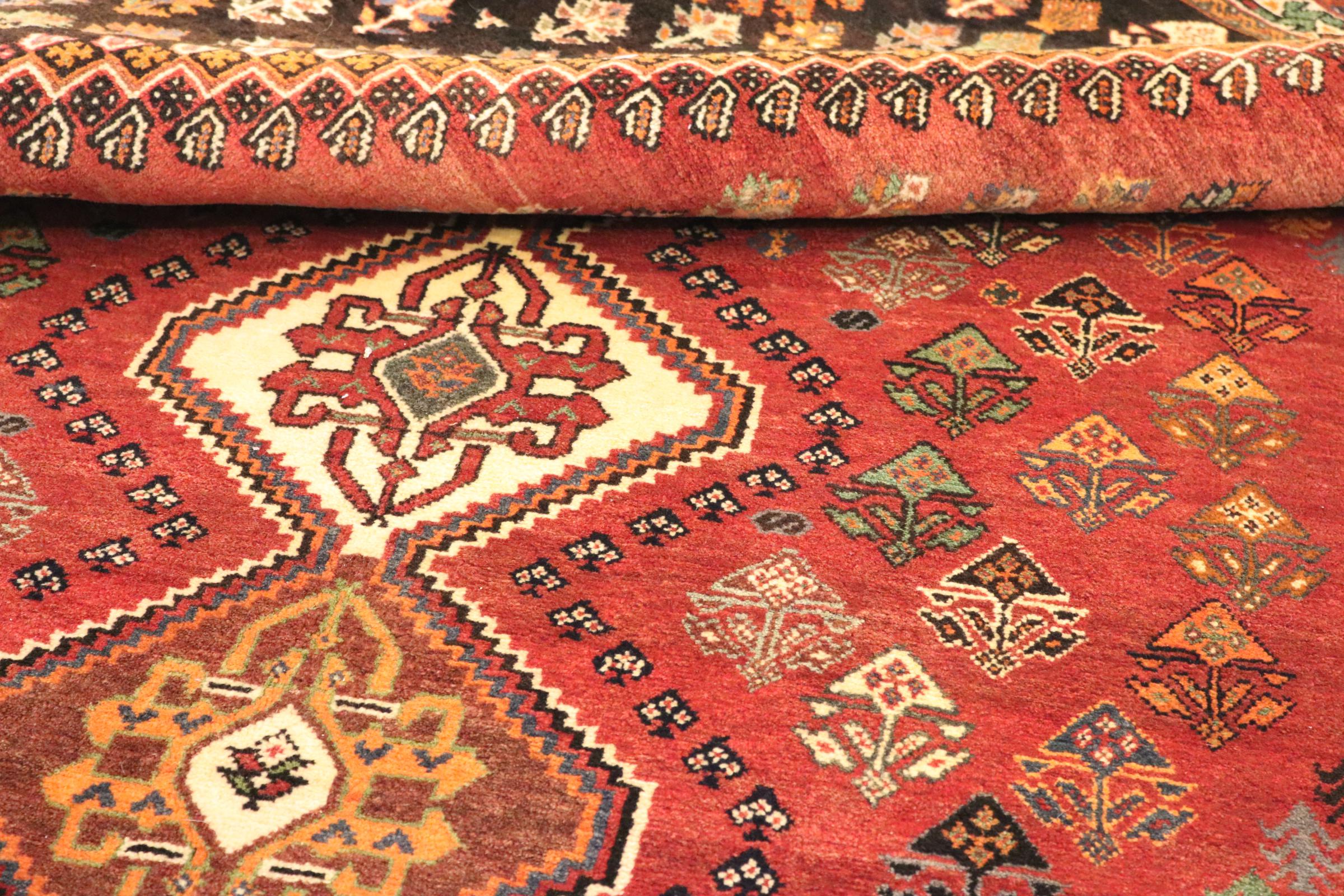 Este ghashghai é um verdadeiro destaque. As suas cores e padrões reflectem a vida dos nómadas ghashghai do Irão. Estas tribos nómadas vivem principalmente nos arredores da cidade de Shiraz. Deixe um pedaço da antiga cultura persa entrar nas suas próprias quatro paredes.