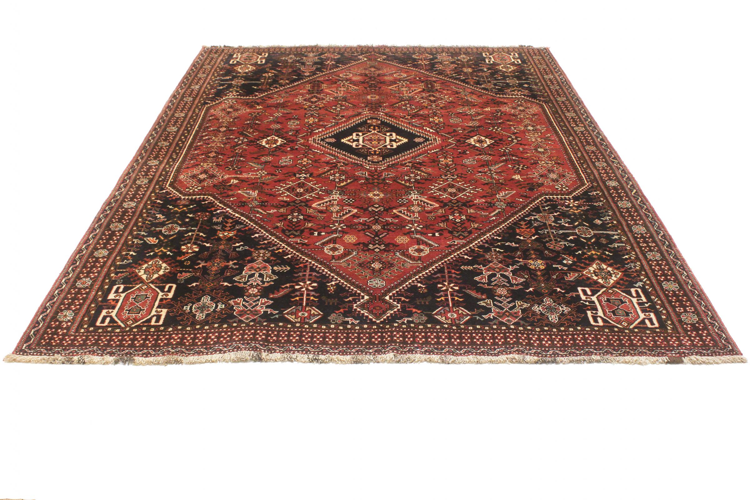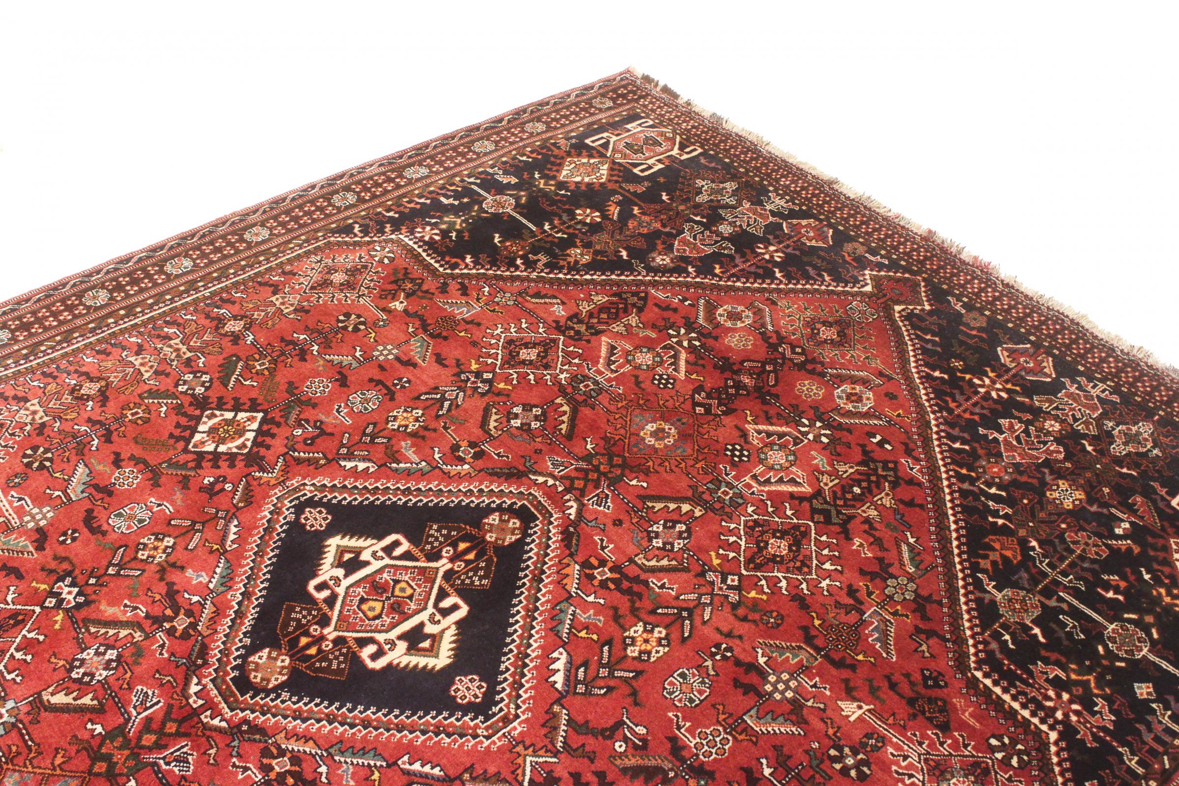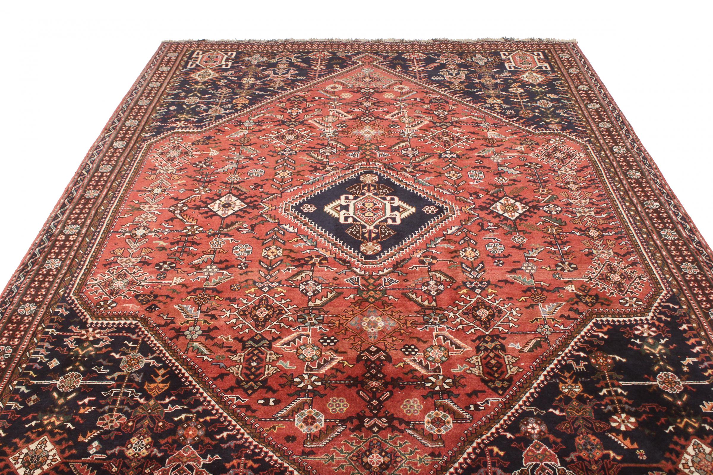 Este ghashghai é um verdadeiro destaque. As suas cores e padrões reflectem a vida dos nómadas ghashghai do Irão. Estas tribos nómadas vivem principalmente nos arredores da cidade de Shiraz. Deixe um pedaço da antiga cultura persa entrar nas suas próprias quatro paredes.