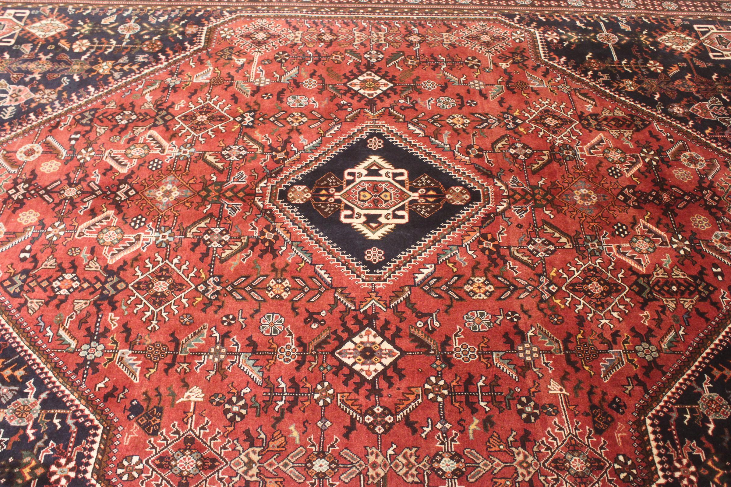 Nº do Tapete: 74919006064515 Tamanho: 296x213 cm Espessura: aproximadamente 12 mm Nós: 72 000 - 90 000 / m² Processamento: Atado à mão Veludo: Lã tecida à mão Urdidura: Lã Natural Origem: Pérsia / Iran Idade: Novo Peso: aproximadamente 22 kg Também conhecido como Qashqai, Gaschgai, Gashghai, Kashgai Em armazém: Único - Apenas 1 em stock