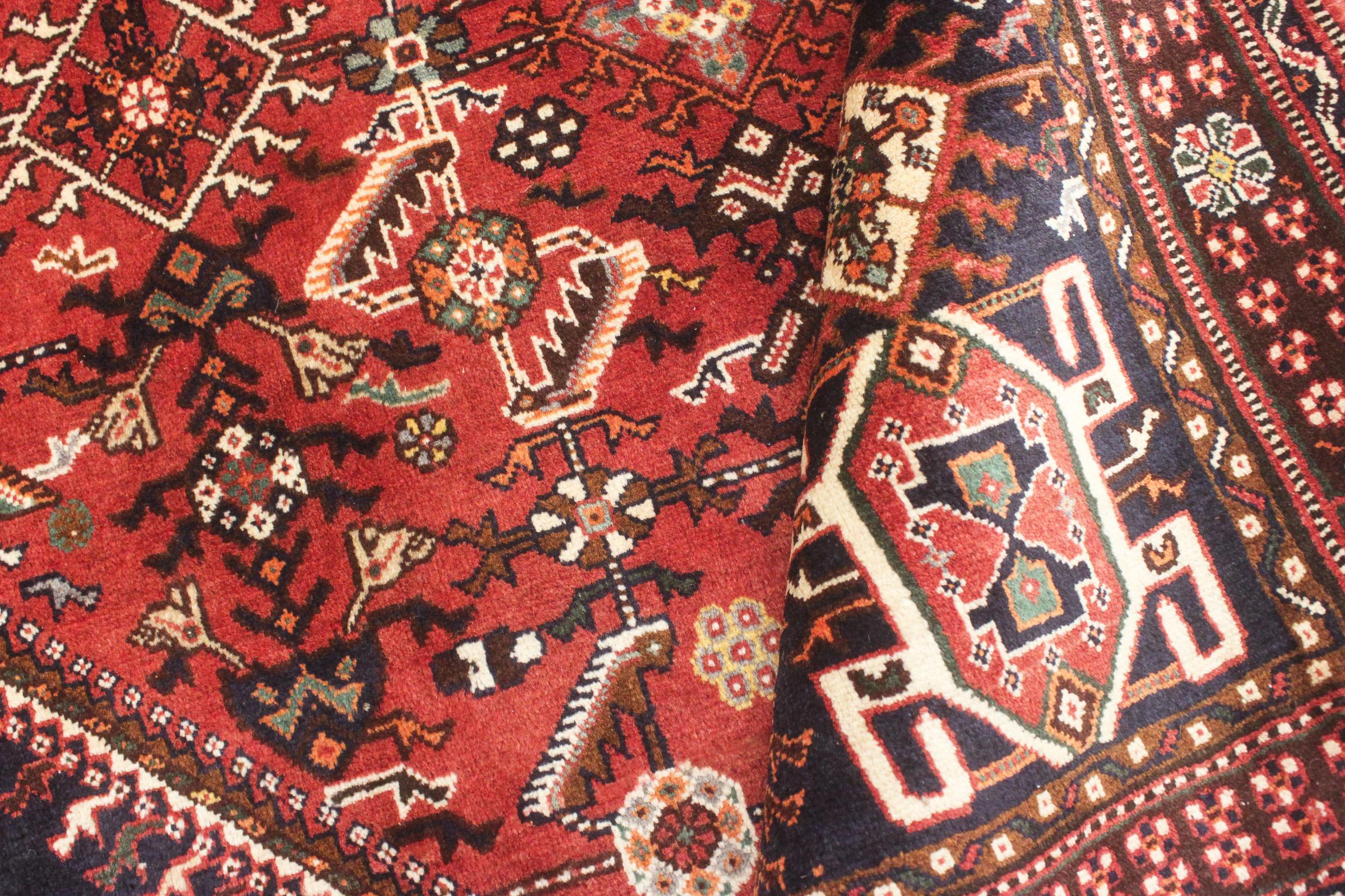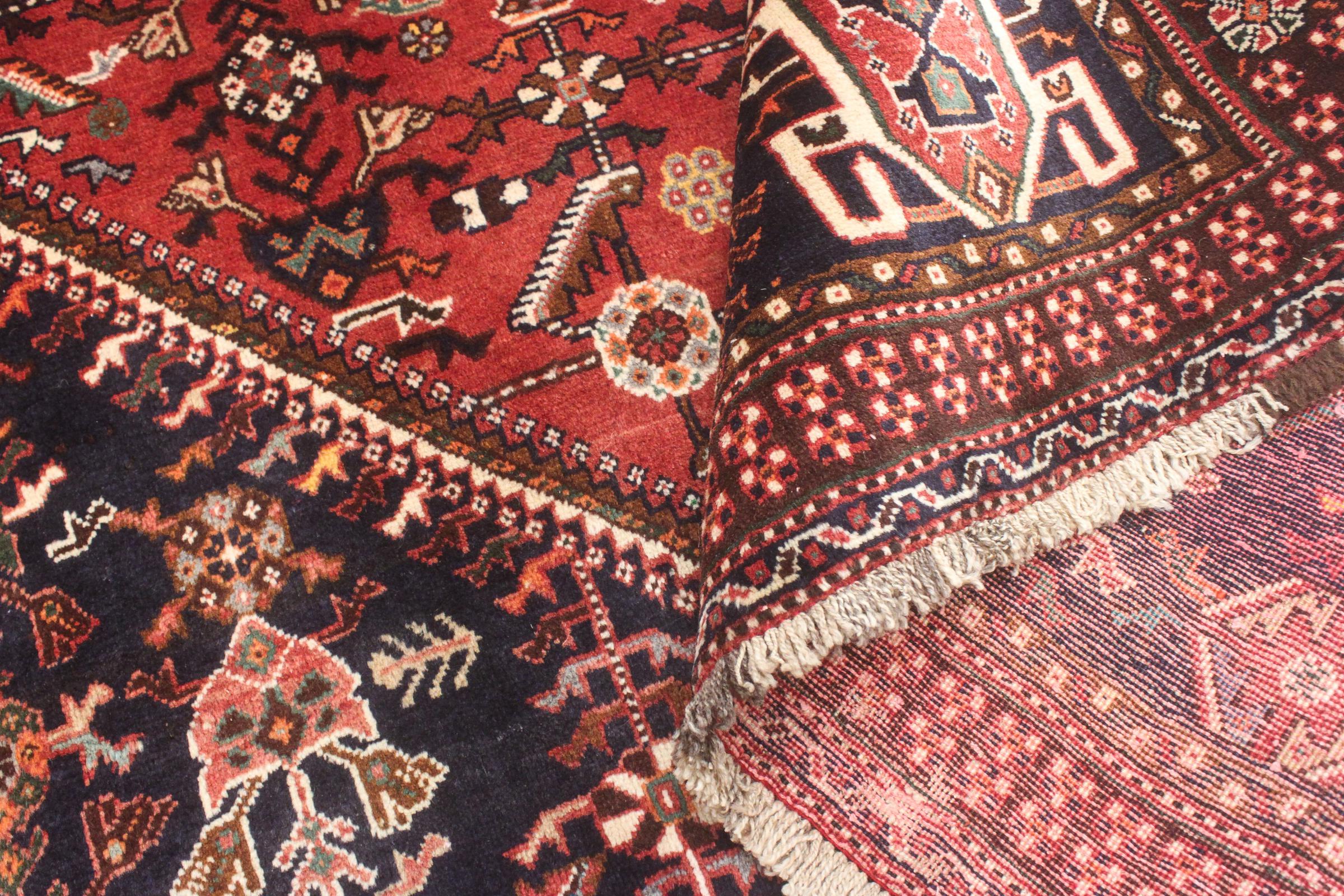 Este tapete pertence a tapetes de aldeia e nómadas do Irão, antiga Pérsia. Este tipo de tapete é atado à mão em cidades mais pequenas e aldeias da velha tradição. Mesmo os nómadas ainda atam tapetes persas ao ar livre. Os tapetes são atados sem padrão e completamente a partir da cabeça. Caracterizam-se por ornamentos clássicos, dispostos em padrões rectos e geométricos. Graças à sua origem cultural-tradicional, estes tapetes têm um carácter único que encarna a antiga Pérsia.