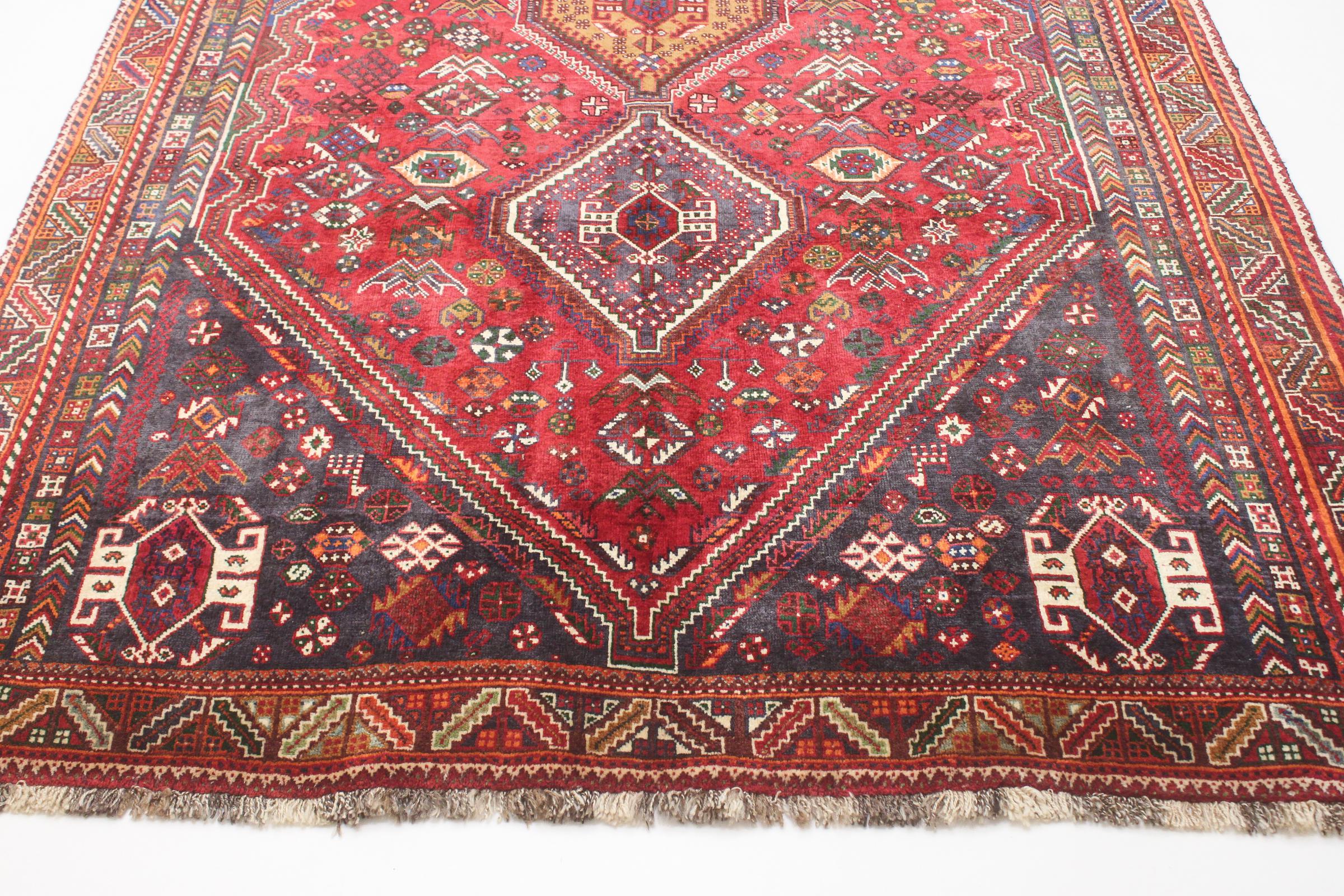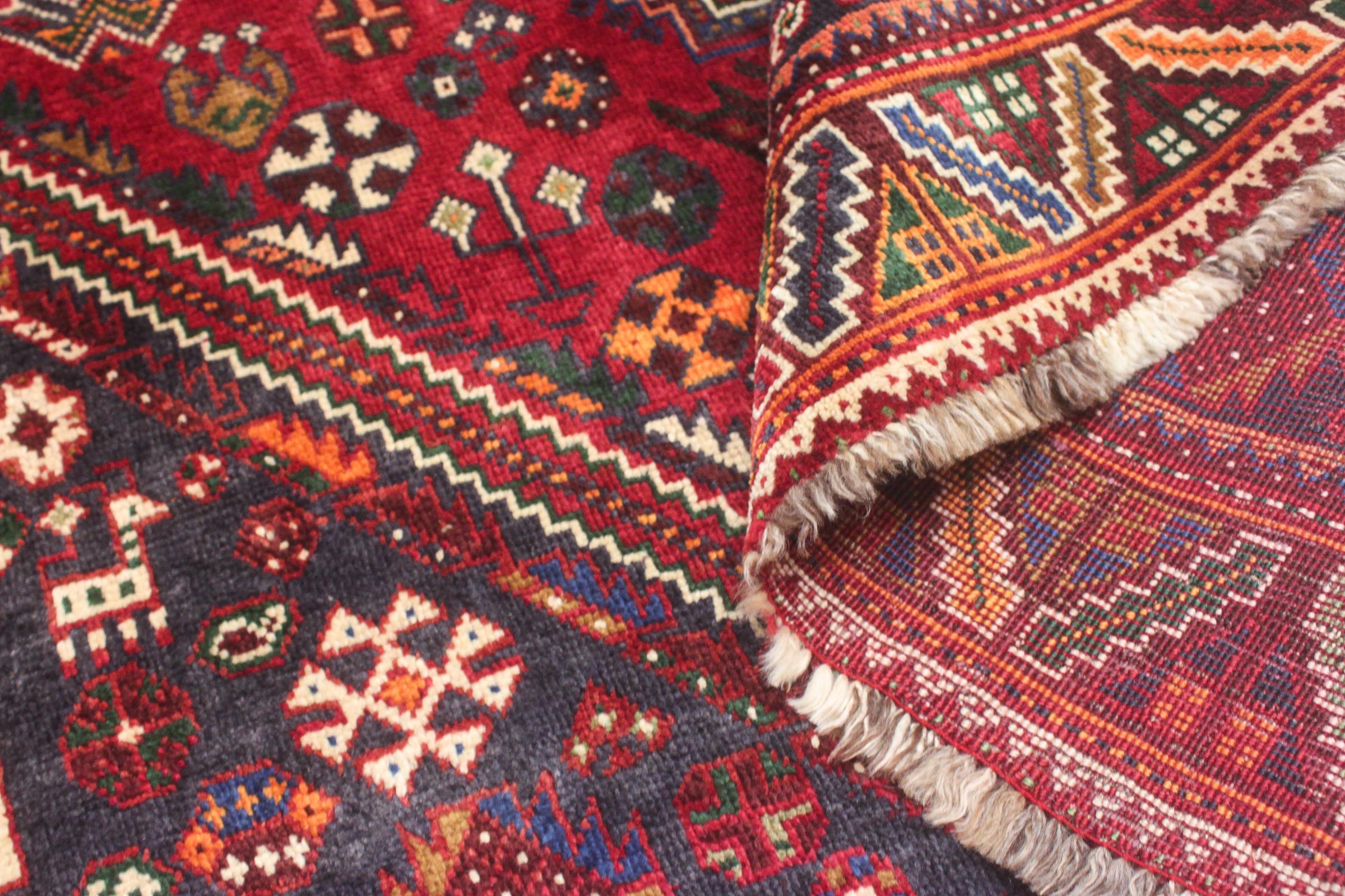 Este ghashghai é um verdadeiro destaque. As suas cores e padrões reflectem a vida dos nómadas ghashghai do Irão. Estas tribos nómadas vivem principalmente nos arredores da cidade de Shiraz. Deixe um pedaço da antiga cultura persa entrar nas suas próprias quatro paredes.