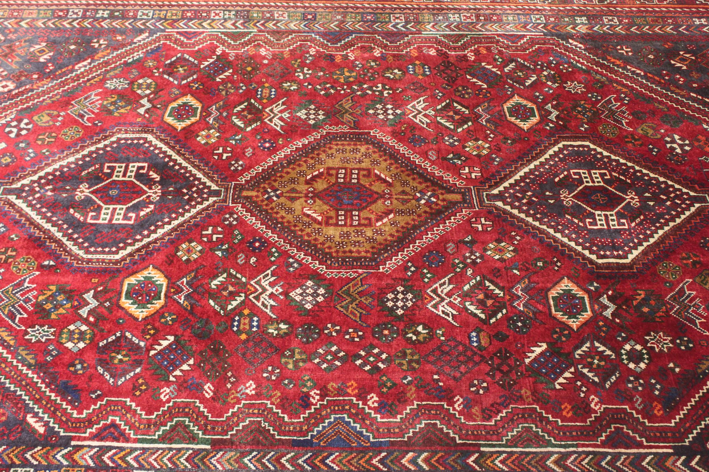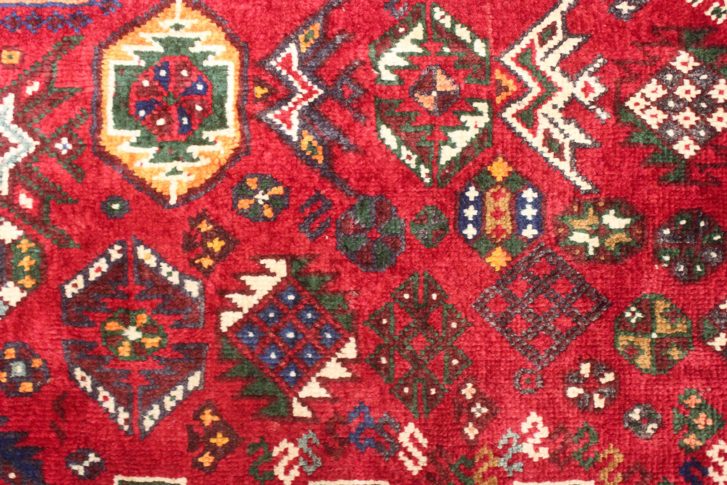 Este tapete pertence a tapetes de aldeia e nómadas do Irão, antiga Pérsia. Este tipo de tapete é atado à mão em cidades mais pequenas e aldeias da velha tradição. Mesmo os nómadas ainda atam tapetes persas ao ar livre. Os tapetes são atados sem padrão e completamente a partir da cabeça. Caracterizam-se por ornamentos clássicos, dispostos em padrões rectos e geométricos. Graças à sua origem cultural-tradicional, estes tapetes têm um carácter único que encarna a antiga Pérsia.