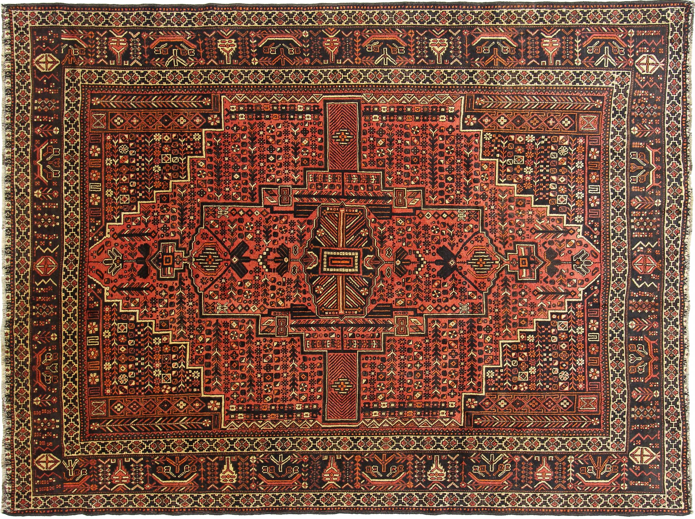 Este tapete pertence a tapetes de aldeia e nómadas do Irão, antiga Pérsia. Este tipo de tapete é atado à mão em cidades mais pequenas e aldeias da velha tradição. Mesmo os nómadas ainda atam tapetes persas ao ar livre. Os tapetes são atados sem padrão e completamente a partir da cabeça. Caracterizam-se por ornamentos clássicos, dispostos em padrões rectos e geométricos. Graças à sua origem cultural-tradicional, estes tapetes têm um carácter único que encarna a antiga Pérsia.