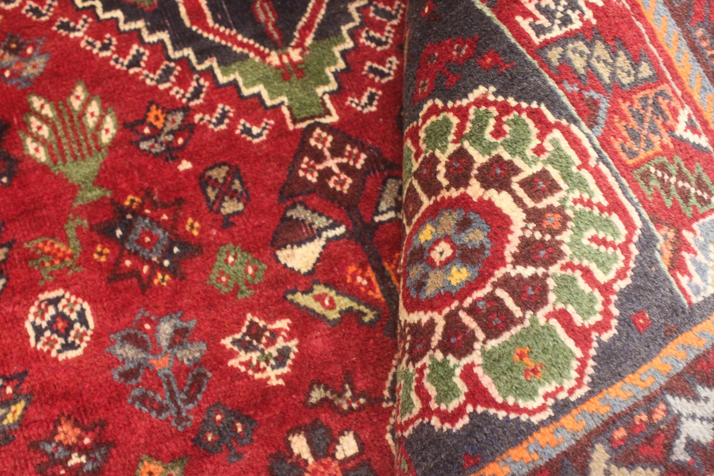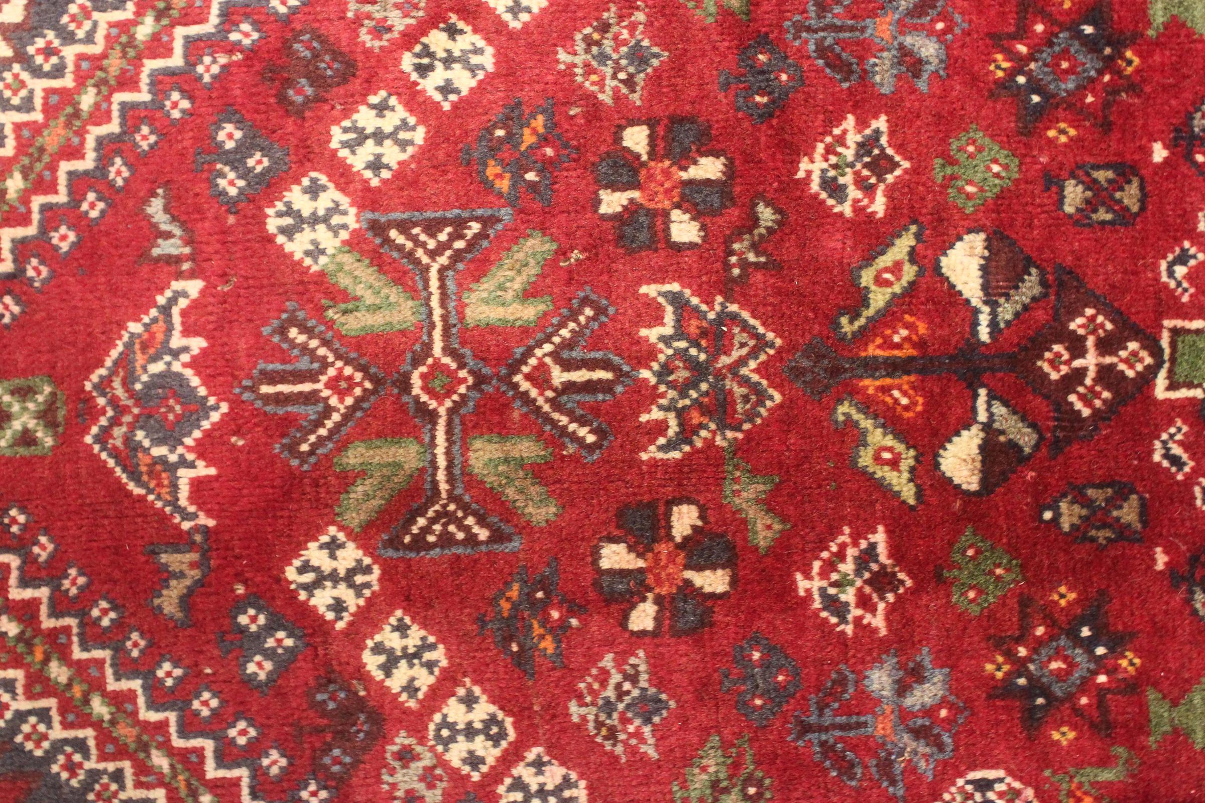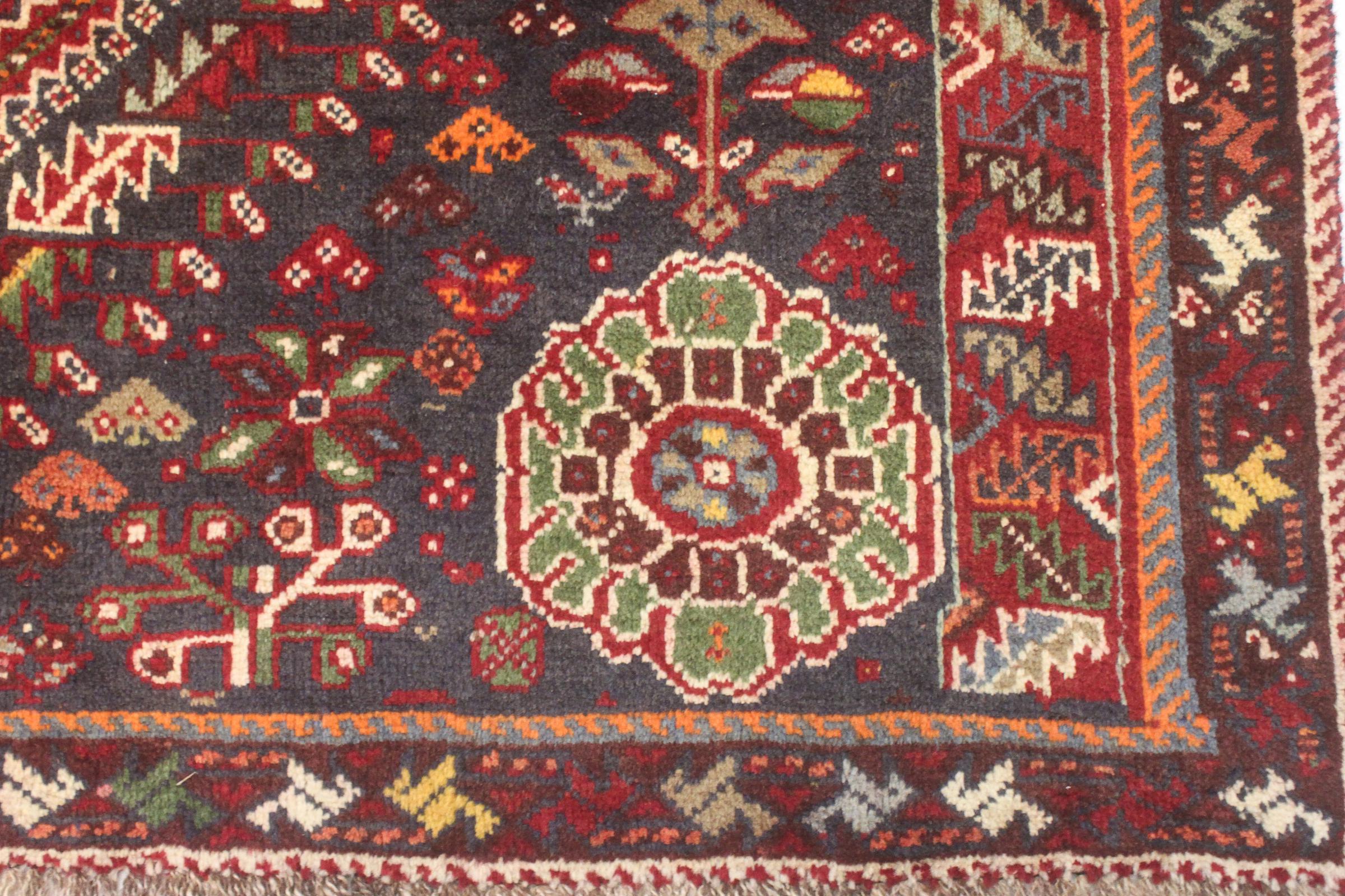 Nº do Tapete: 74955008569411 Tamanho: 305x189 cm Espessura: aproximadamente 12 mm Nós: 72 000 - 90 000 / m² Processamento: Atado à mão Veludo: Lã tecida à mão Urdidura: Lã Natural Estado / Conservação: O tapete apresenta leve desgaste em alguns pontos específicos Origem: Pérsia / Iran Idade: aproximadamente 20-30 anos Peso: aproximadamente 17 kg Também conhecido como Qashqai, Gaschgai, Gashghai, Kashgai Em armazém: Único - Apenas 1 em stock