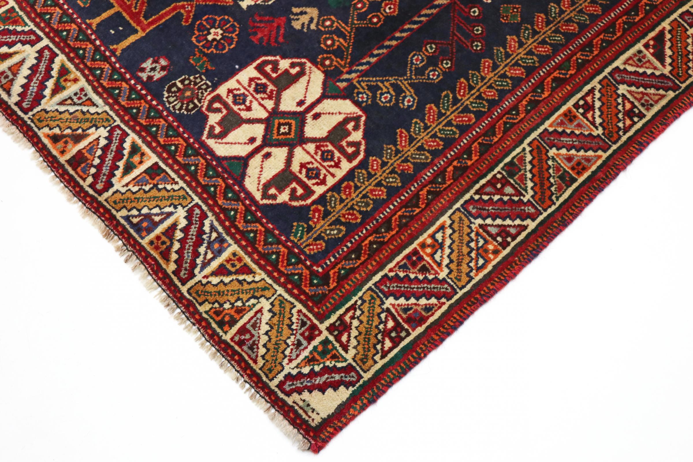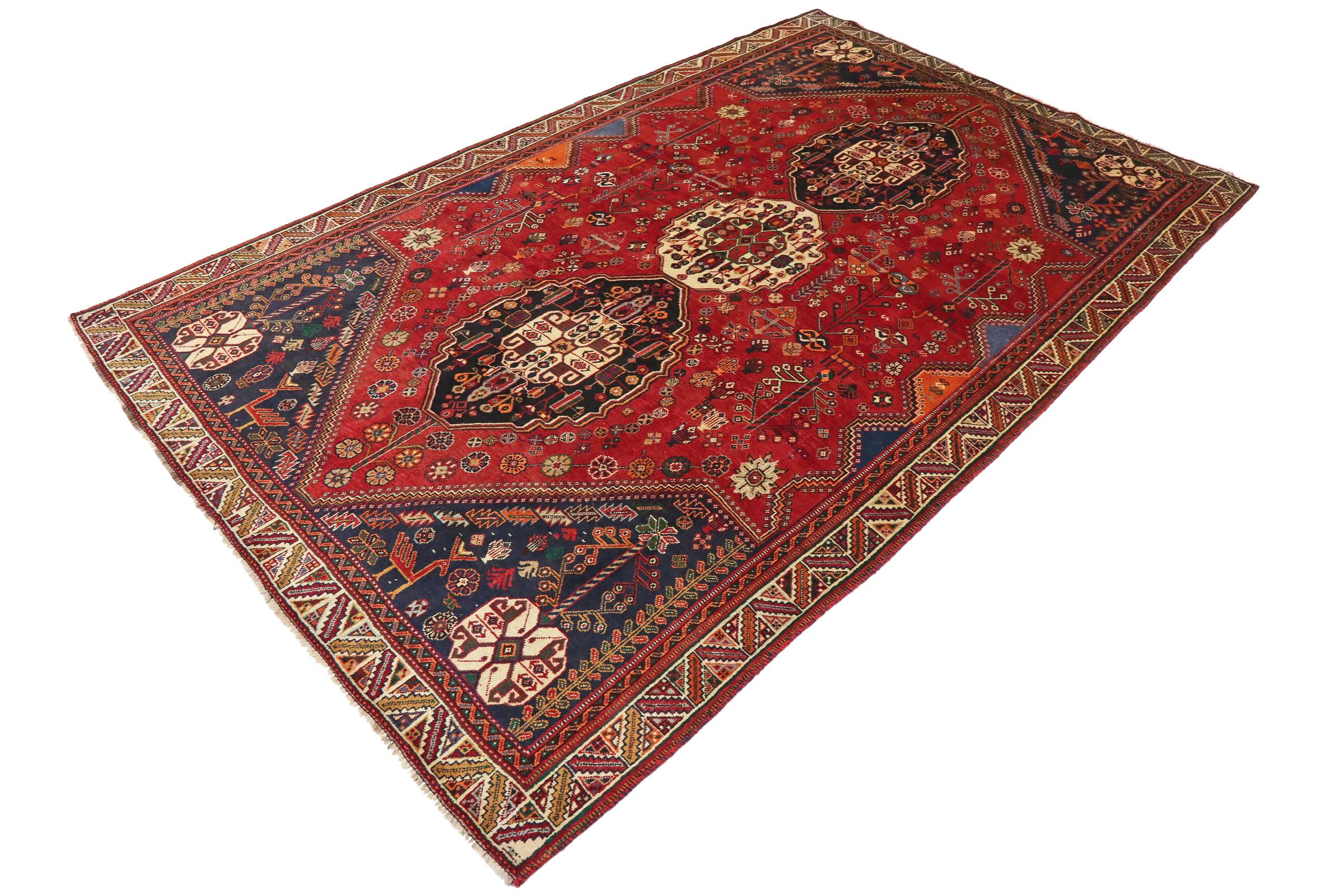 Este ghashghai é um verdadeiro destaque. As suas cores e padrões reflectem a vida dos nómadas ghashghai do Irão. Estas tribos nómadas vivem principalmente nos arredores da cidade de Shiraz. Deixe um pedaço da antiga cultura persa entrar nas suas próprias quatro paredes.
