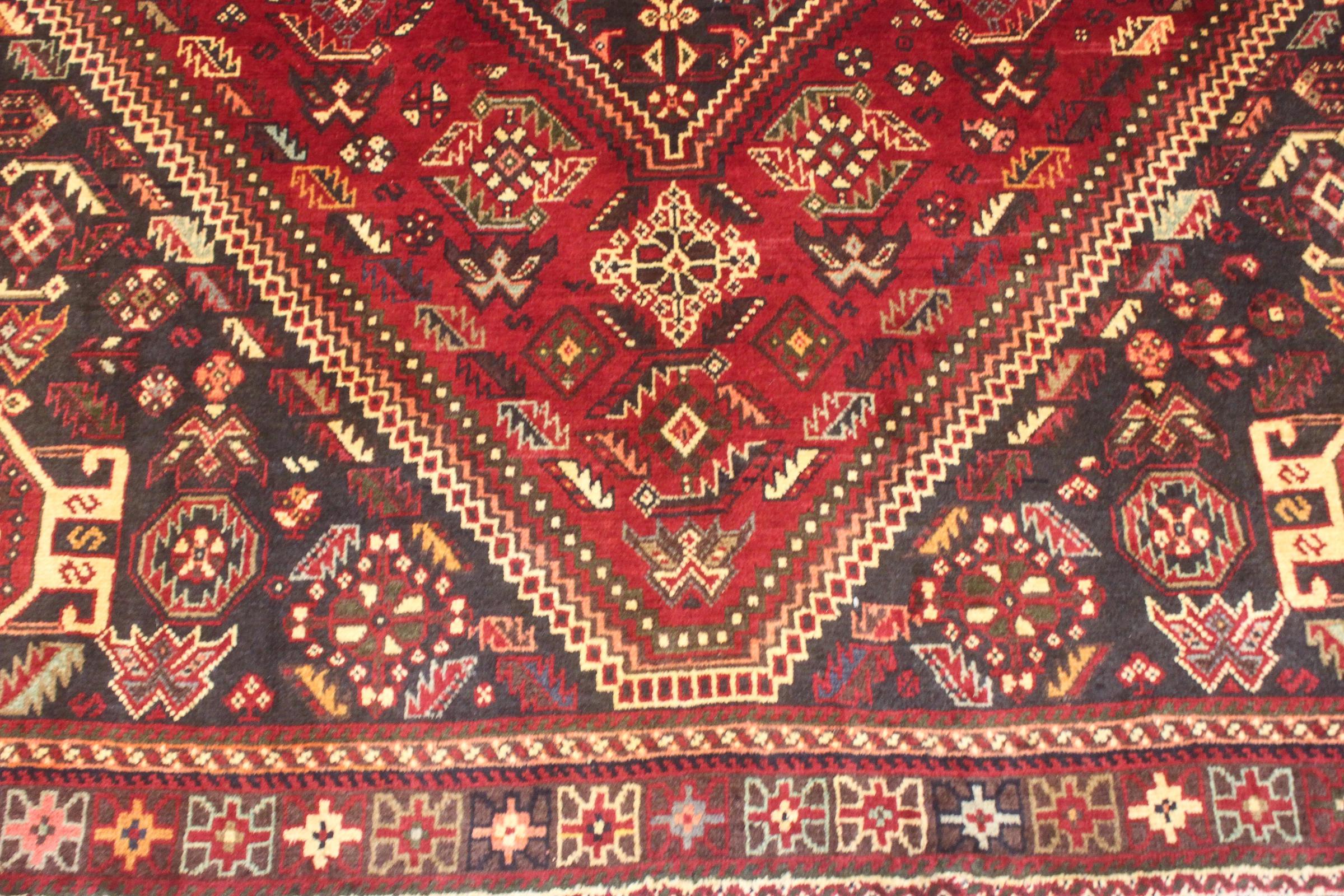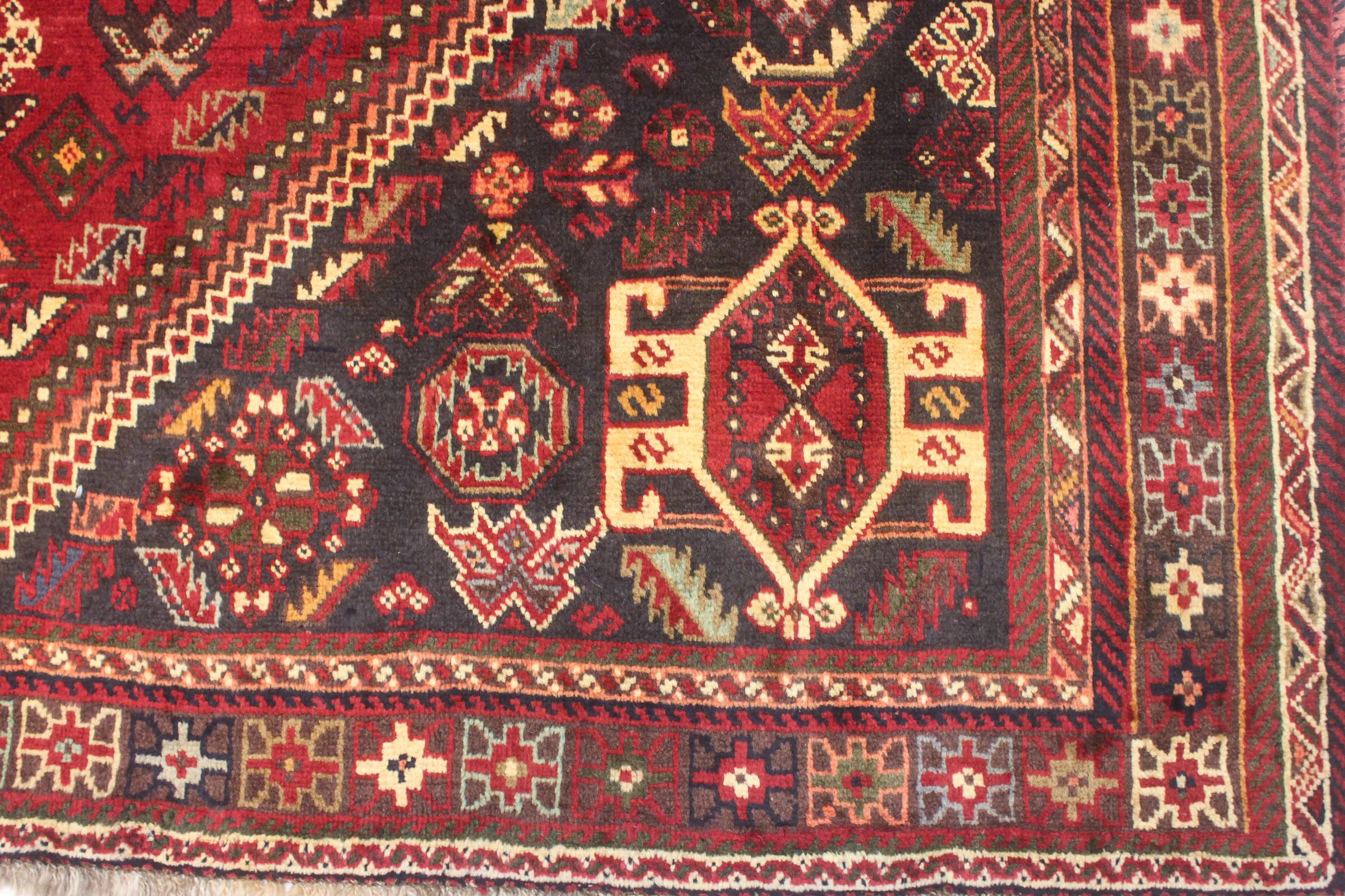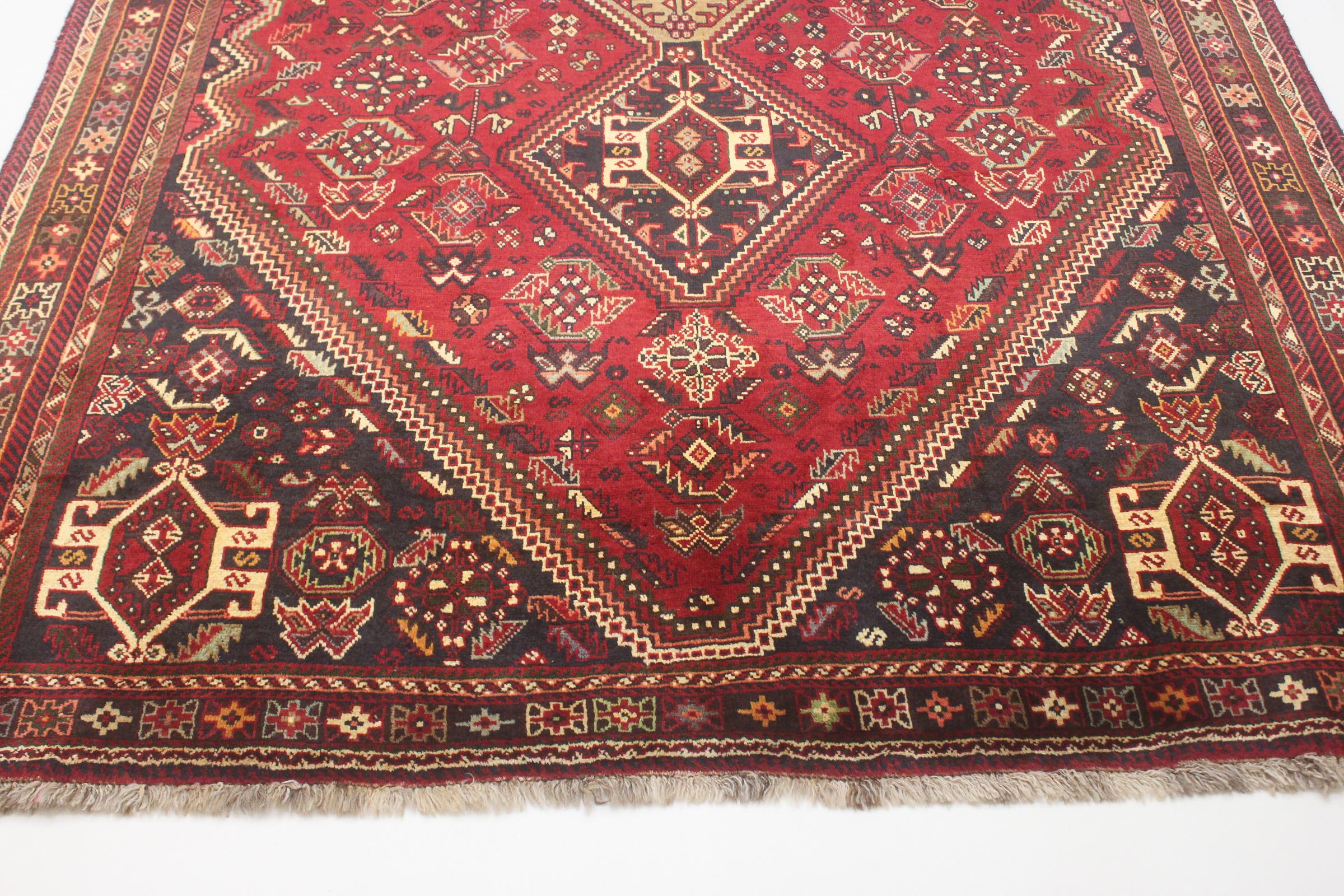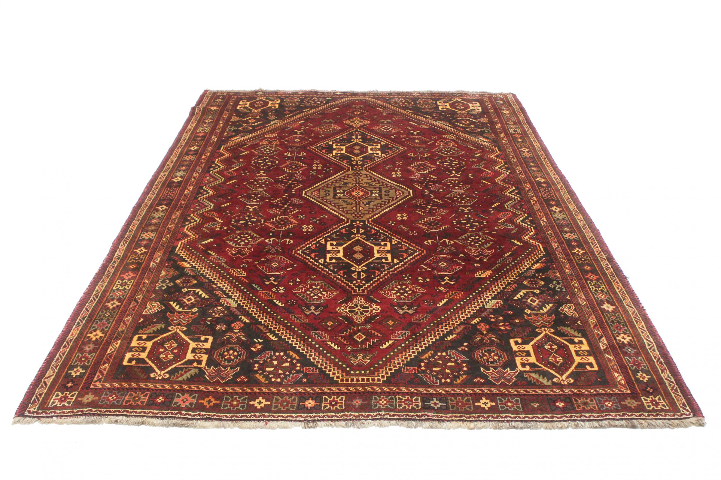 Este ghashghai é um verdadeiro destaque. As suas cores e padrões reflectem a vida dos nómadas ghashghai do Irão. Estas tribos nómadas vivem principalmente nos arredores da cidade de Shiraz. Deixe um pedaço da antiga cultura persa entrar nas suas próprias quatro paredes.