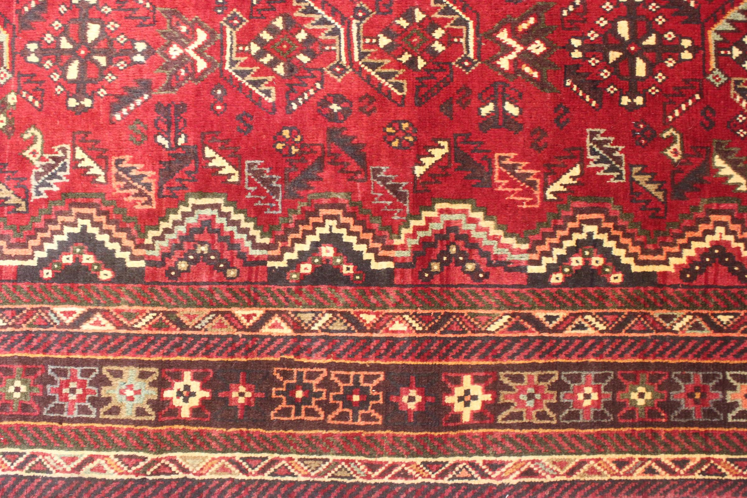 Este tapete é feito de lã de ovelha fiada à mão, da mais alta qualidade. Especialmente no Irão (antiga Pérsia), Afeganistão e Paquistão, a lã ainda é fiada à mão antes do início do nó do tapete. A lã tem provado ser um material natural e extremamente resistente ao longo dos séculos. Entre outras coisas, tem propriedades repelentes de impurezas e isolantes térmicos. Ao mesmo tempo, a lã é incomparavelmente macia e tem um brilho natural.