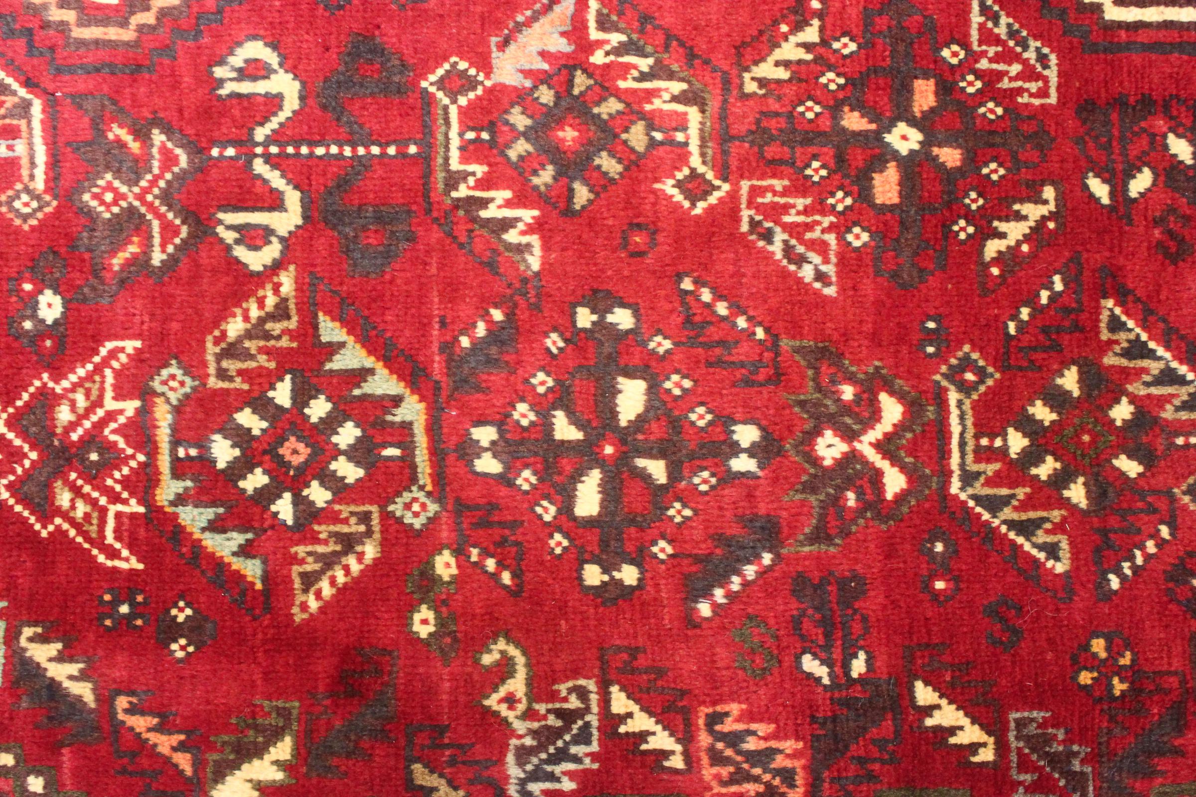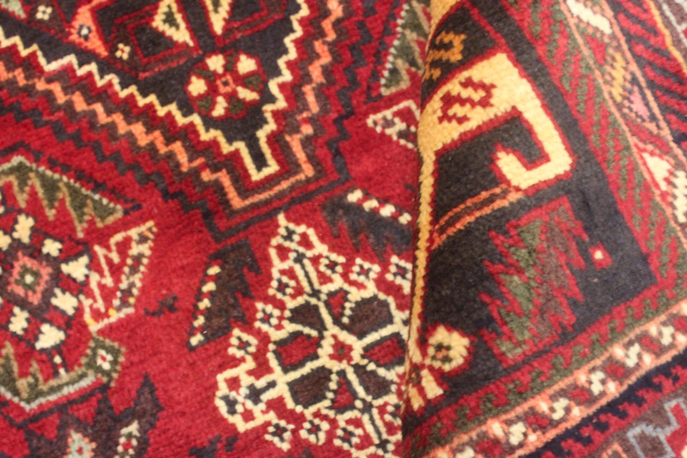 Este tapete pertence a tapetes de aldeia e nómadas do Irão, antiga Pérsia. Este tipo de tapete é atado à mão em cidades mais pequenas e aldeias da velha tradição. Mesmo os nómadas ainda atam tapetes persas ao ar livre. Os tapetes são atados sem padrão e completamente a partir da cabeça. Caracterizam-se por ornamentos clássicos, dispostos em padrões rectos e geométricos. Graças à sua origem cultural-tradicional, estes tapetes têm um carácter único que encarna a antiga Pérsia.