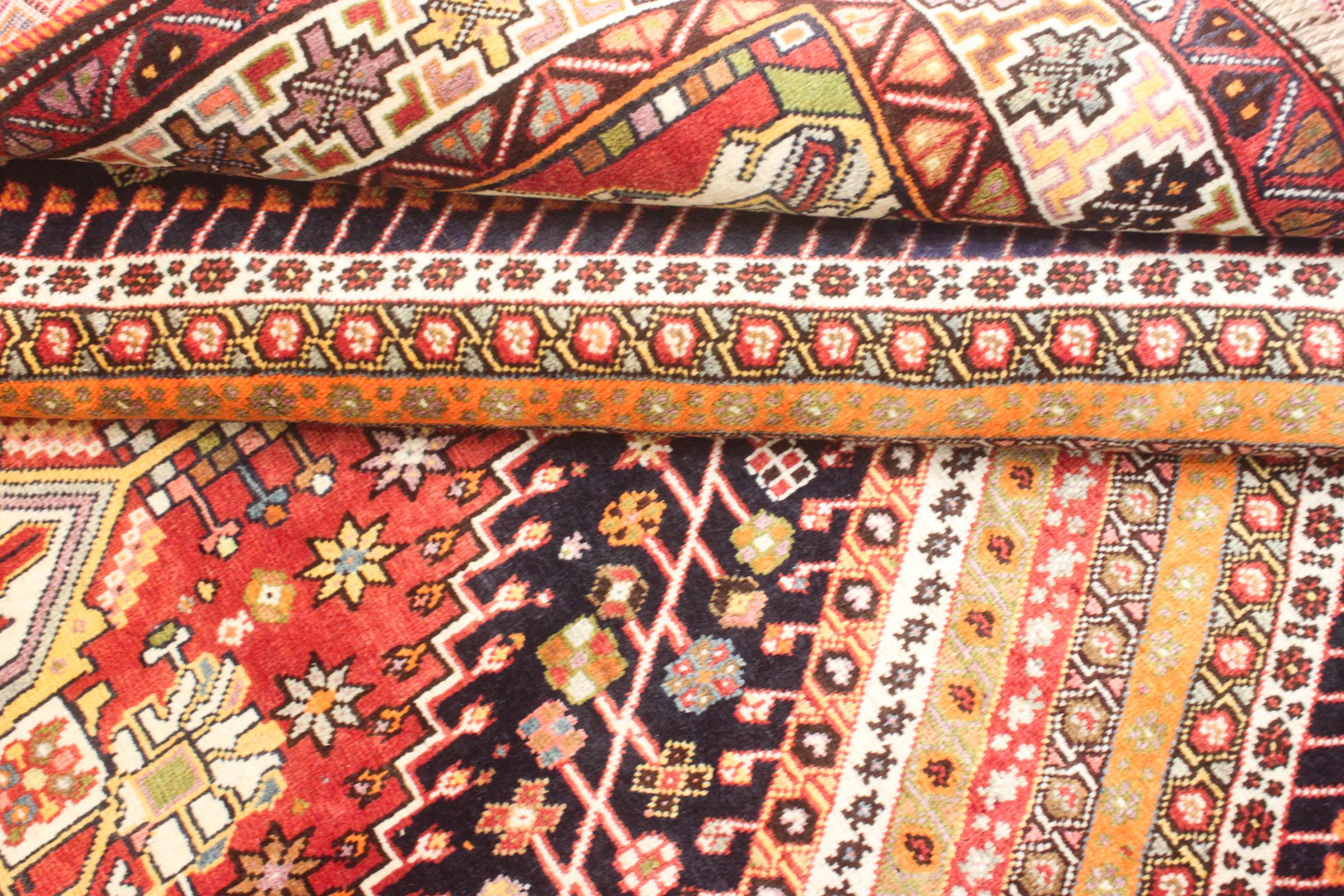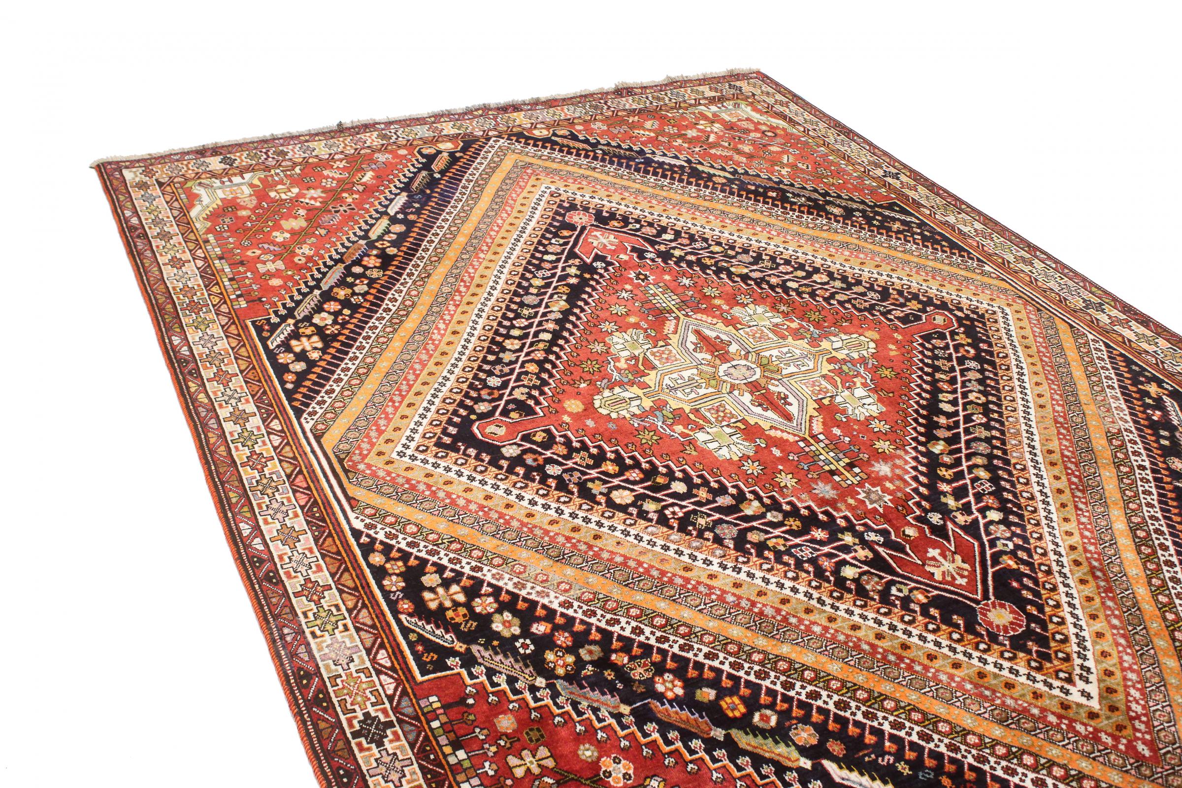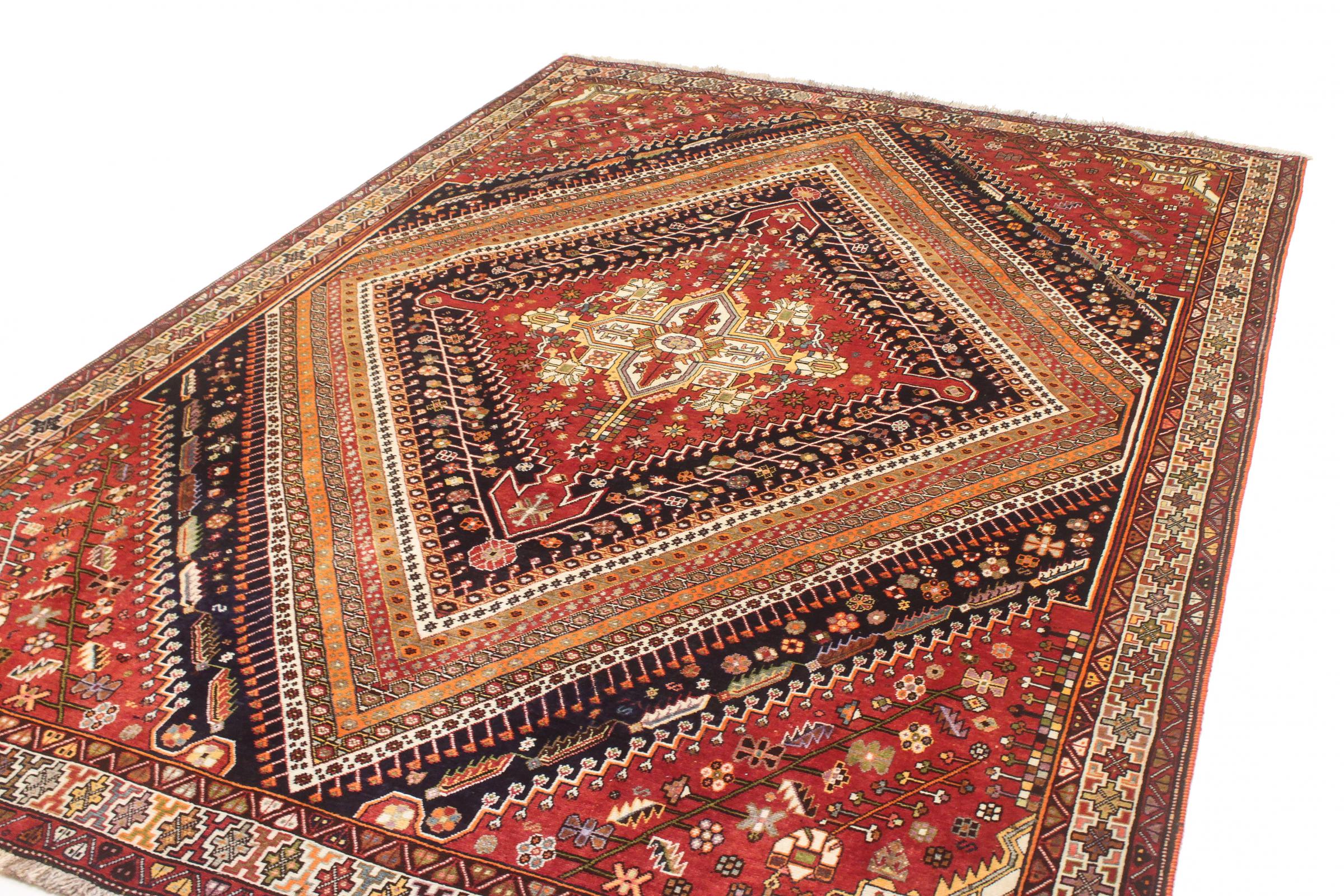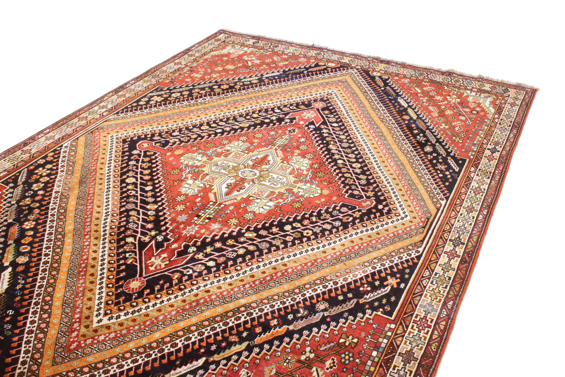 Este ghashghai é um verdadeiro destaque. As suas cores e padrões reflectem a vida dos nómadas ghashghai do Irão. Estas tribos nómadas vivem principalmente nos arredores da cidade de Shiraz. Deixe um pedaço da antiga cultura persa entrar nas suas próprias quatro paredes.