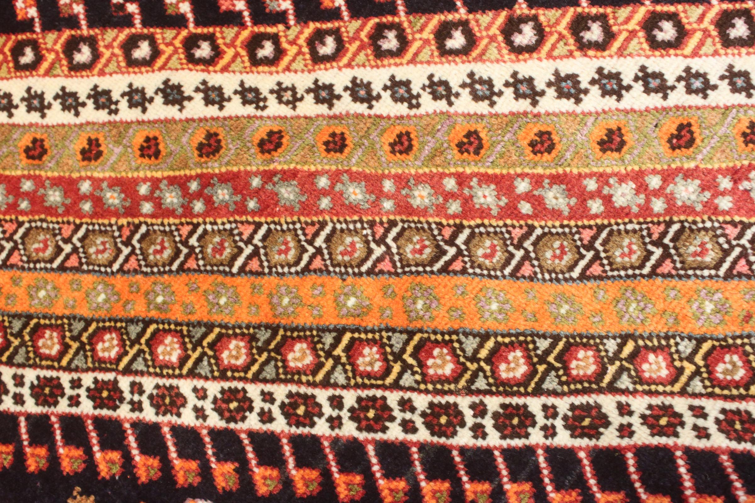 Este tapete pertence a tapetes de aldeia e nómadas do Irão, antiga Pérsia. Este tipo de tapete é atado à mão em cidades mais pequenas e aldeias da velha tradição. Mesmo os nómadas ainda atam tapetes persas ao ar livre. Os tapetes são atados sem padrão e completamente a partir da cabeça. Caracterizam-se por ornamentos clássicos, dispostos em padrões rectos e geométricos. Graças à sua origem cultural-tradicional, estes tapetes têm um carácter único que encarna a antiga Pérsia.