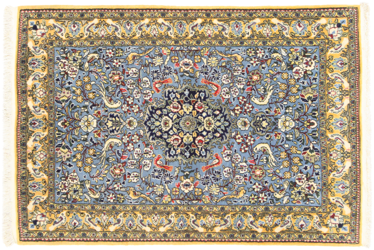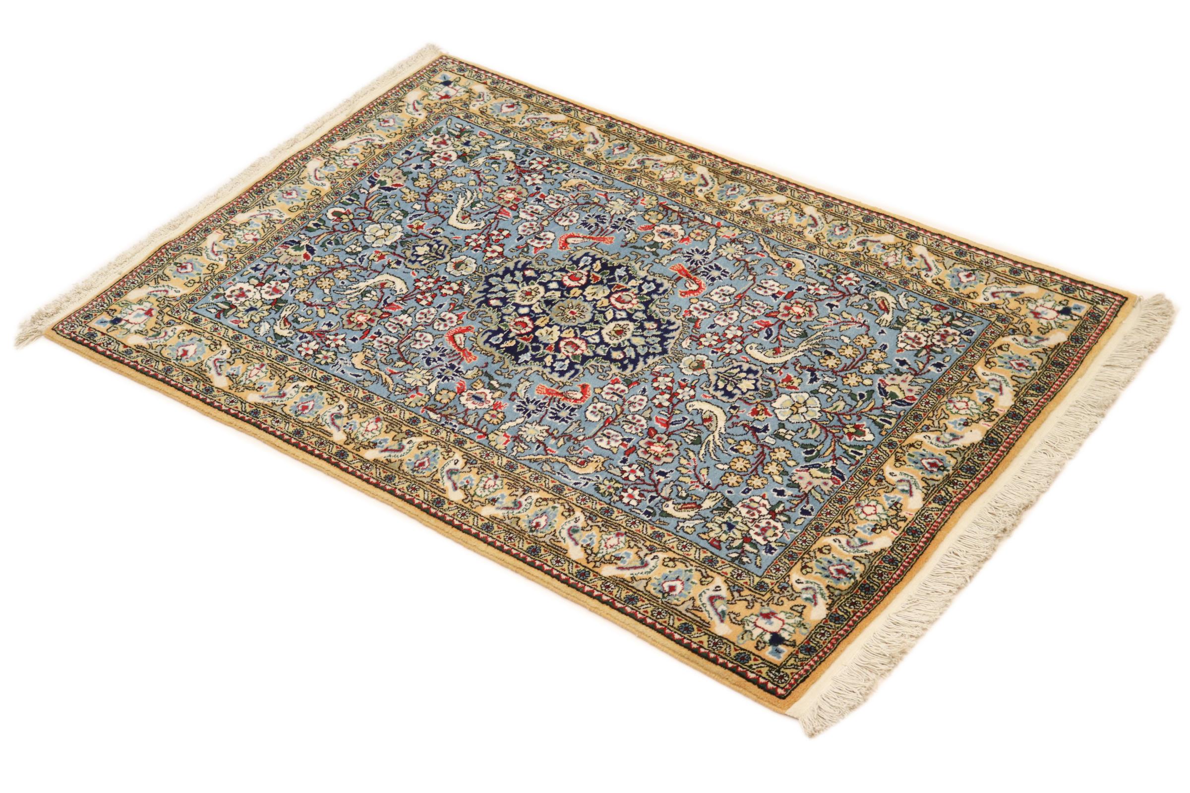 Nº do Tapete: 16802400266109 Tamanho: 153x105 cm Espessura: aproximadamente 10 mm Nós: 320 000 - 360 000 / m² Processamento: Atado à mão Veludo: Lã tecida à mão Urdidura: Algodão Origem: Pérsia / Iran Idade: Novo Peso: aproximadamente 6 kg Em armazém: Único - Apenas 1 em stock