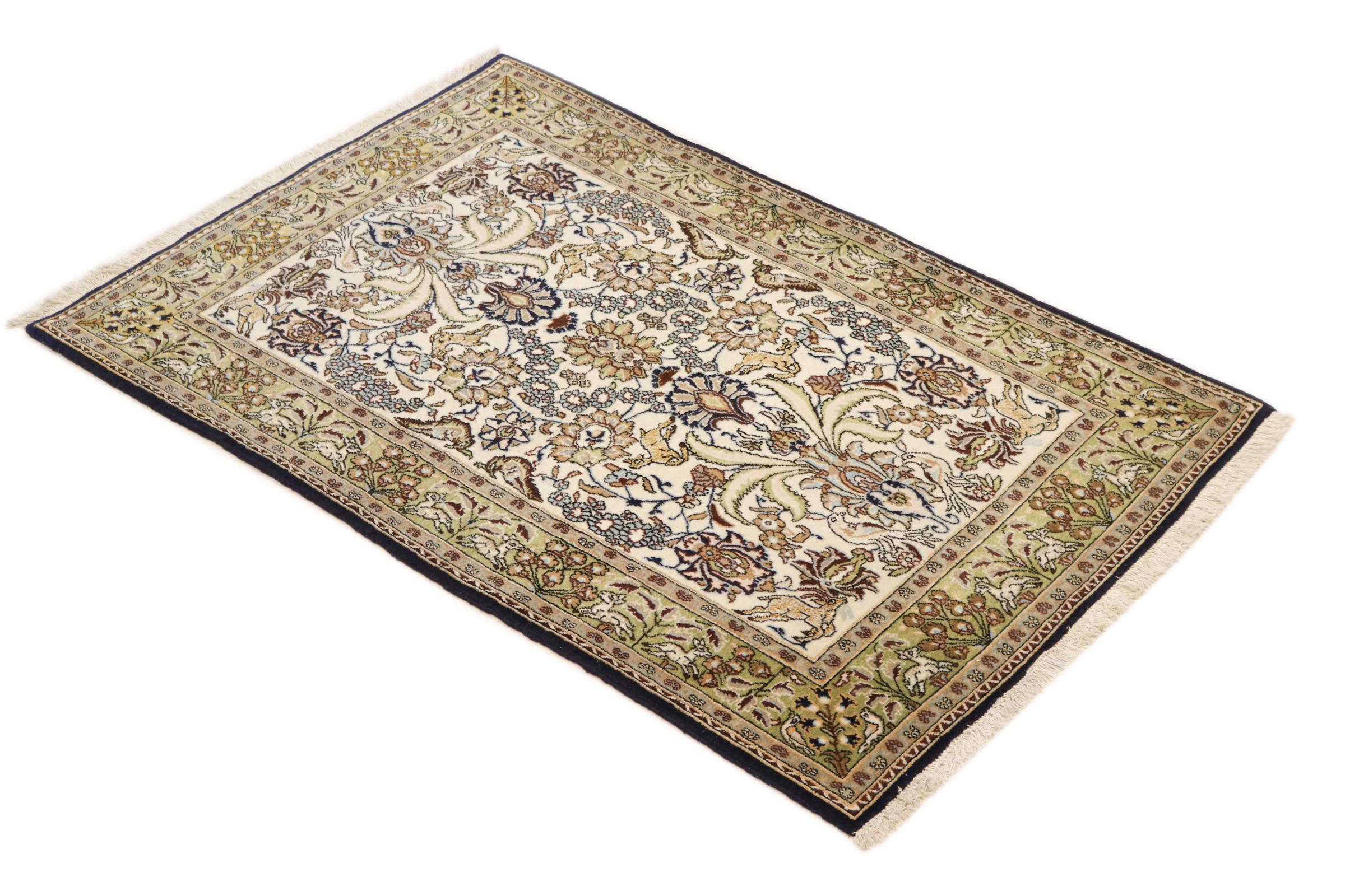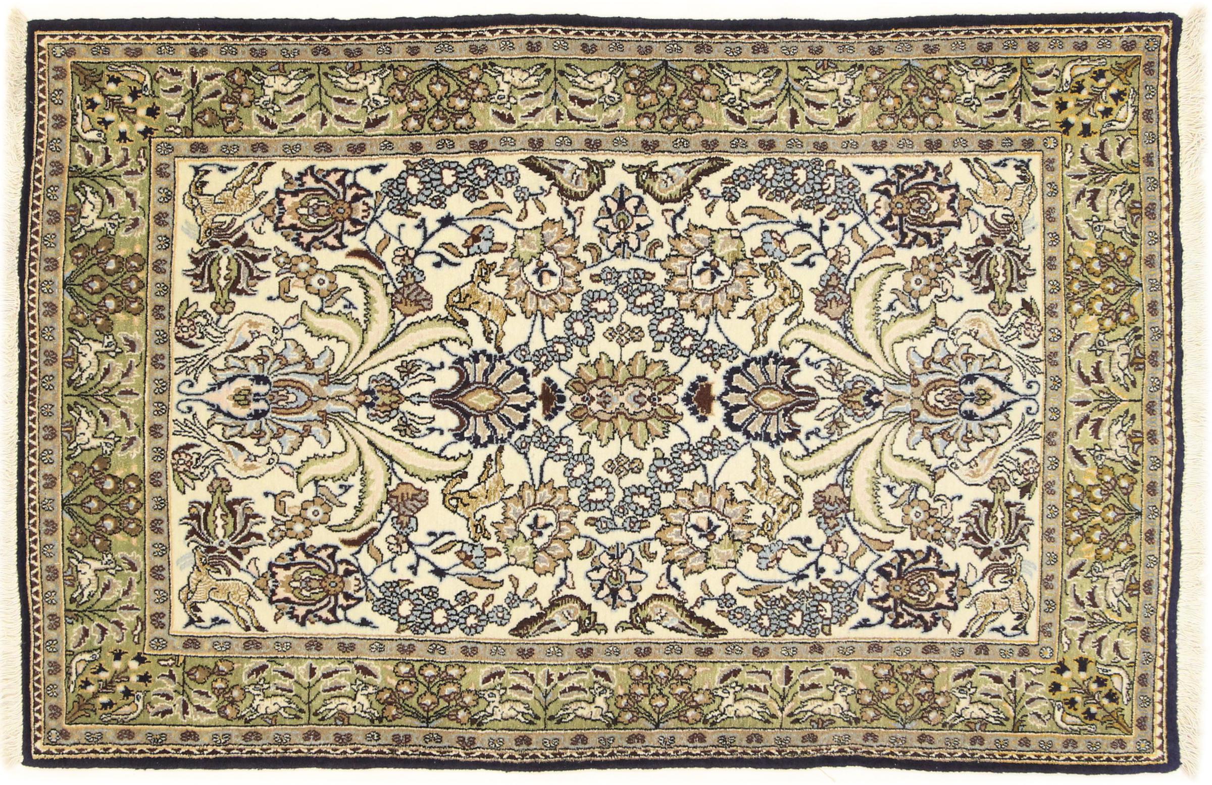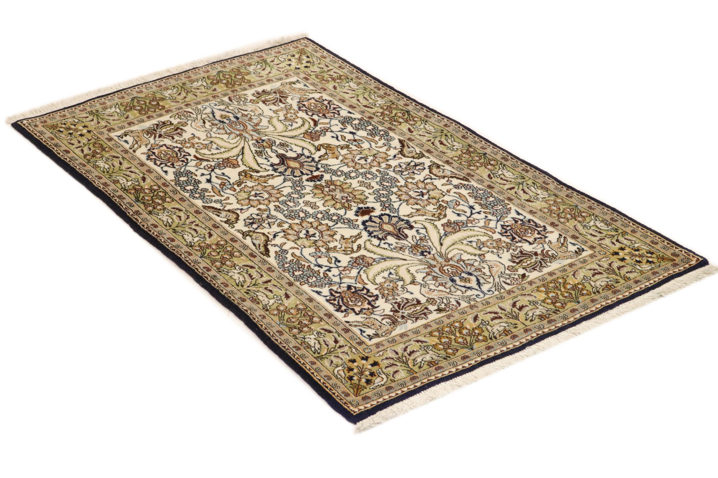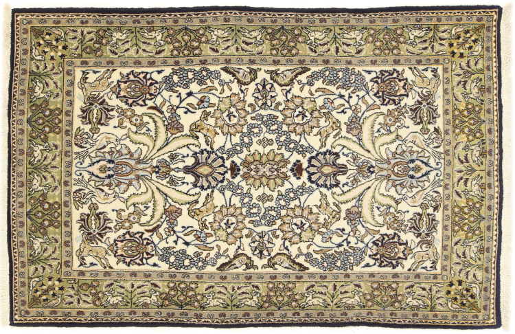Nº do Tapete: 167548008812721 Tamanho: 158x96 cm Espessura: aproximadamente 10 mm Nós: 320 000 - 360 000 / m² Processamento: Atado à mão Veludo: Lã tecida à mão Urdidura: Algodão Origem: Pérsia / Iran Idade: Novo Peso: aproximadamente 5 kg Em armazém: Único - Apenas 1 em stock