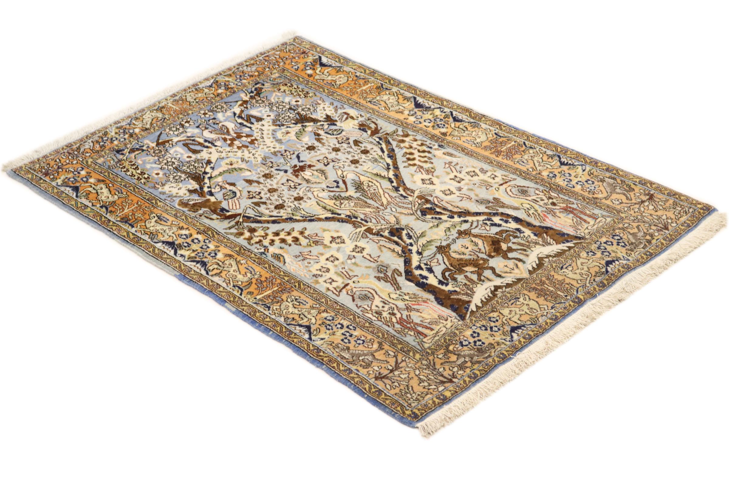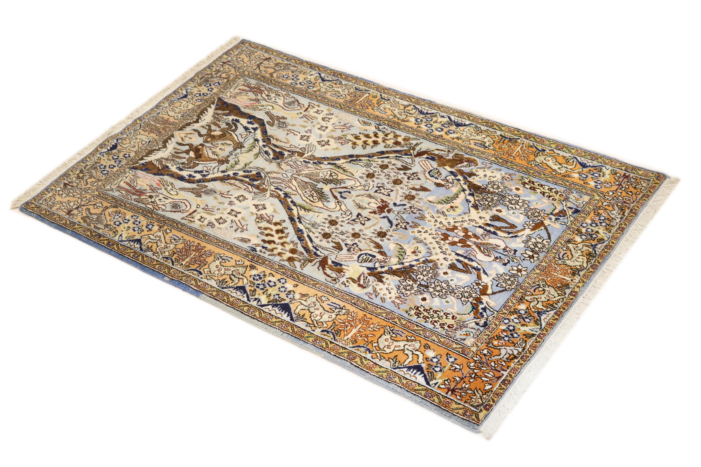 Nº do Tapete: 167940005275048 Tamanho: 161x109 cm Espessura: aproximadamente 10 mm Nós: 320 000 - 360 000 / m² Processamento: Atado à mão Veludo: Lã tecida à mão Urdidura: Algodão Origem: Pérsia / Iran Idade: Novo Peso: aproximadamente 6 kg Em armazém: Único - Apenas 1 em stock